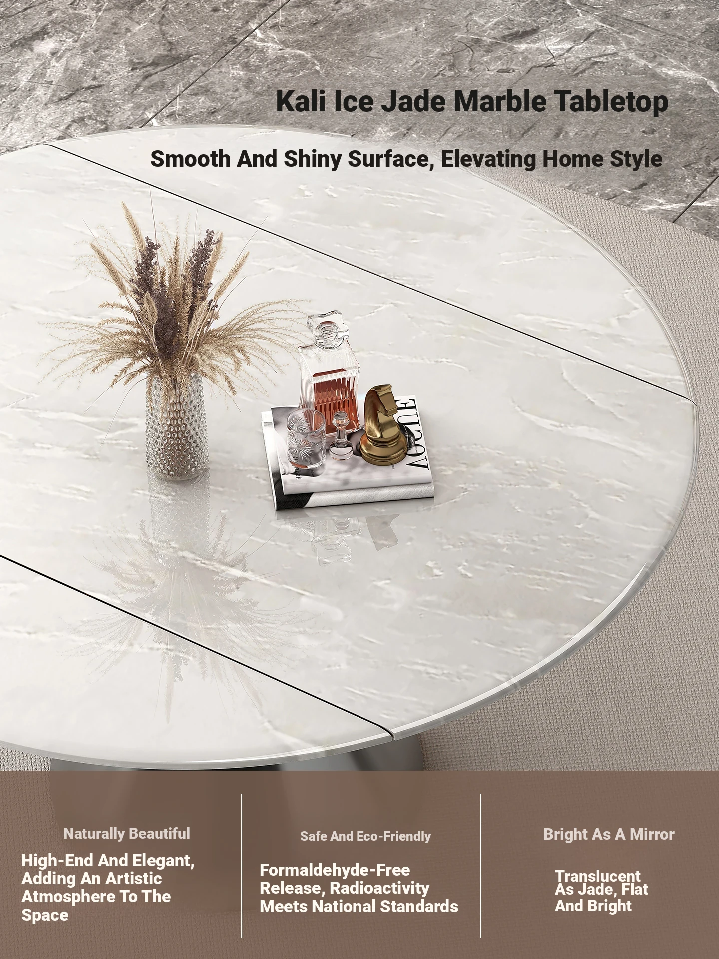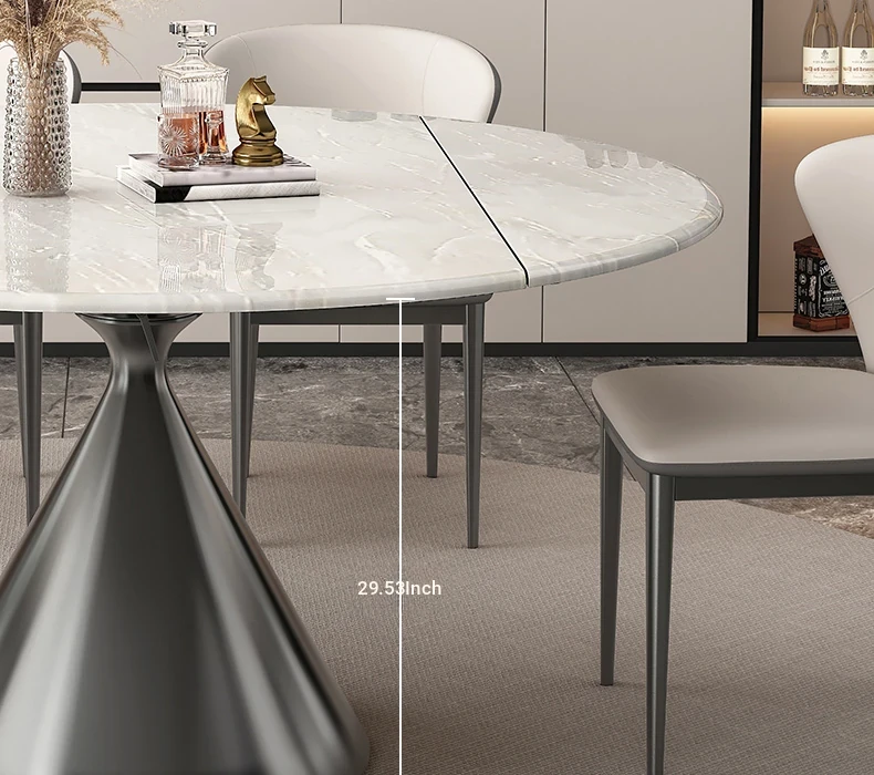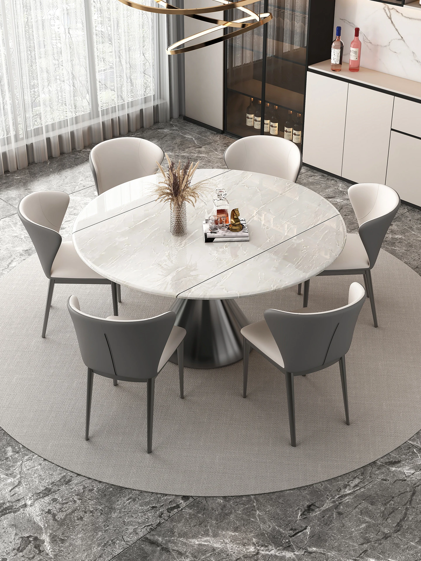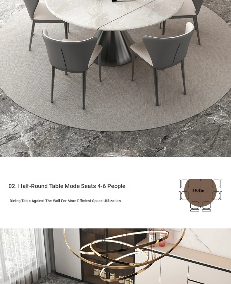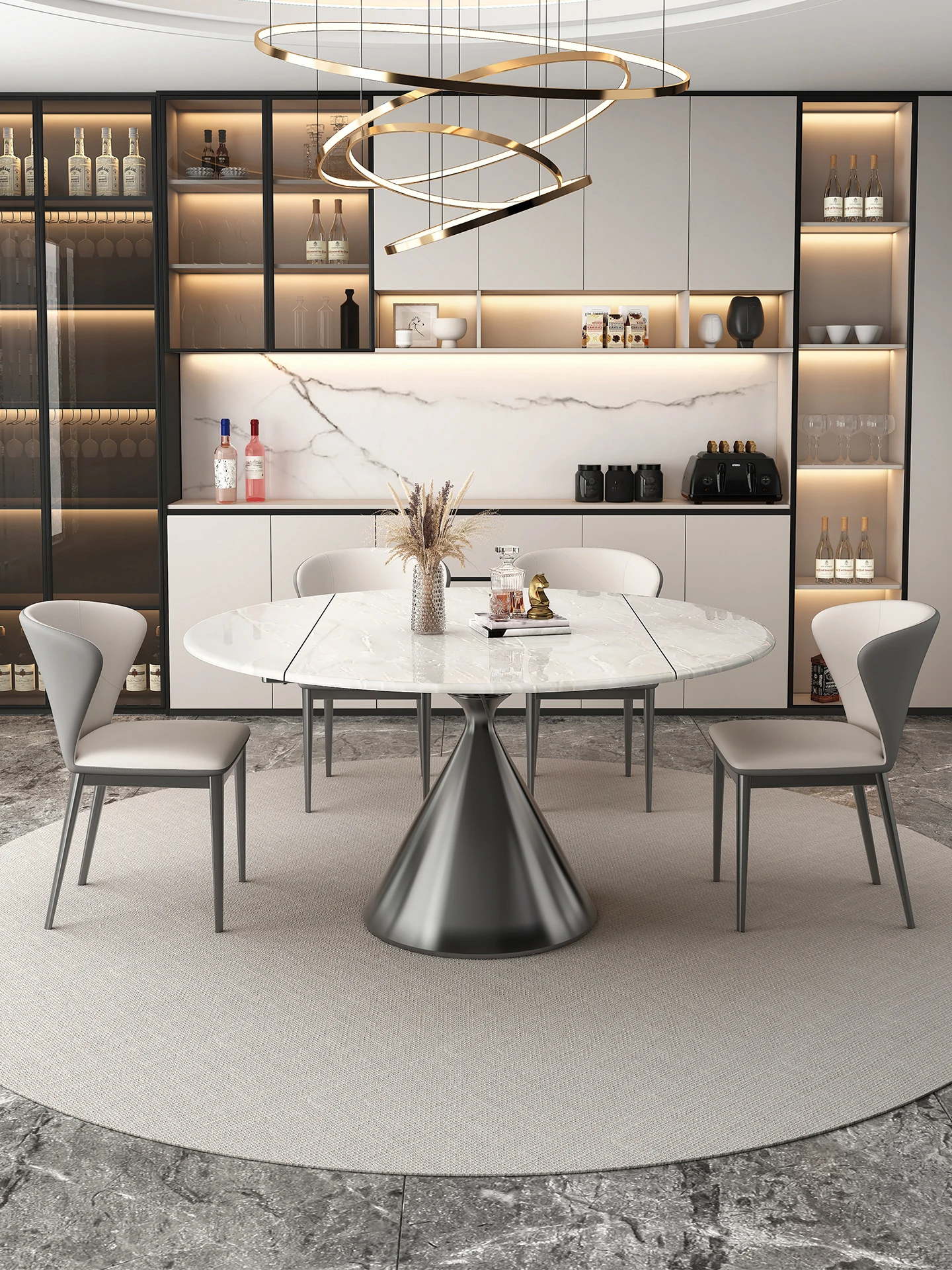 Natural Marble Expandable Dining Table - Italian Minimalist Style for Small Spaces, Featuring Kaleidoscope Rotating Dining Chairs Set