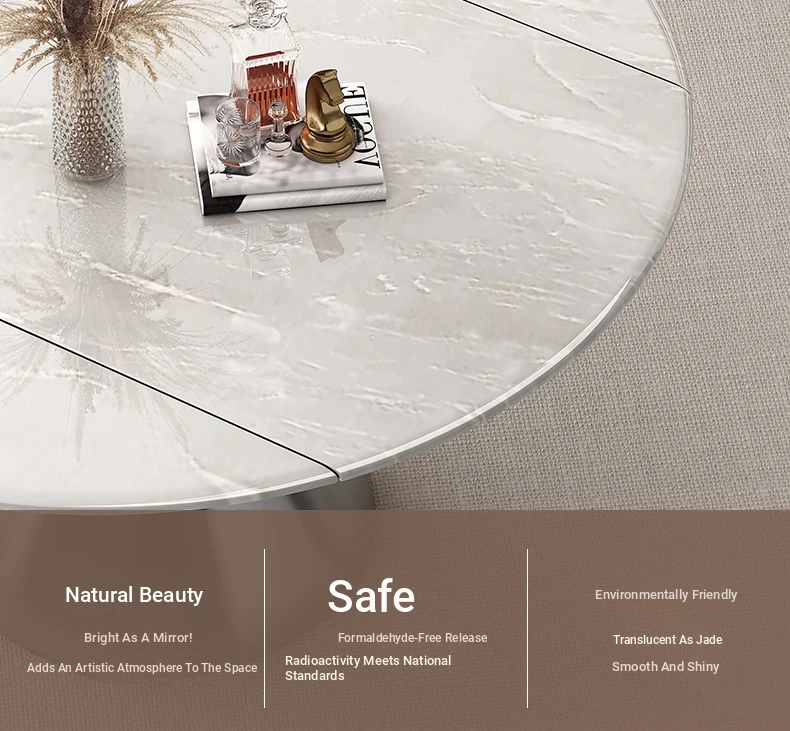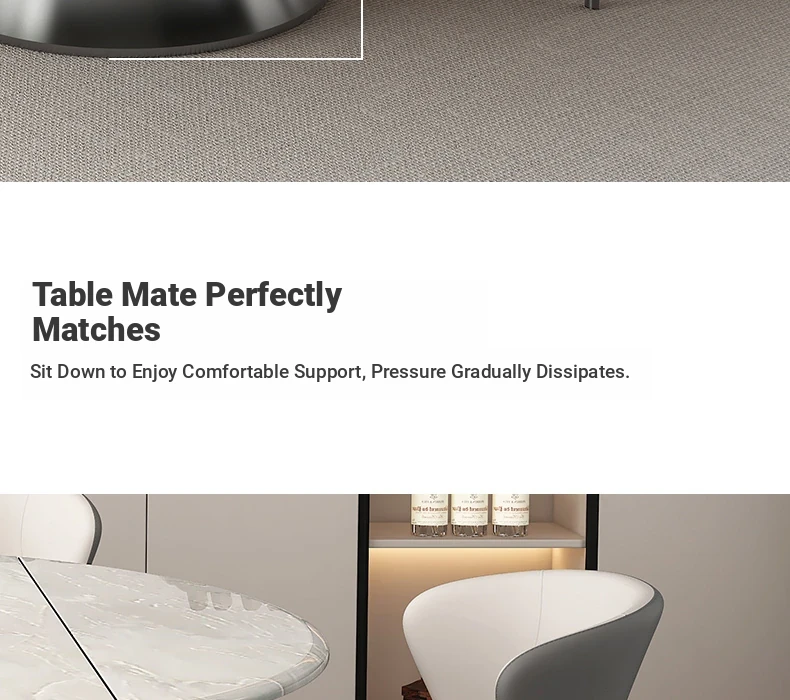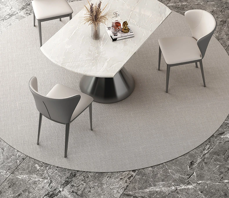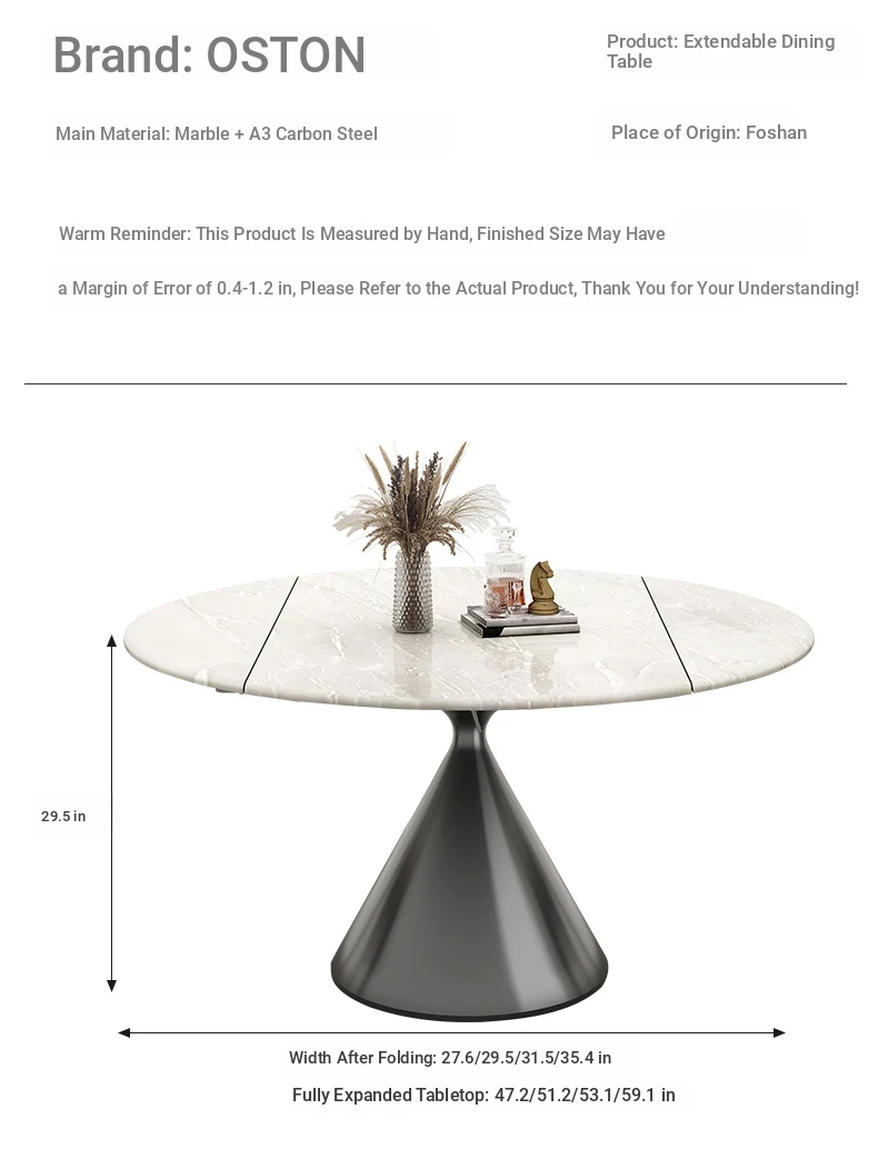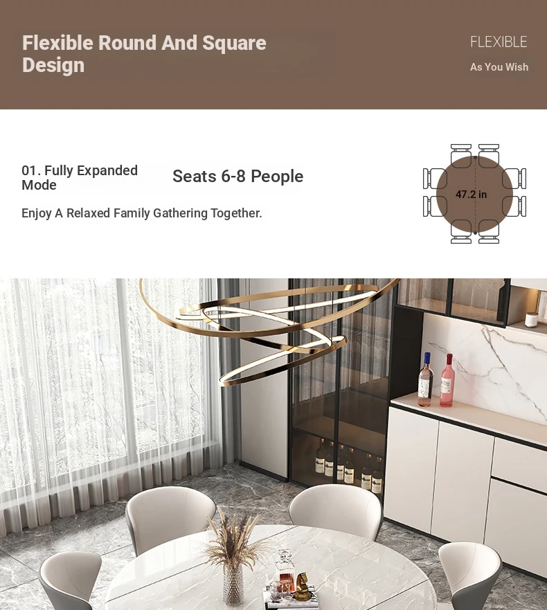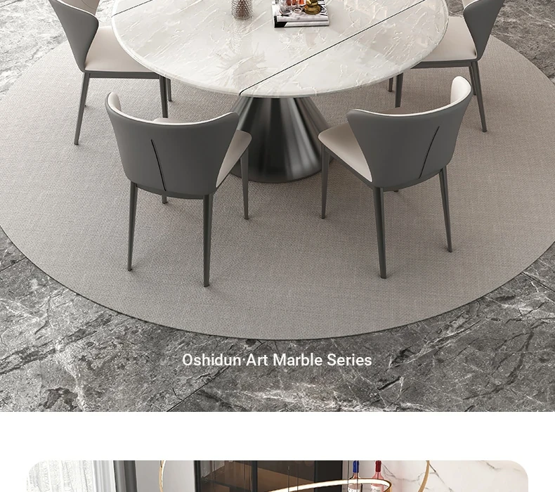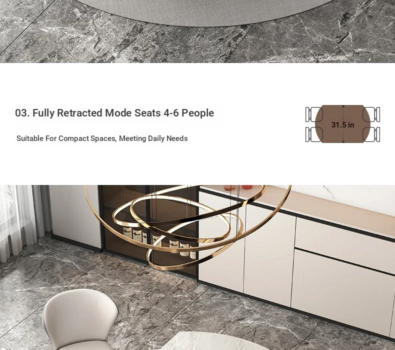 Natural Marble Expandable Dining Table - Italian Minimalist Style for Small Spaces, Featuring Kaleidoscope Rotating Dining Chairs Set
