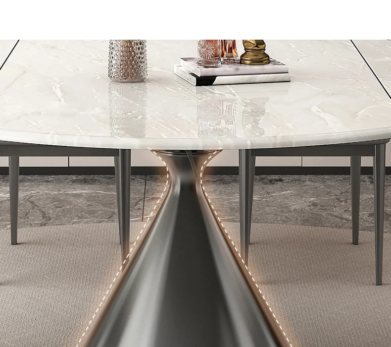 Retractable table (natural marble) + cat scratch leather dining chair * 6