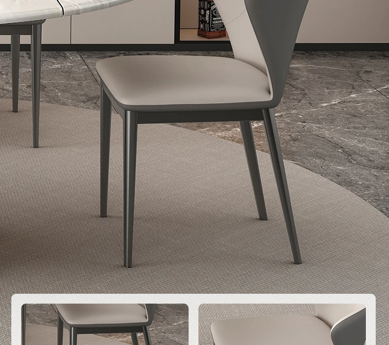 Rotatable dining table (natural marble) + cat scratch leather dining chair * 6