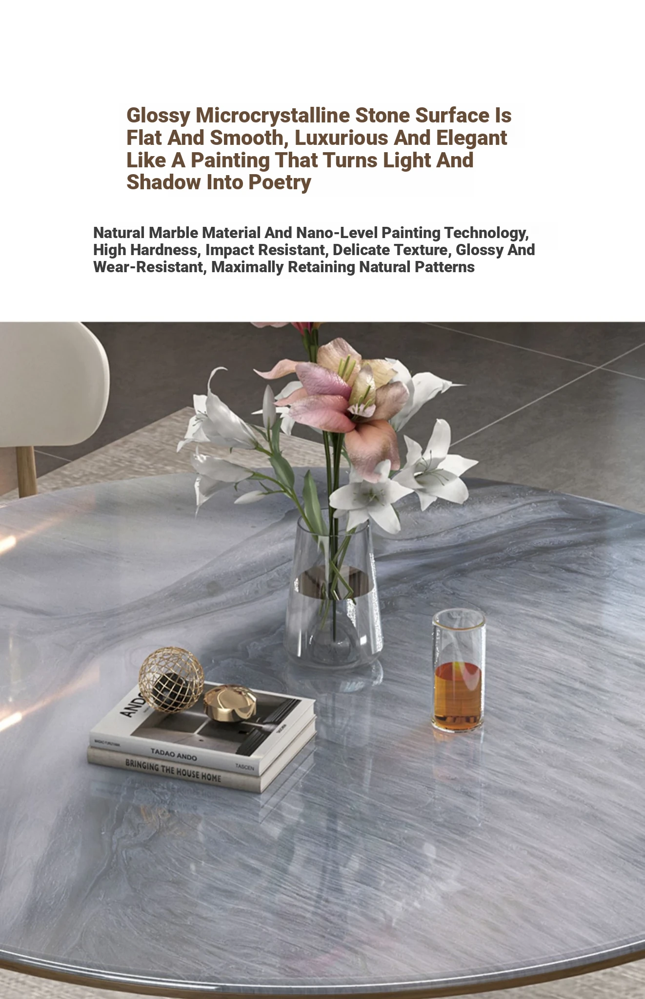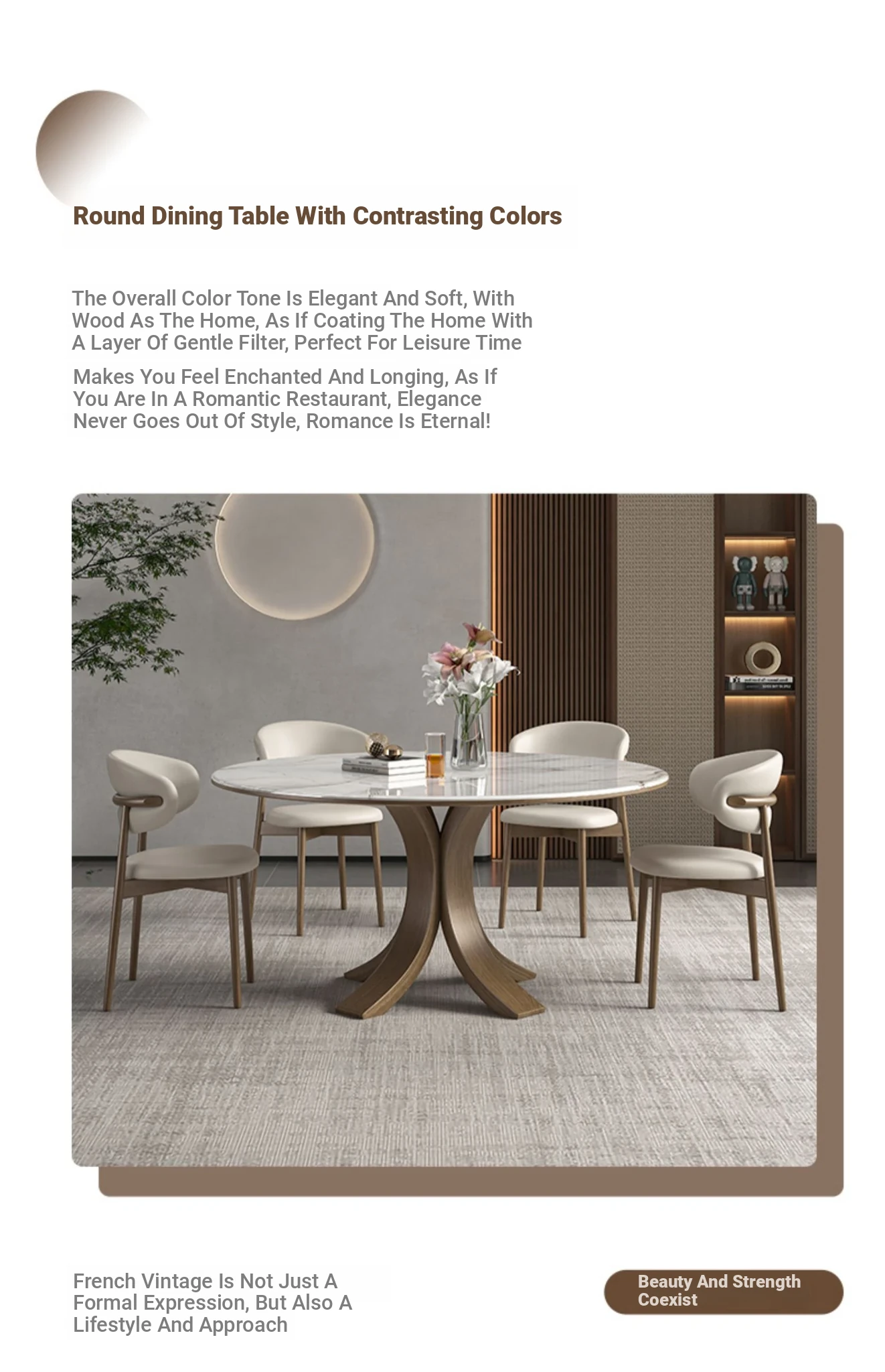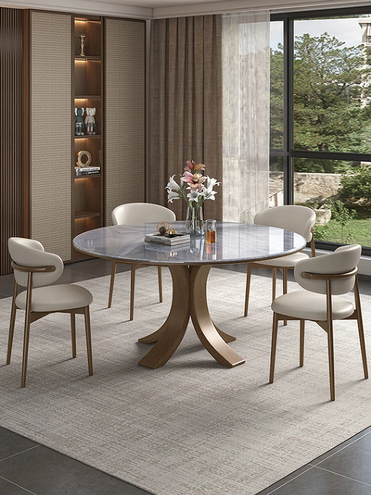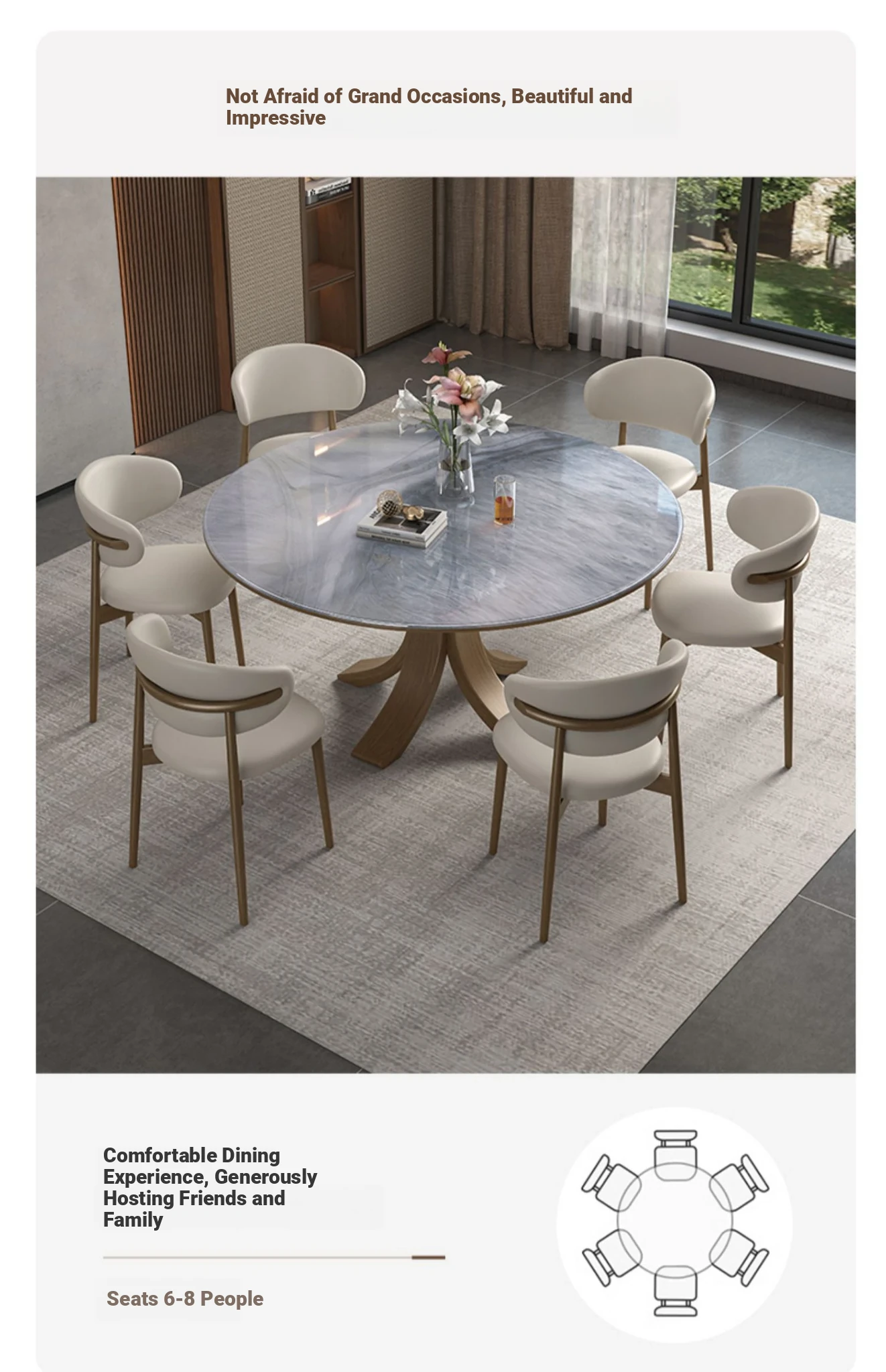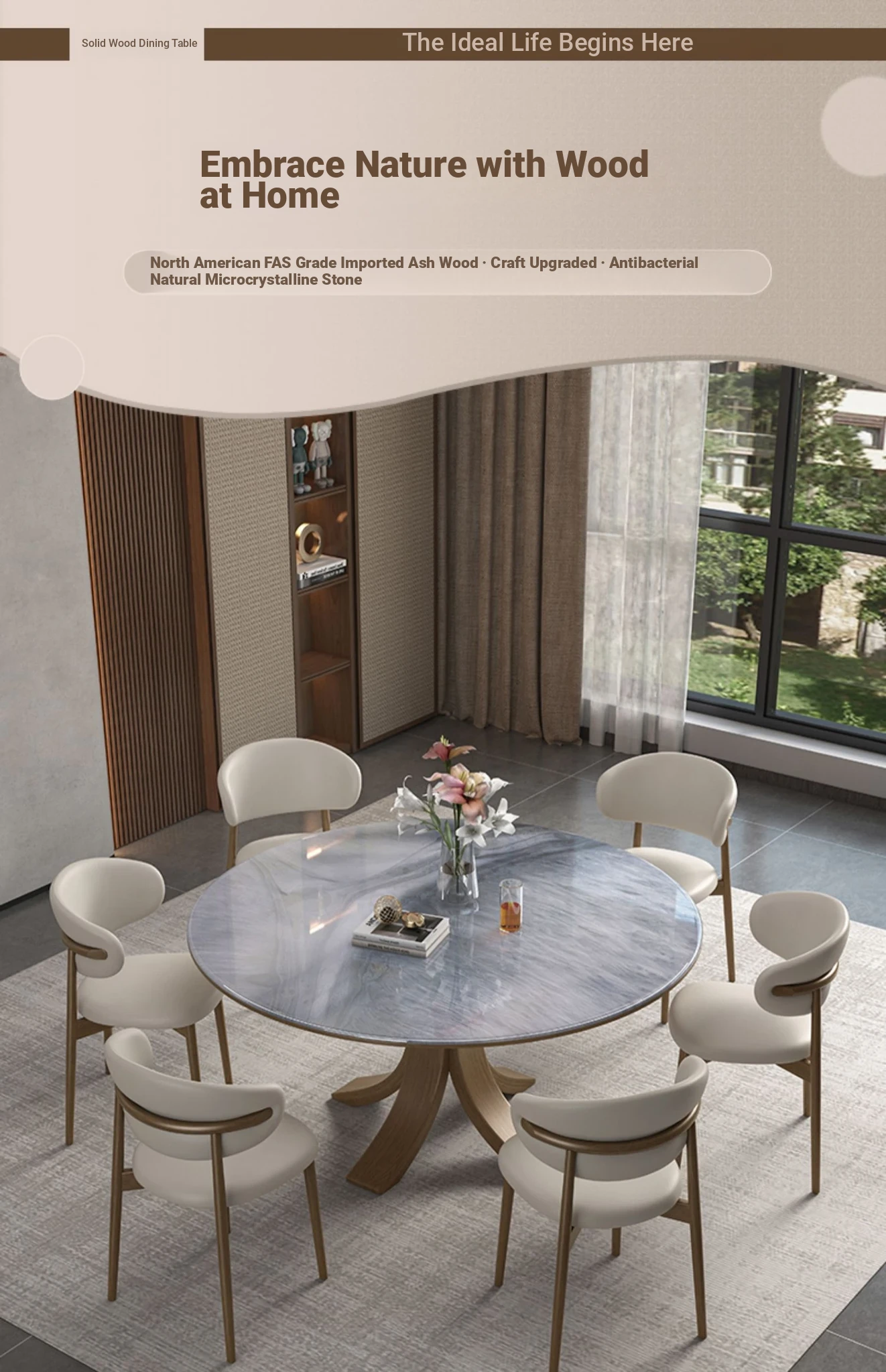 Natural Microcrystalline Stone Solid Wood Dining Table - Elegant Luxury 2024 New Round Marble Dining Table and Chair Set