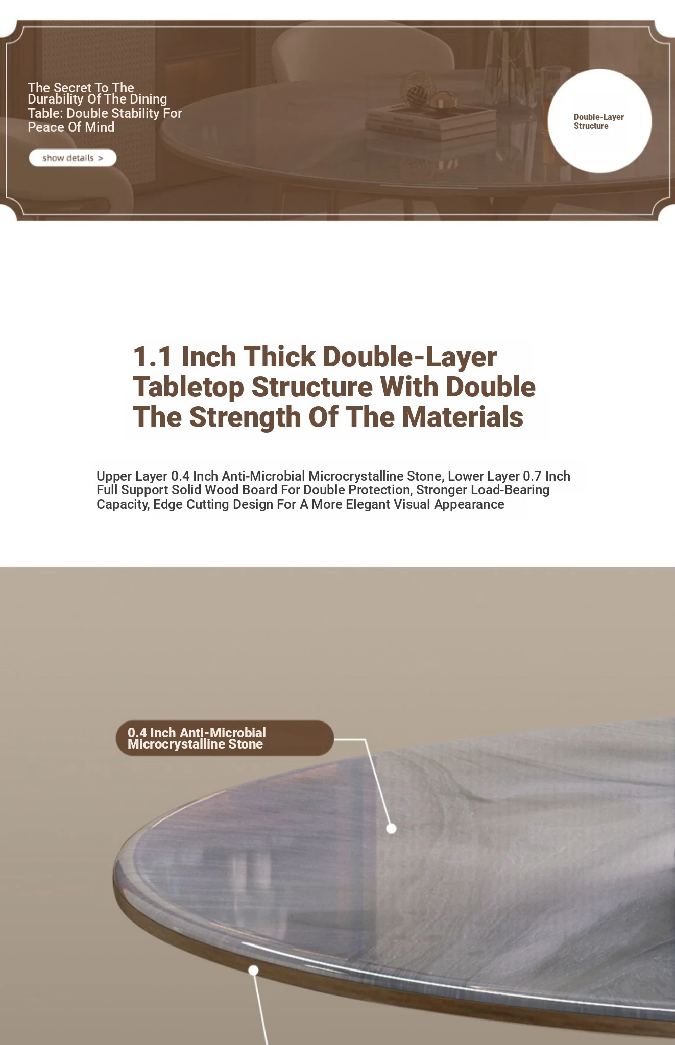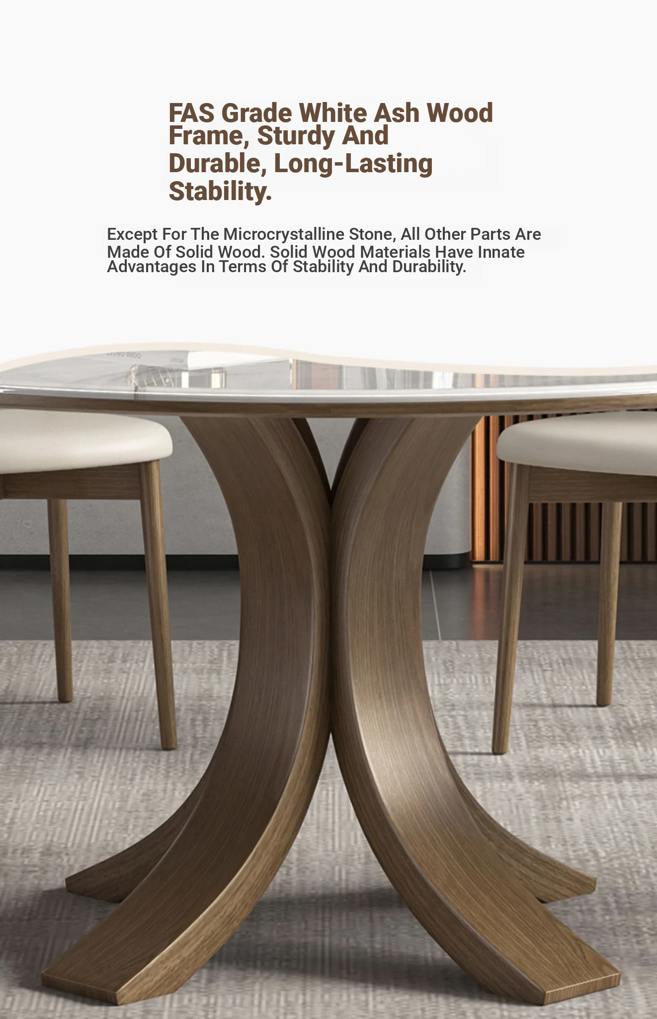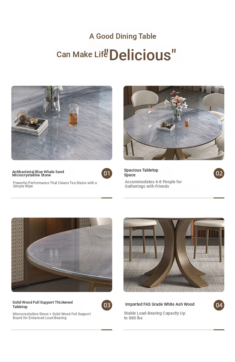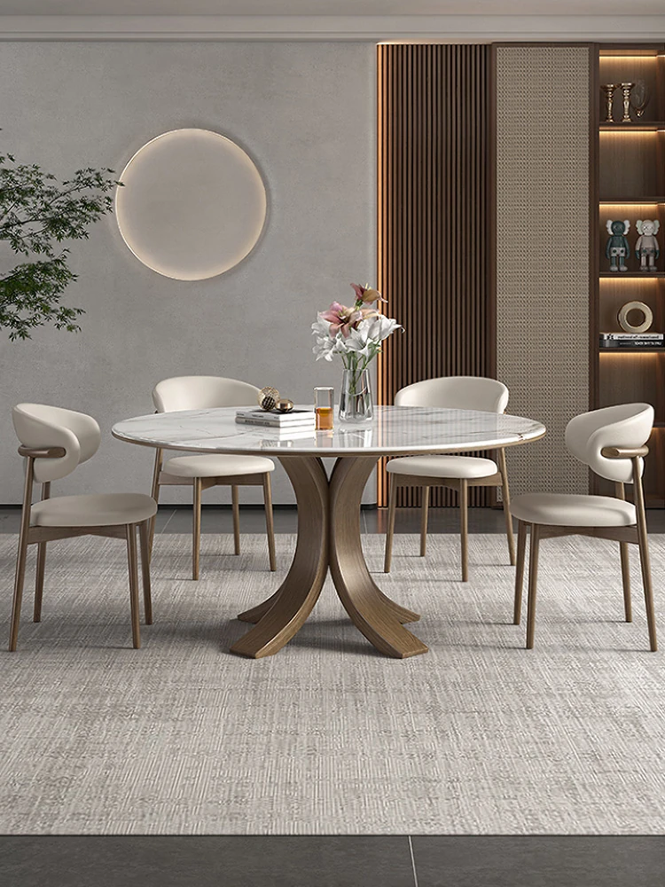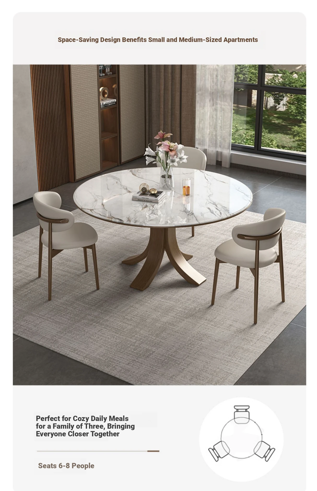 Natural Microcrystalline Stone Solid Wood Dining Table - Elegant Luxury 2024 New Round Marble Dining Table and Chair Set