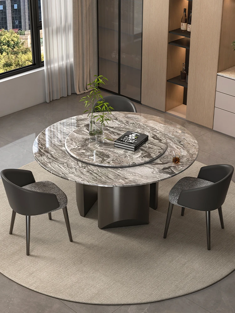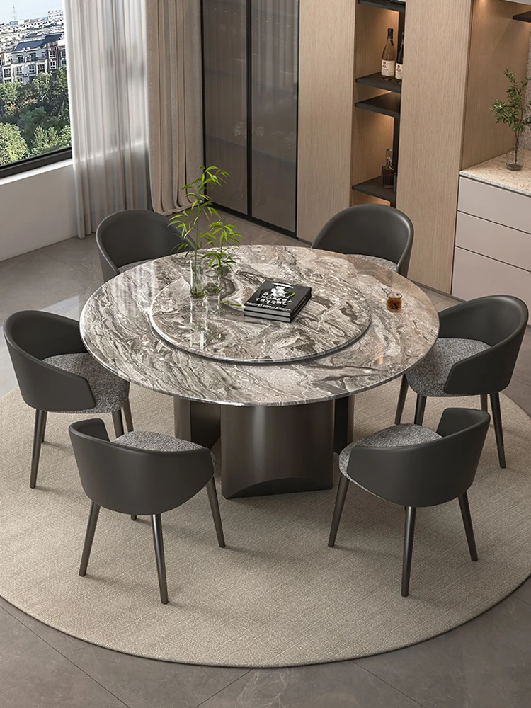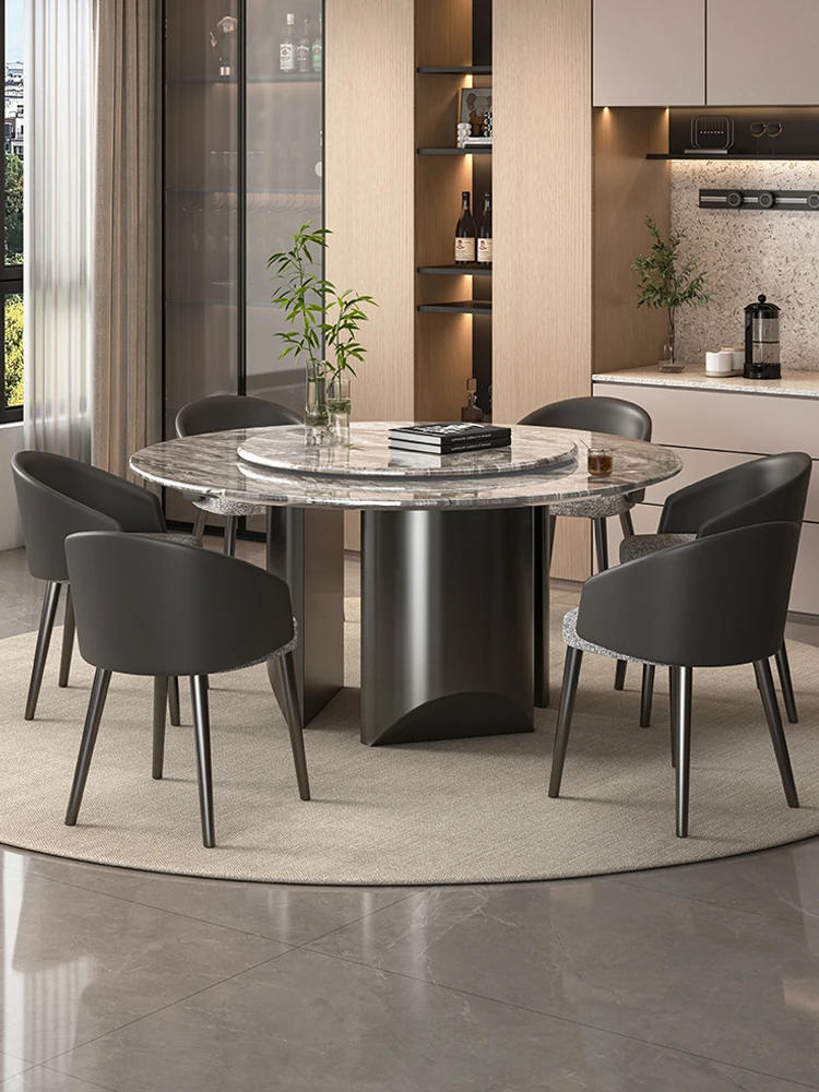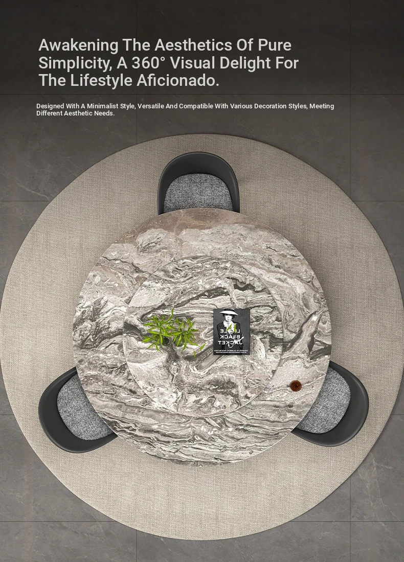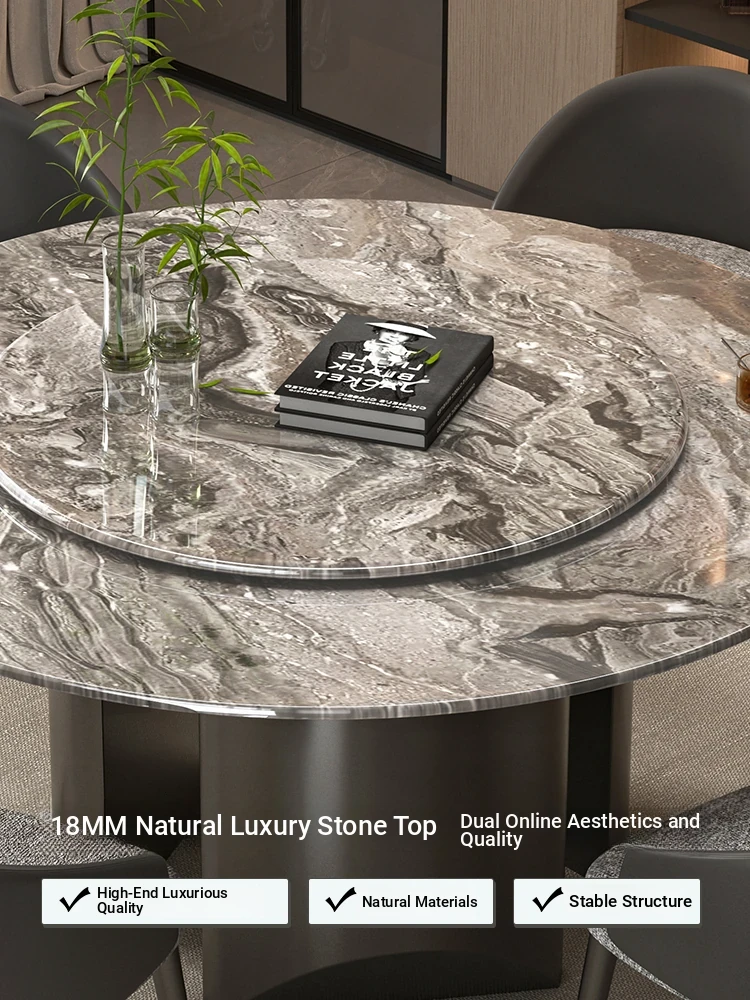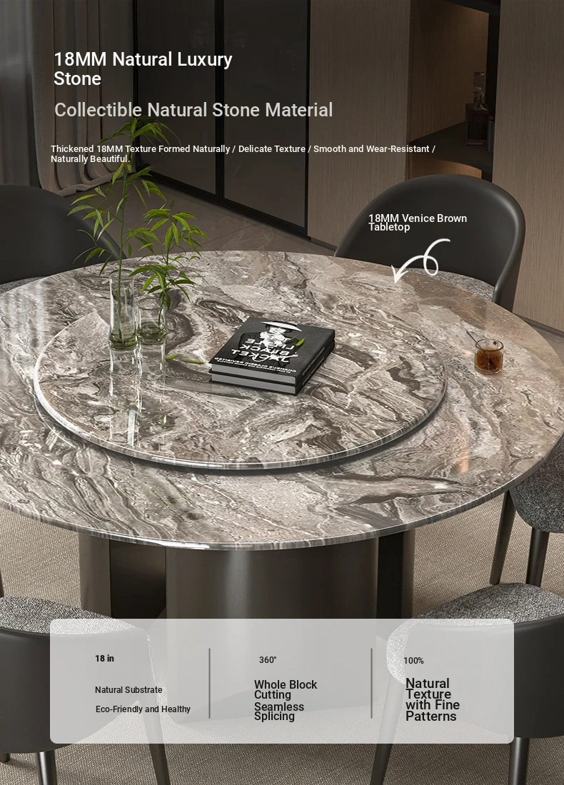 Natural Venetian Brown Luxury Stone Dining Table Set - Elegant Italian Design for Upscale Villas, Featuring Premium Marble Table and Chair Combination for Home Use.