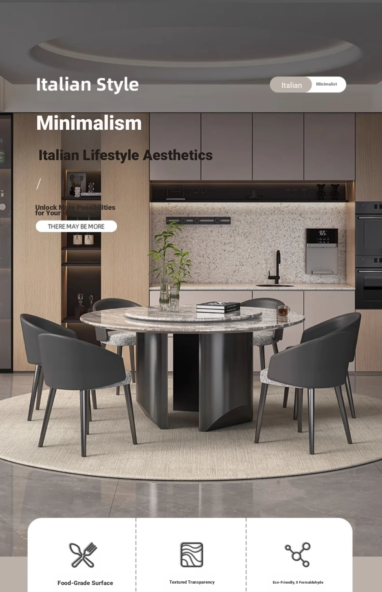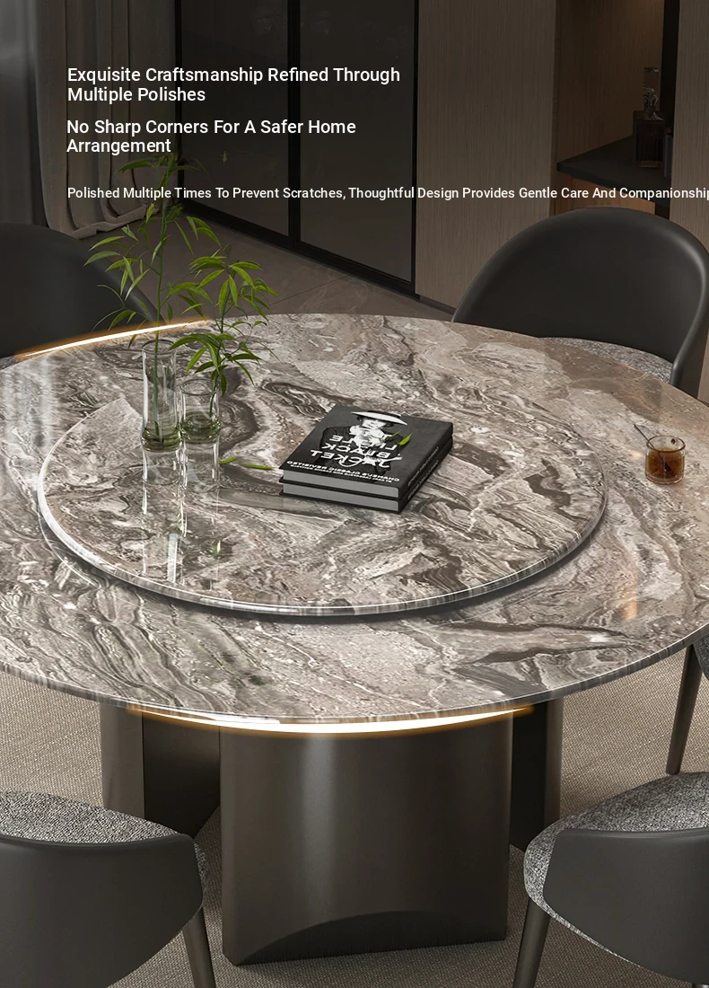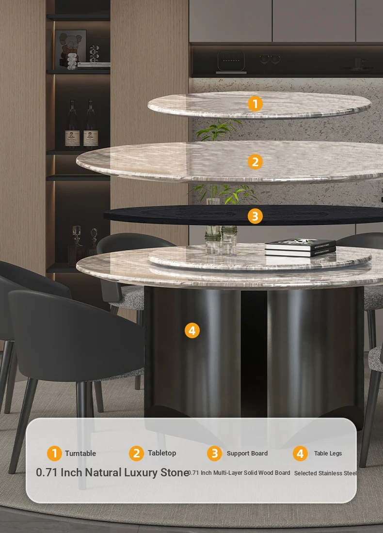 59.06in natural Venetian Brown dining table +90 turntable