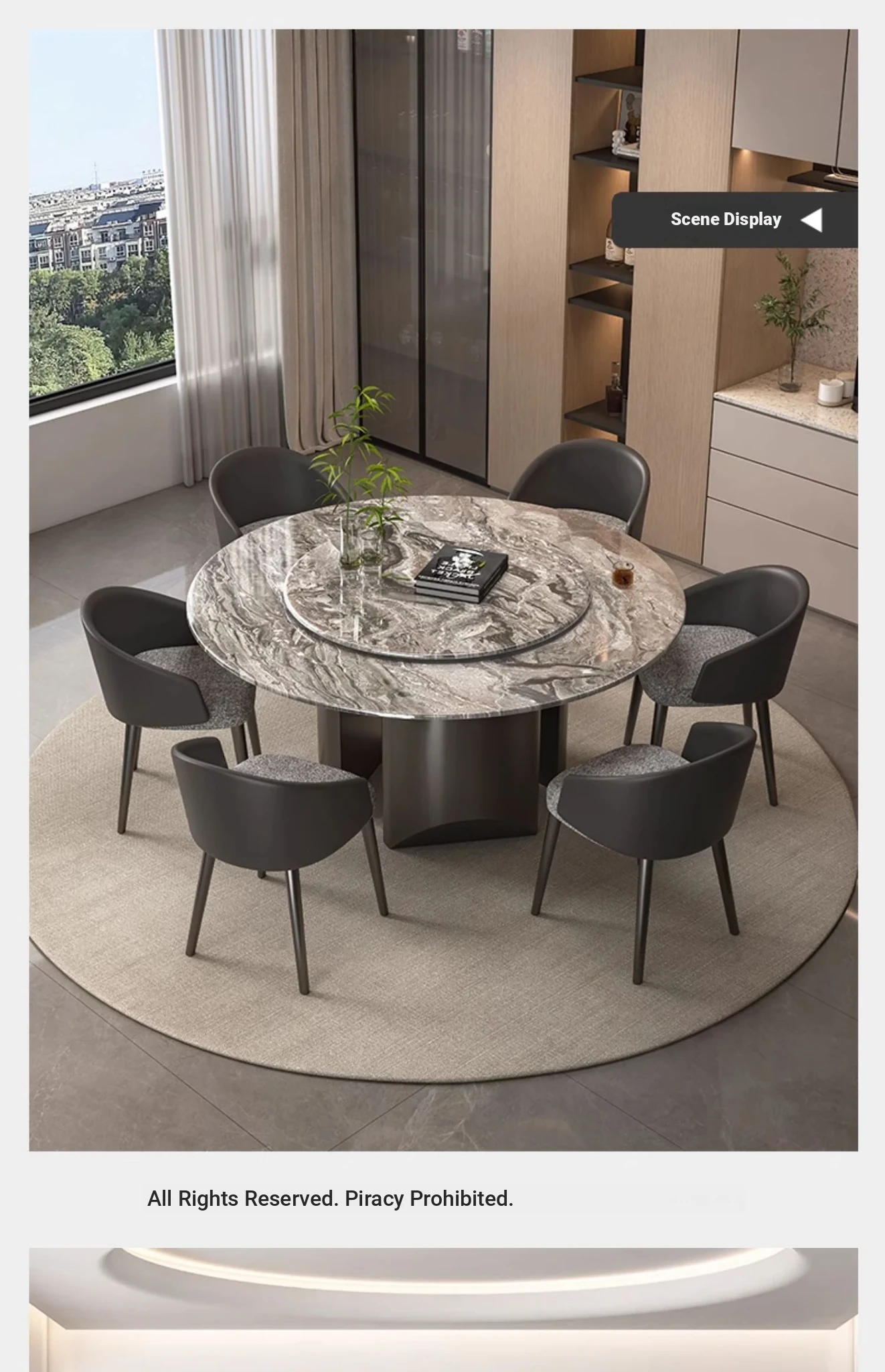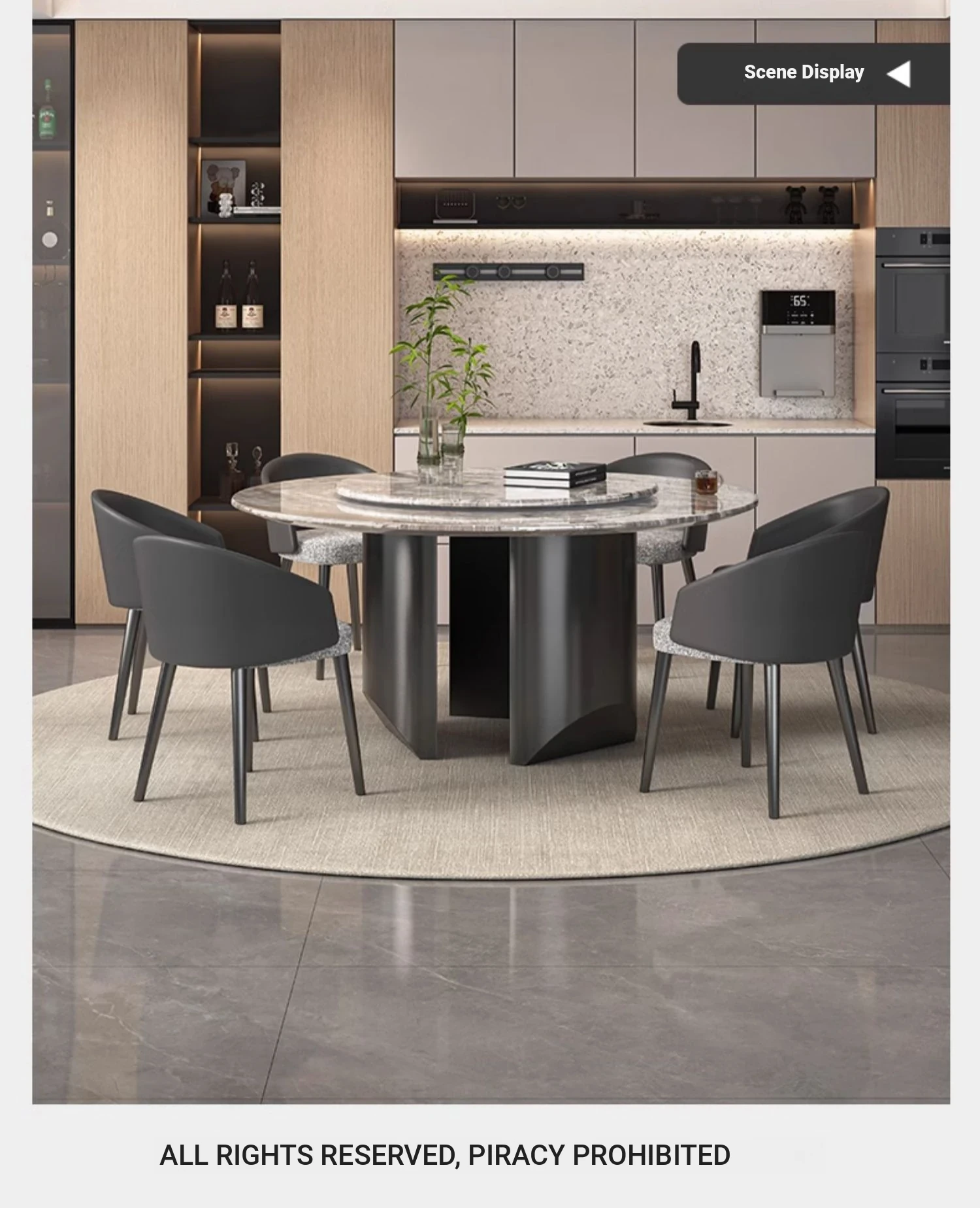 59.06in natural Venice Brown dining table [with turntable] + dining chair * 6