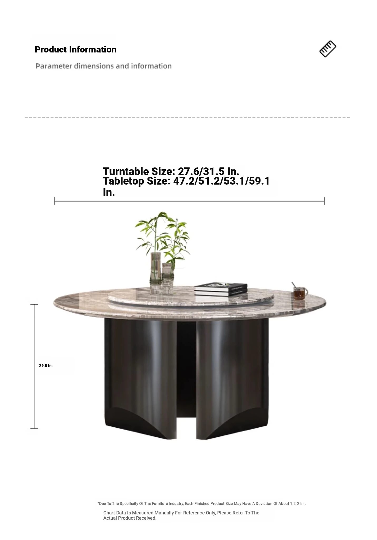 51.18in Natural Venice Brown Dining Table +80 Turntable