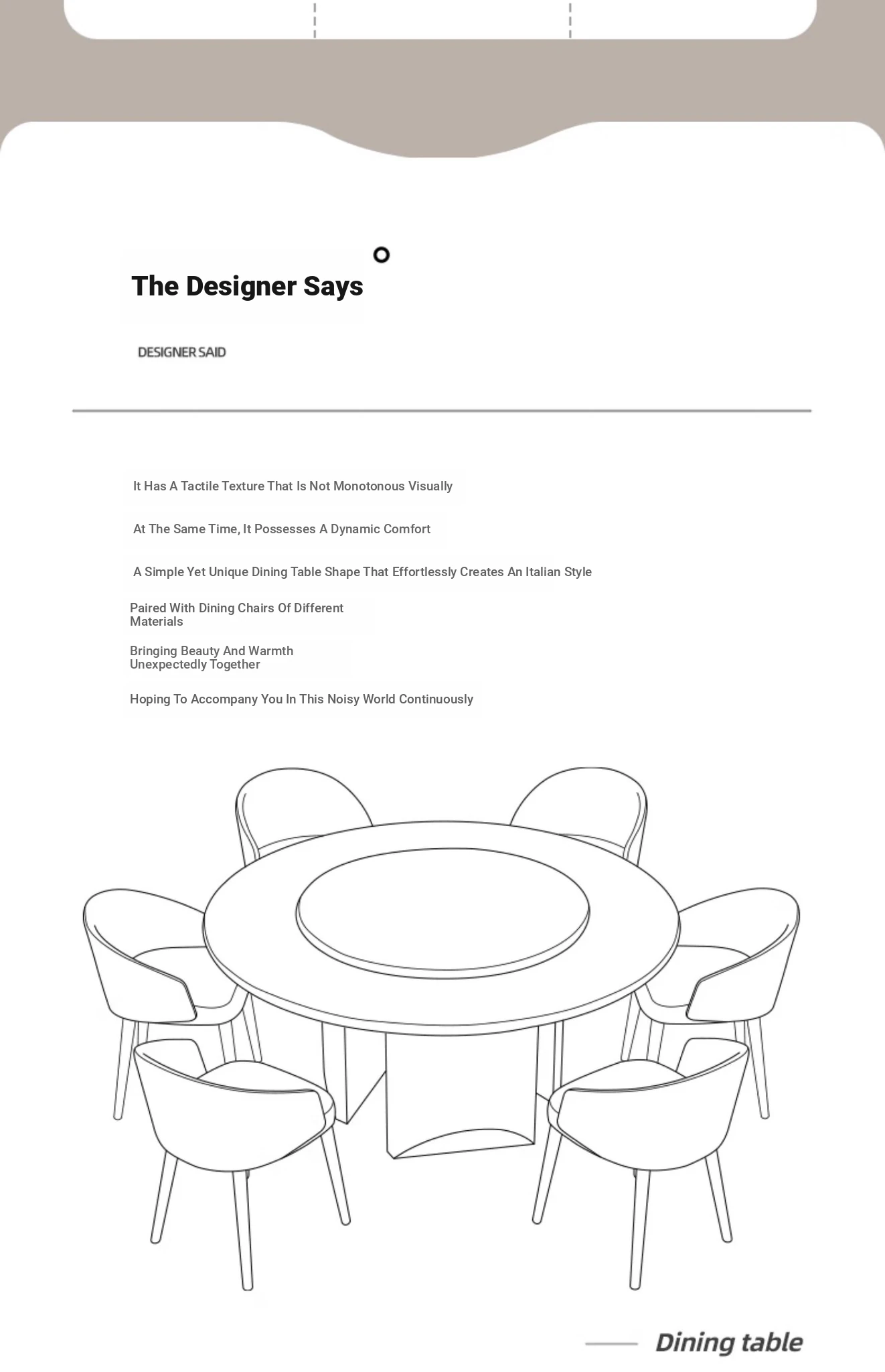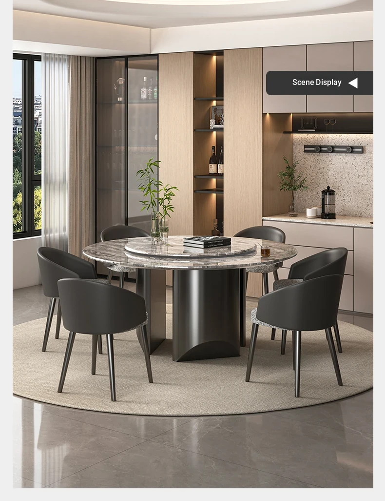 51.18in natural Venice Brown dining table [with turntable] + dining chair * 6