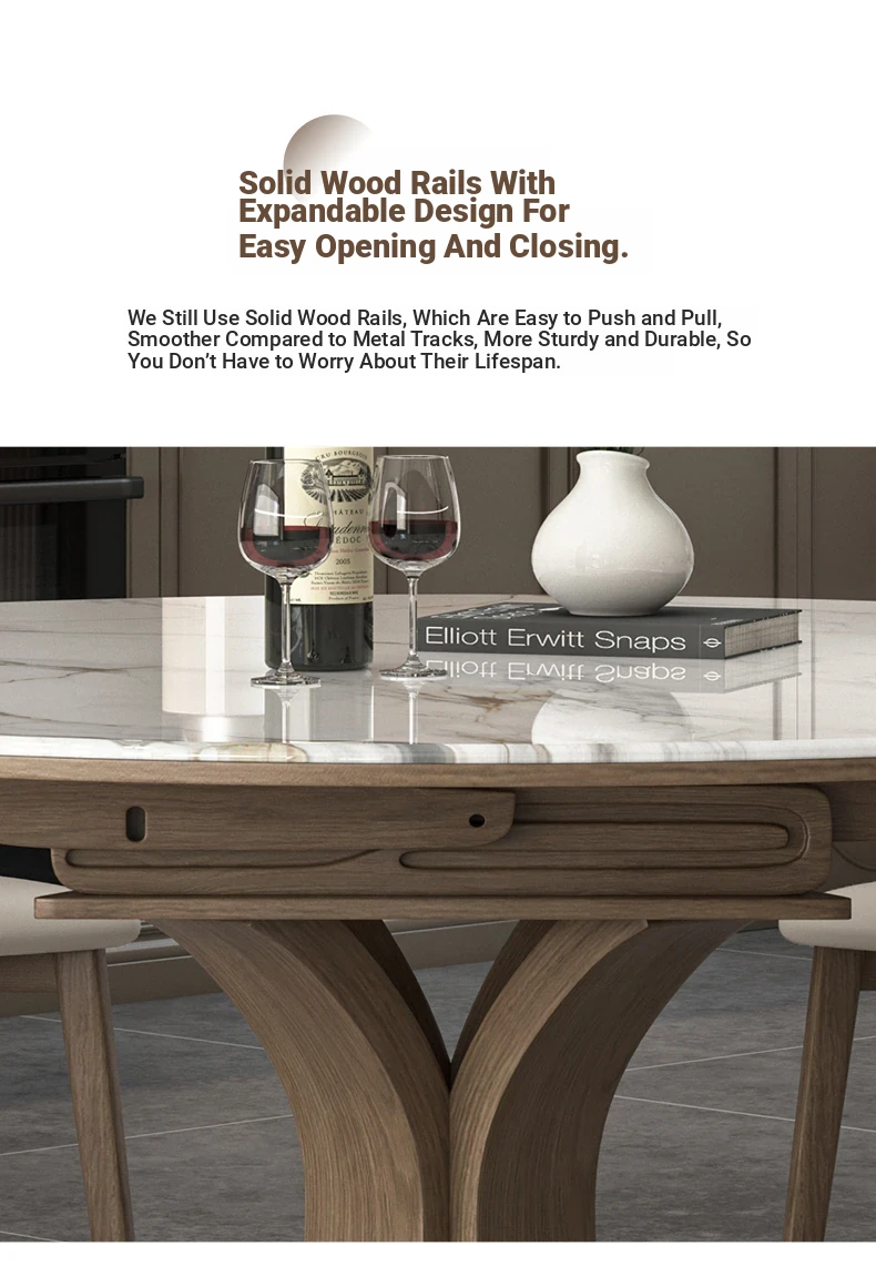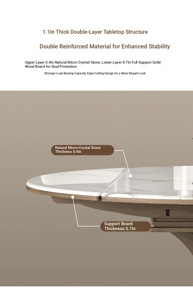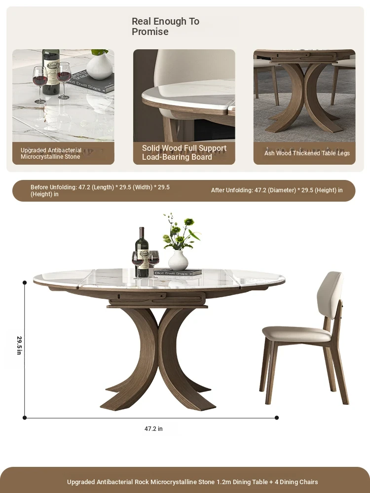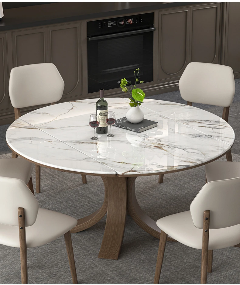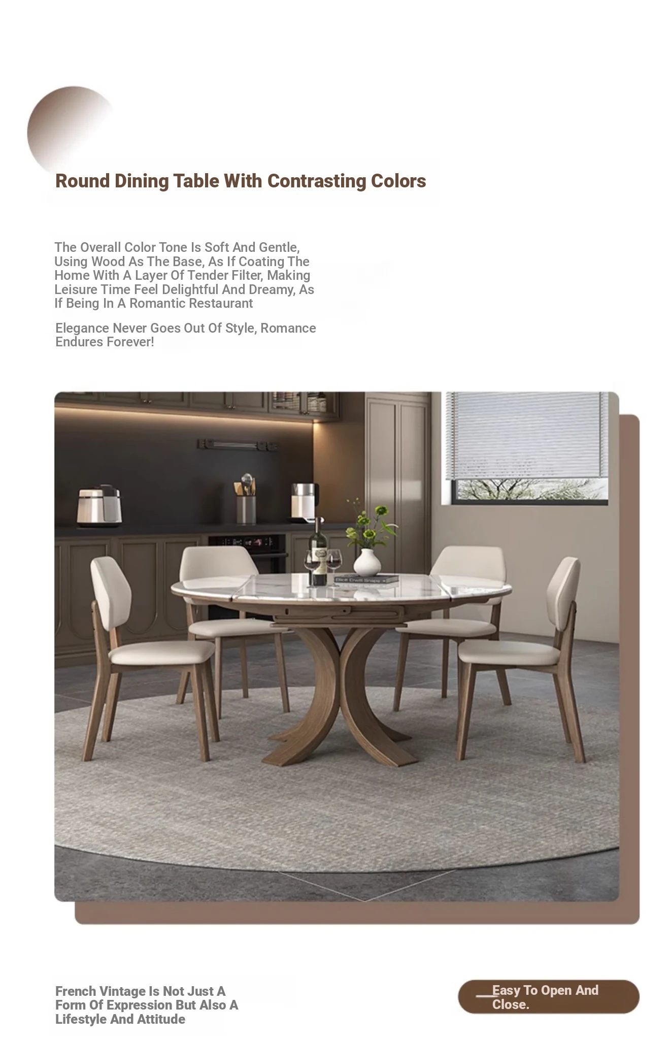 Premium Expandable Round Dining Table - Natural Microcrystal Stone with Vintage Marble Finish, Perfect for Small Spaces and Modern Homes
