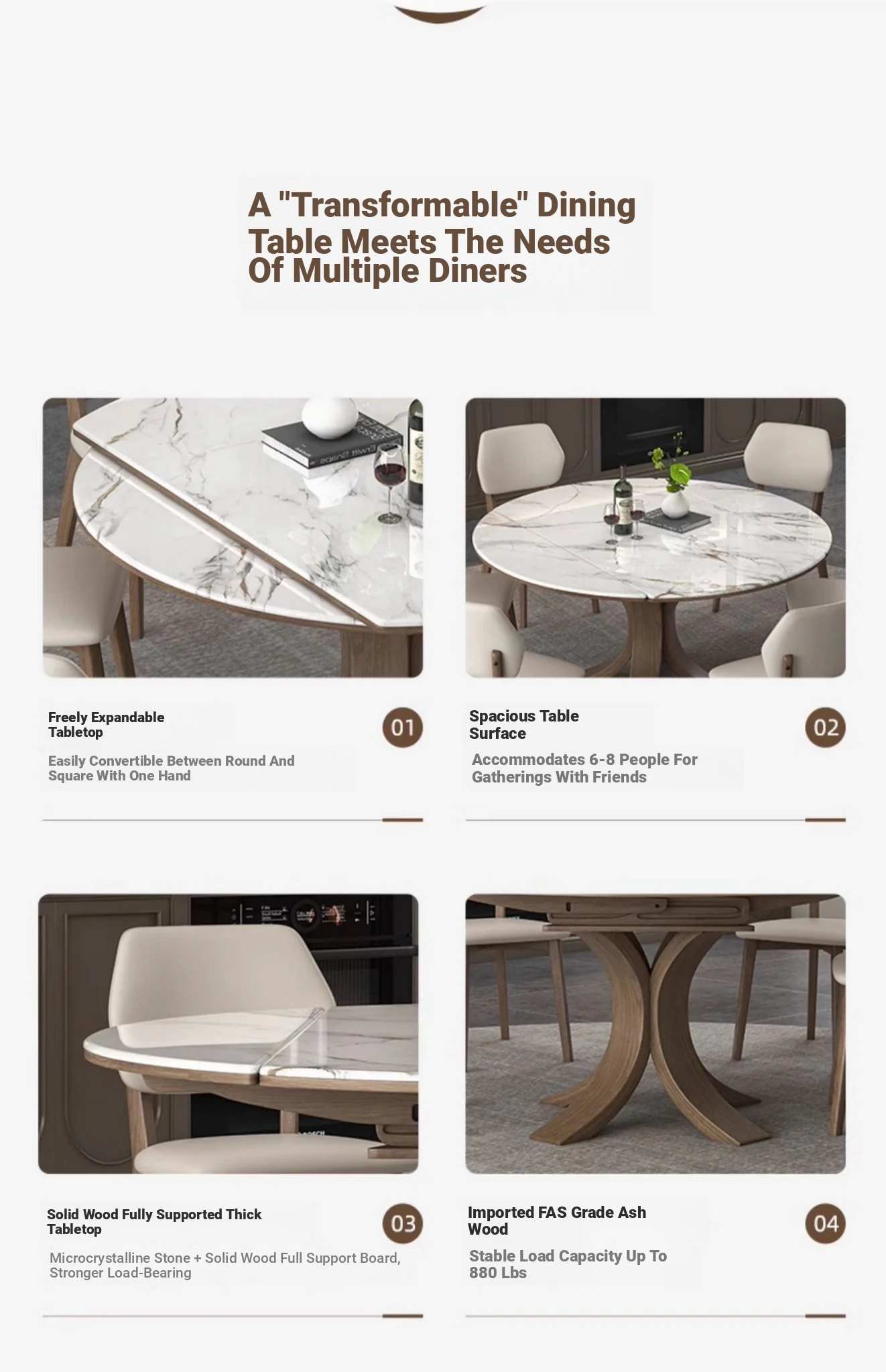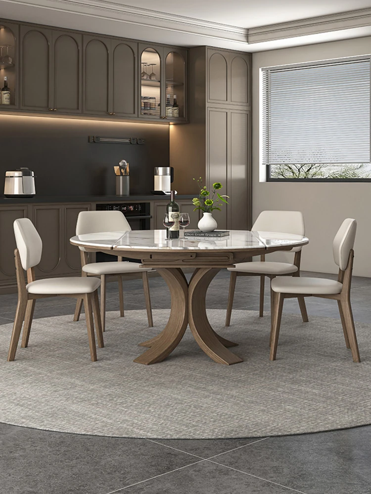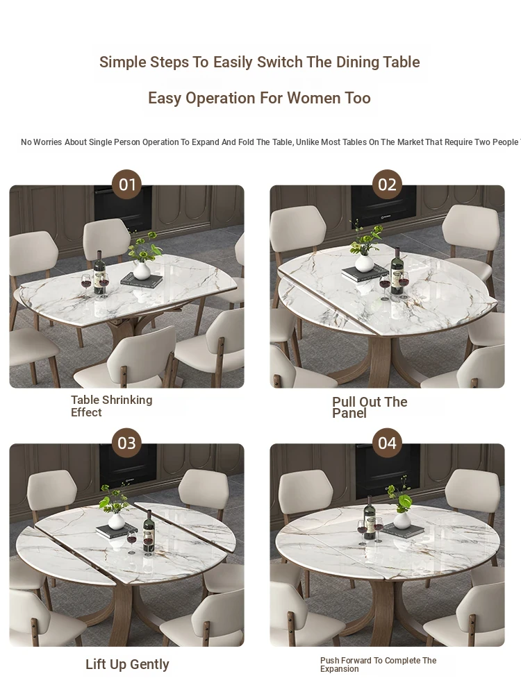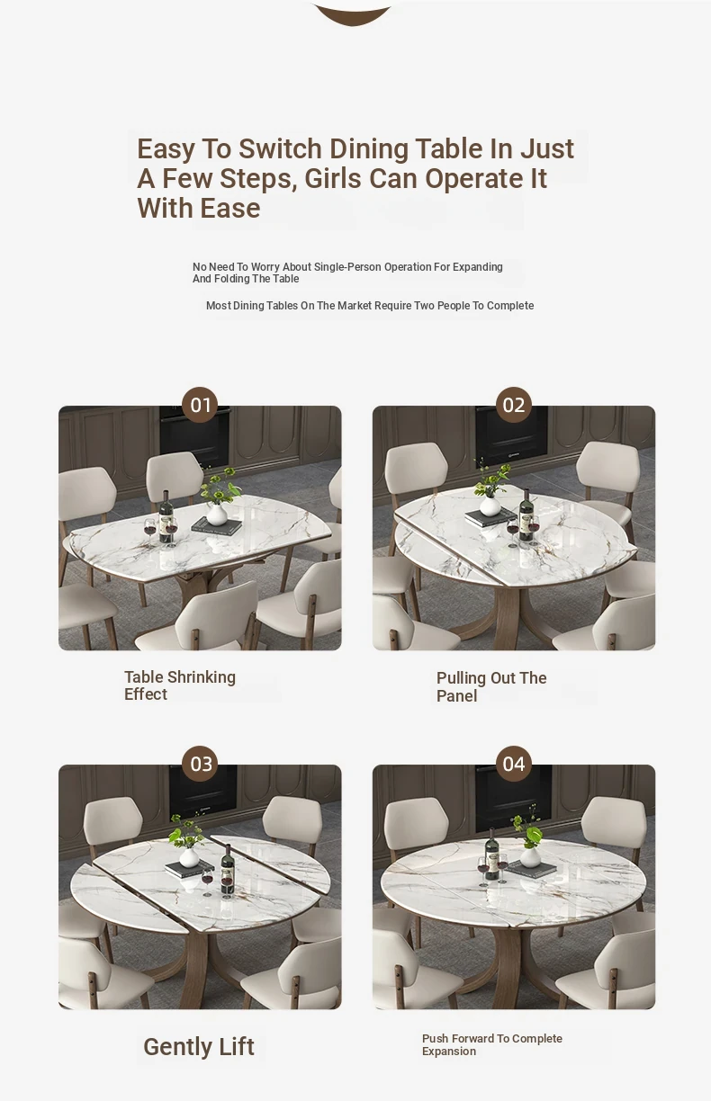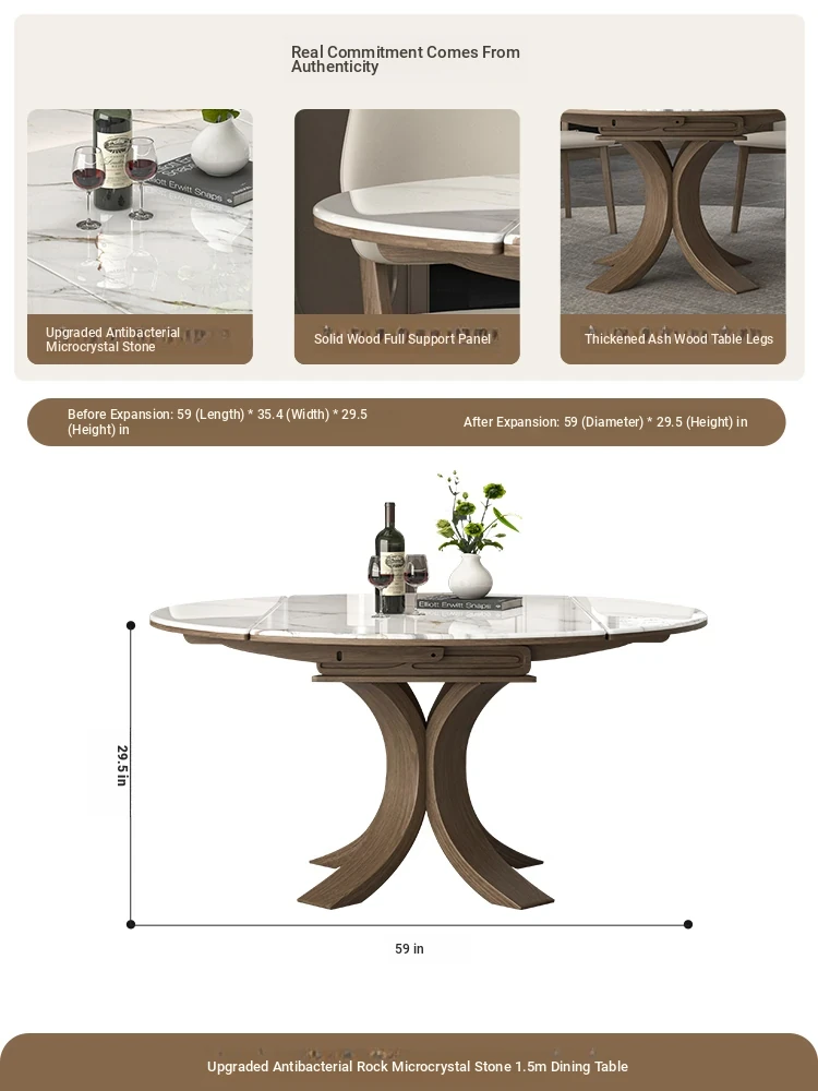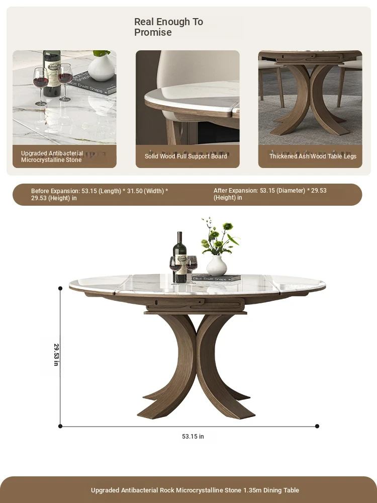 Premium Expandable Round Dining Table - Natural Microcrystal Stone with Vintage Marble Finish, Perfect for Small Spaces and Modern Homes