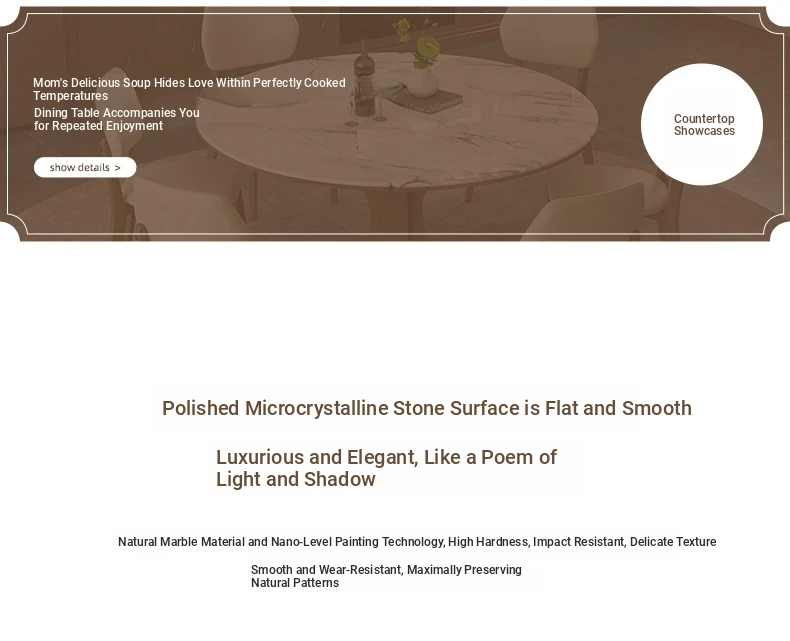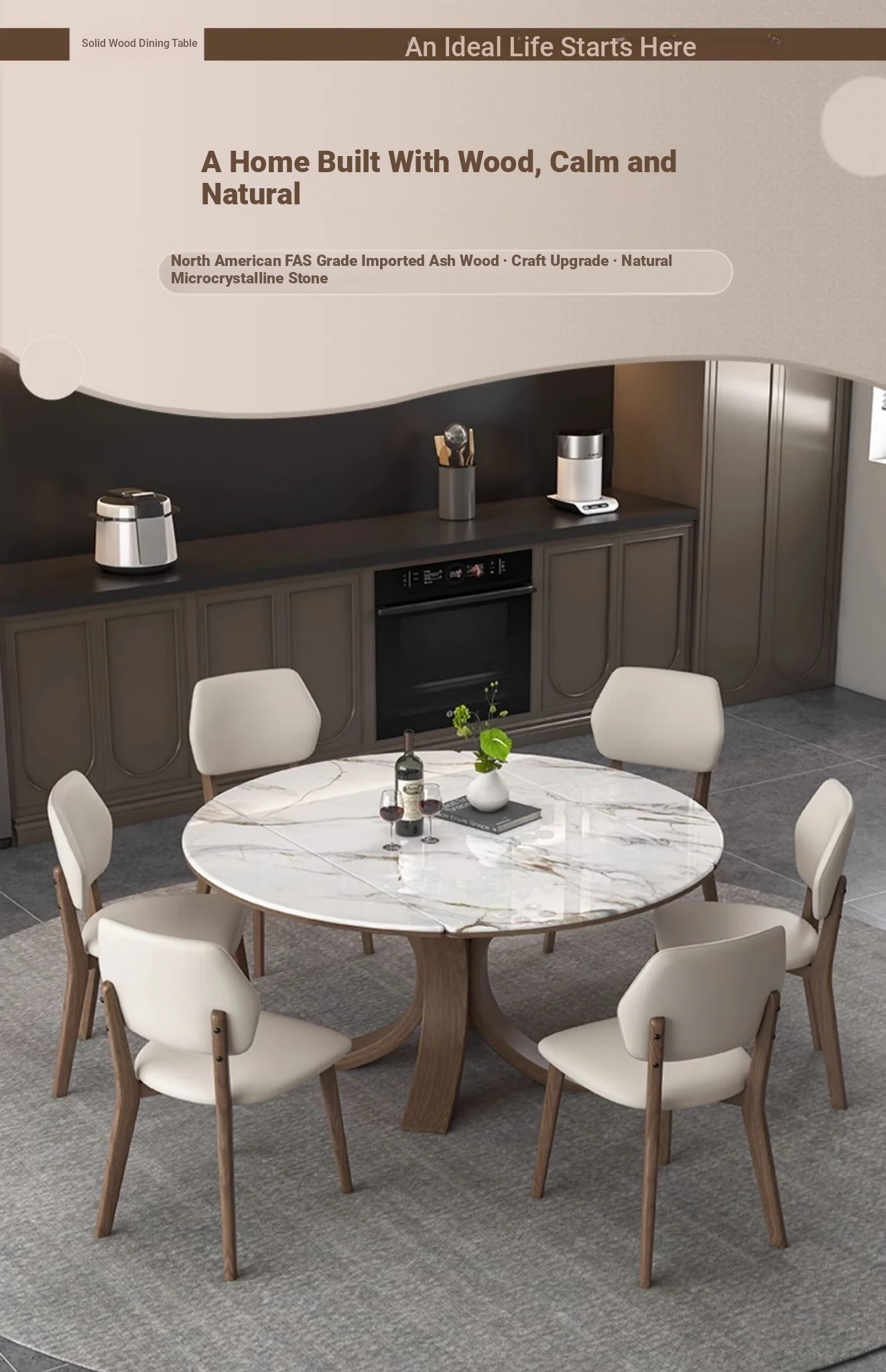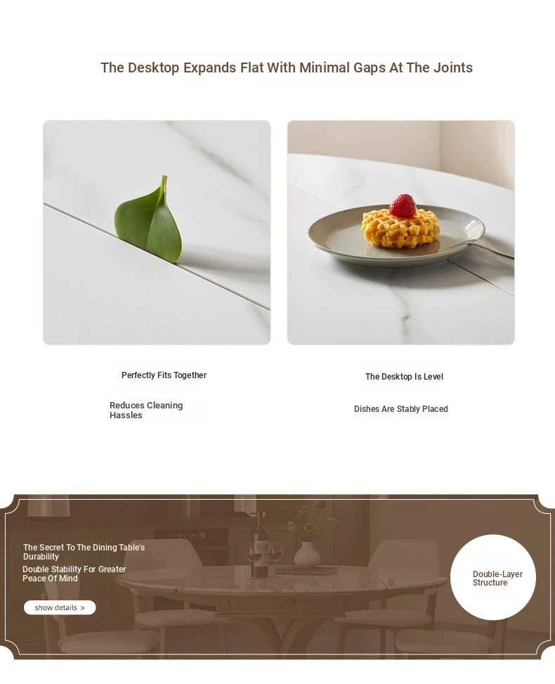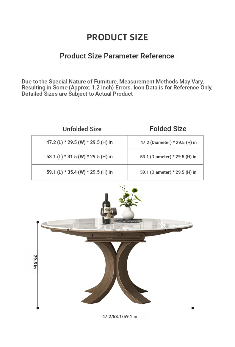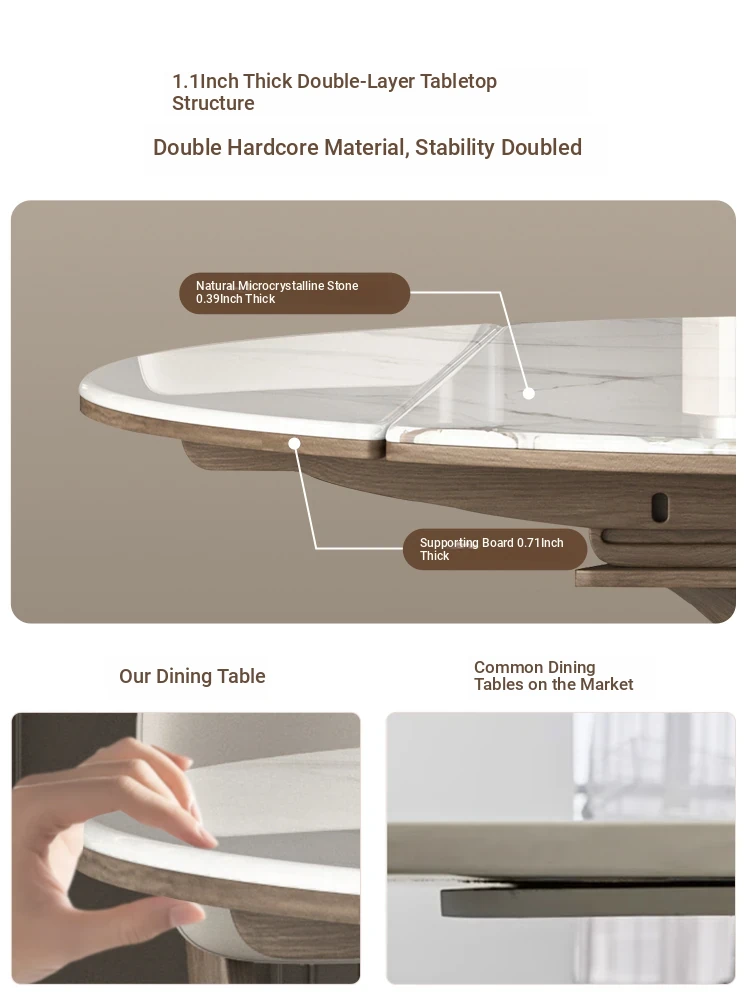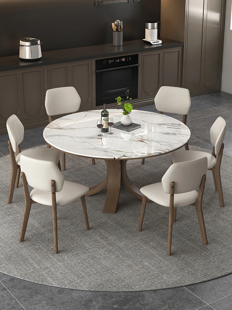 Premium Expandable Round Dining Table - Natural Microcrystal Stone with Vintage Marble Finish, Perfect for Small Spaces and Modern Homes