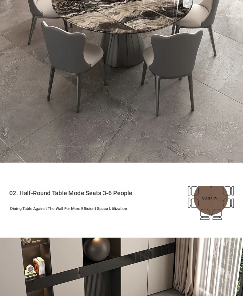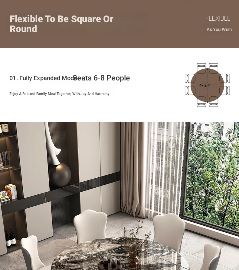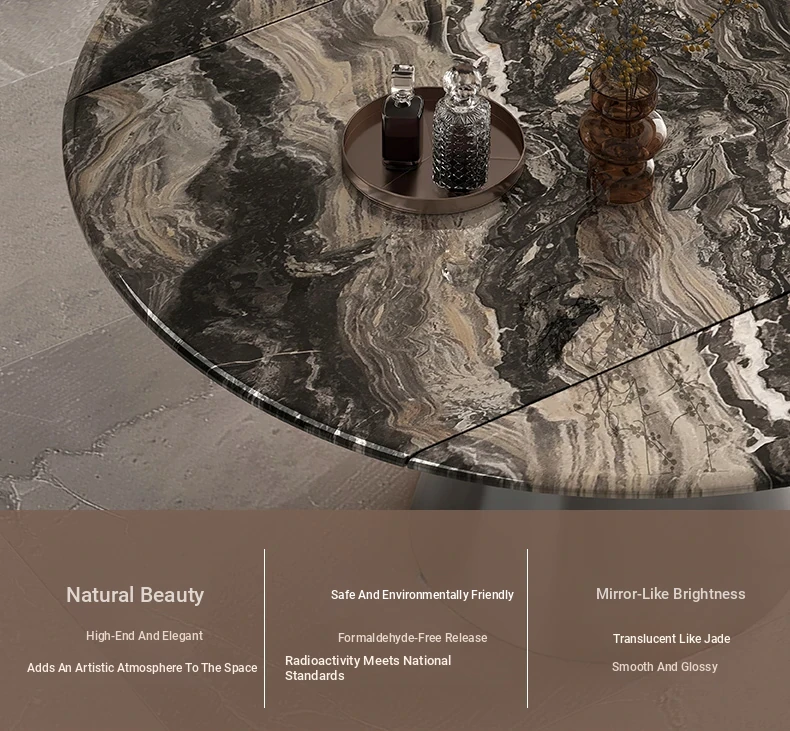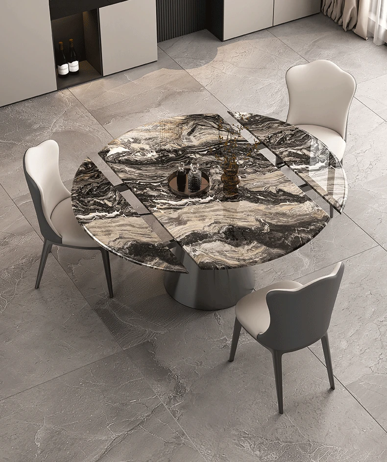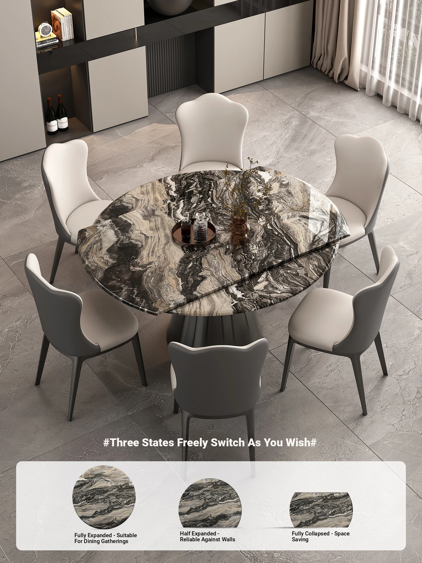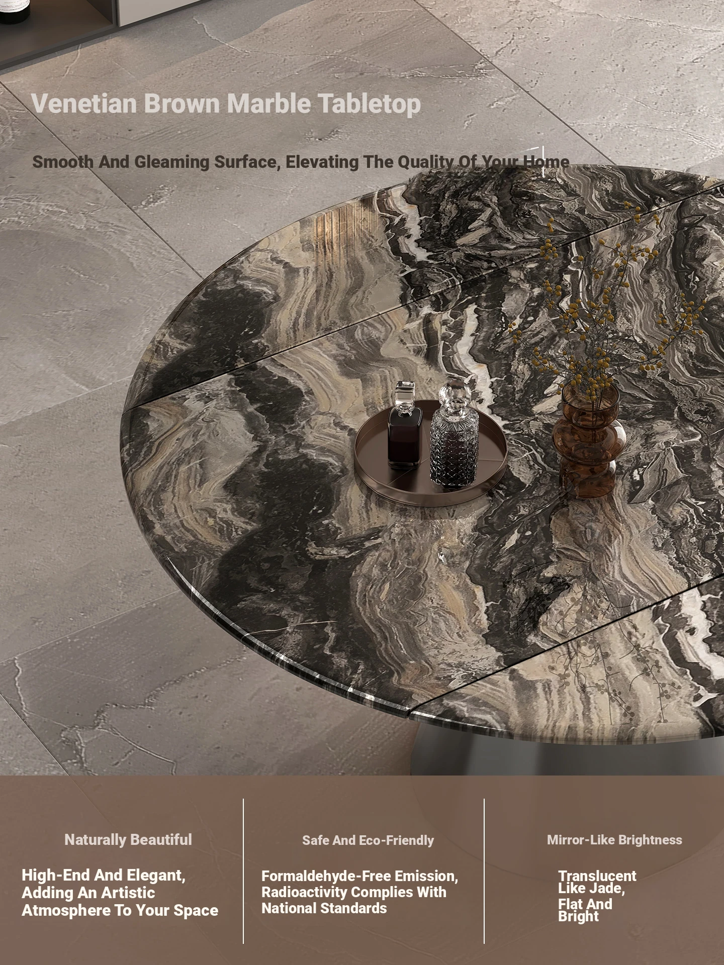 Premium Italian Marble Expandable Dining Table for Small Spaces - Versatile Venice Brown Rotatable Square and Round Design for Elegant Home Use