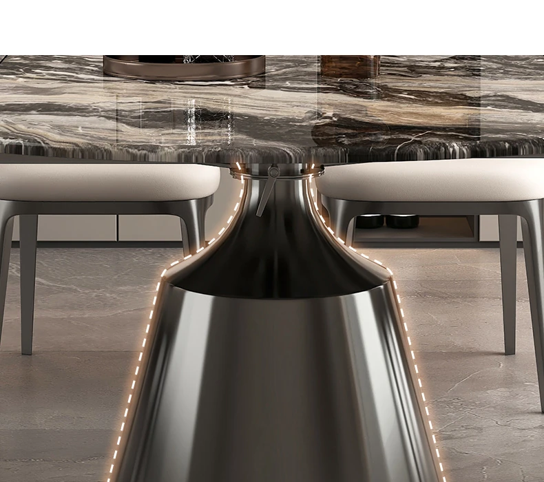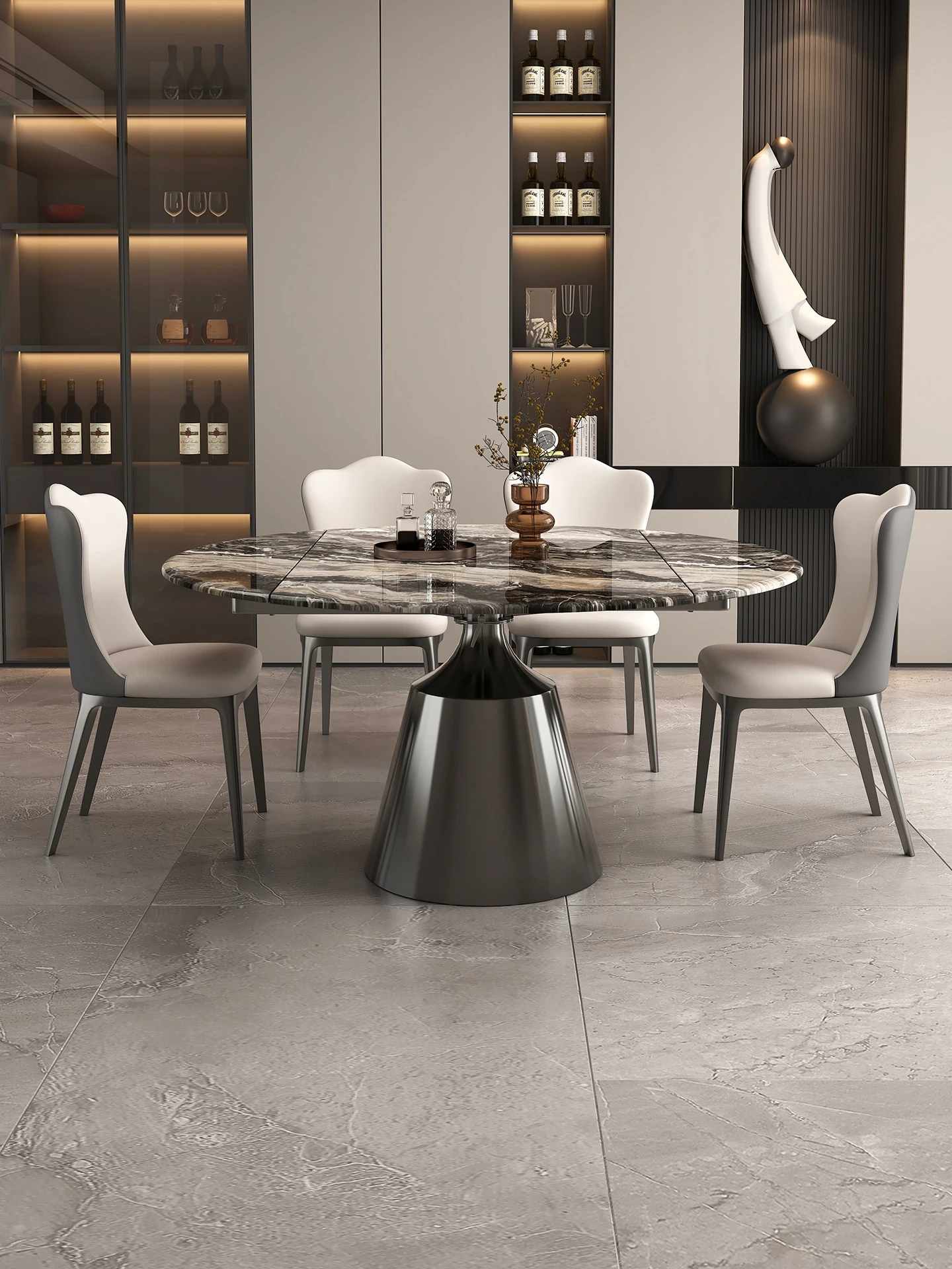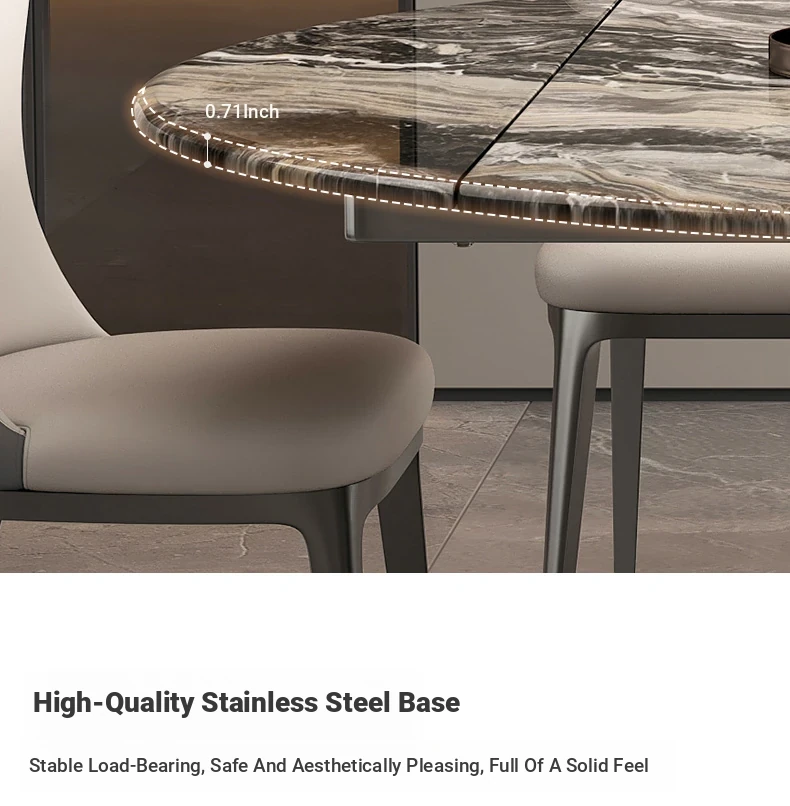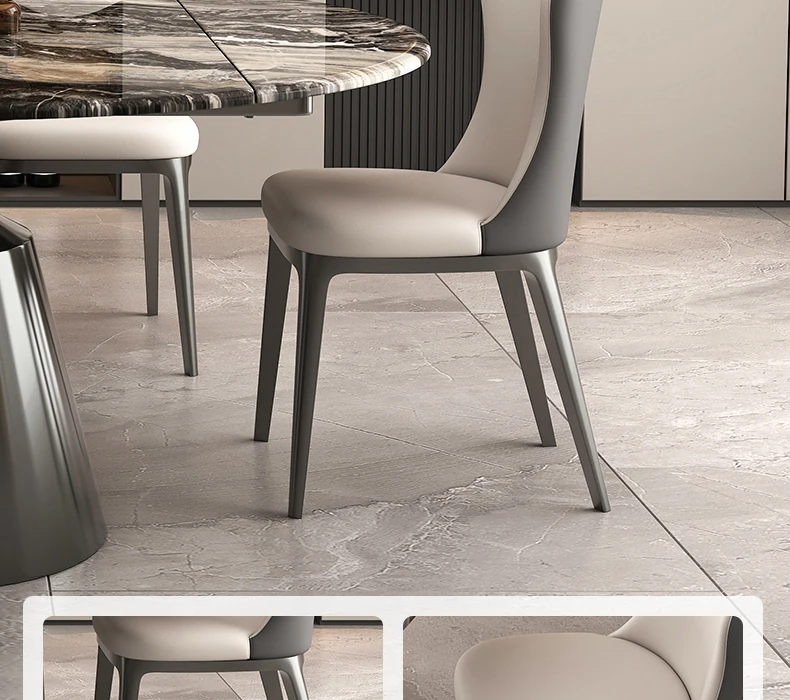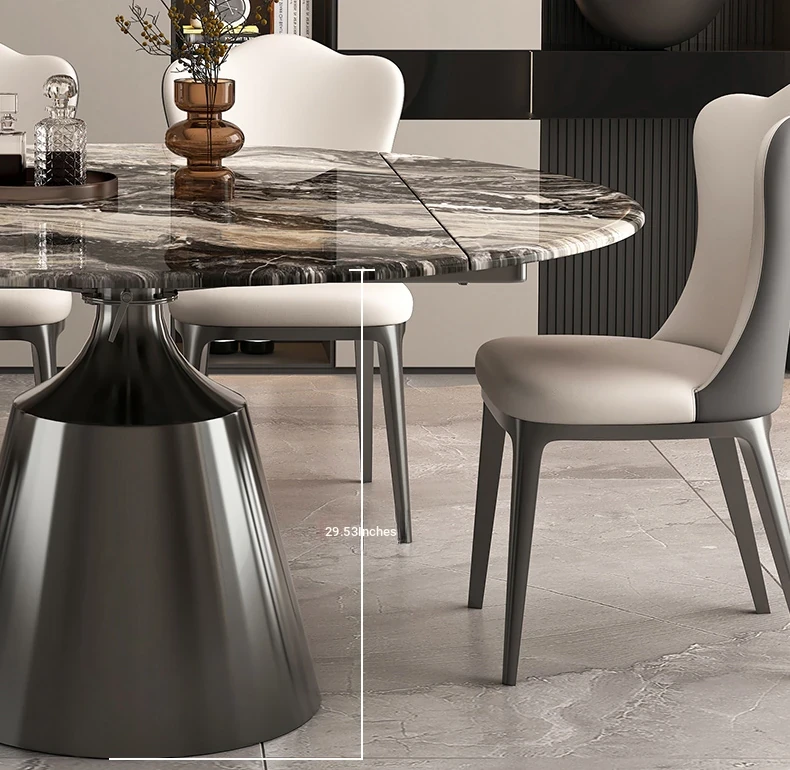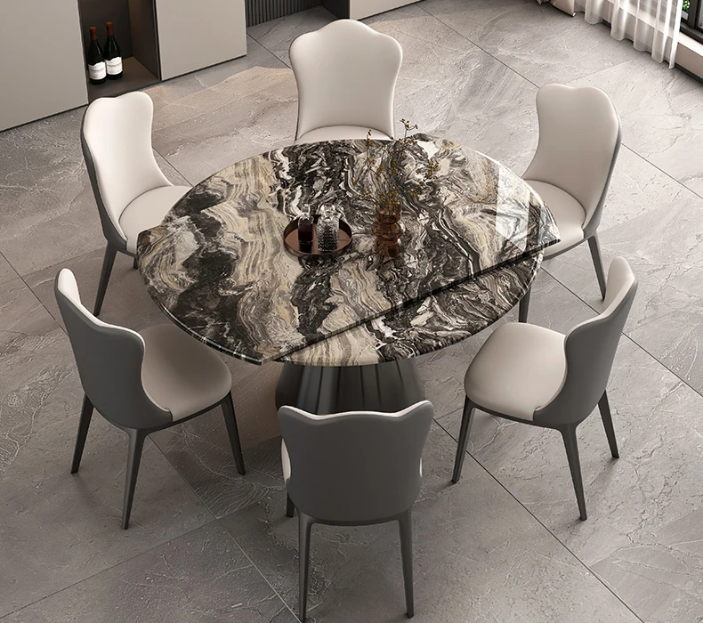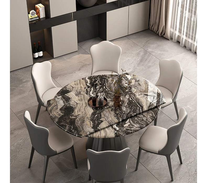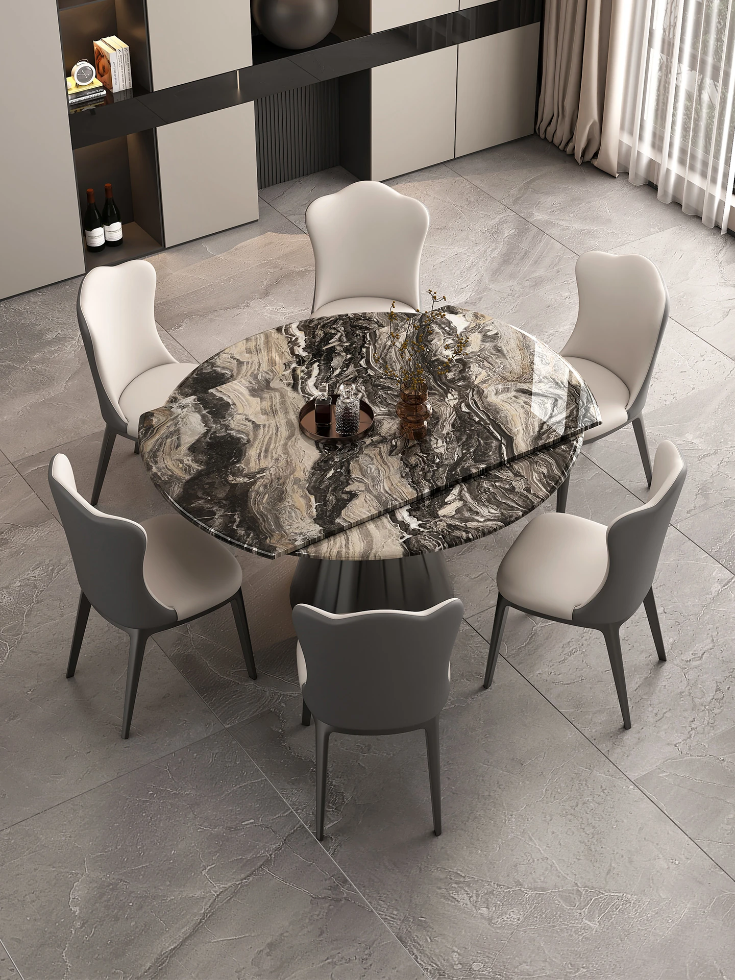 Retractable table (natural marble) + cat scratch leather dining chair * 6