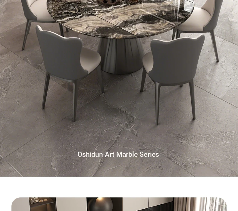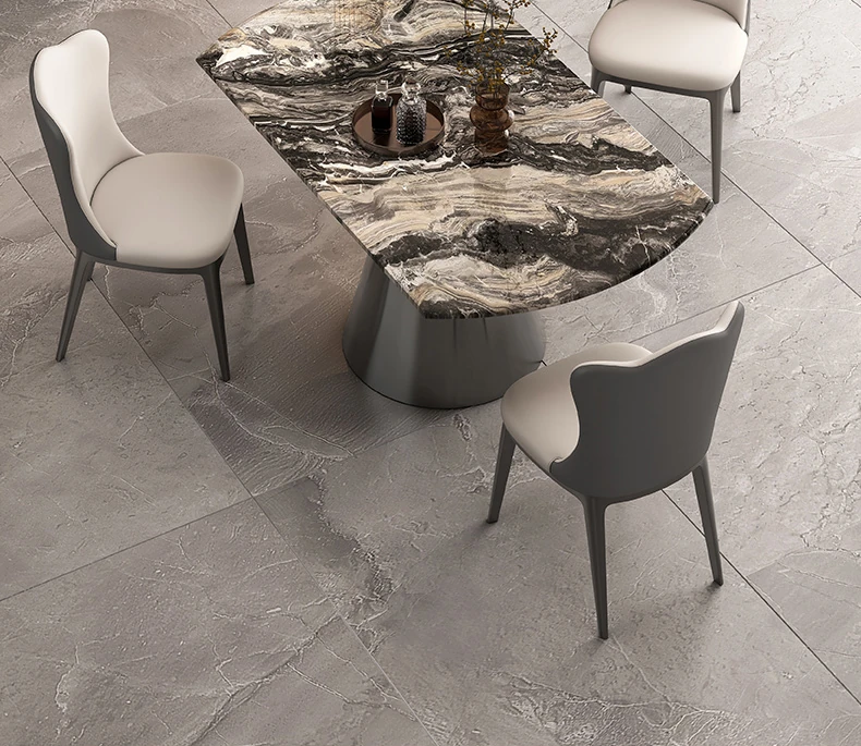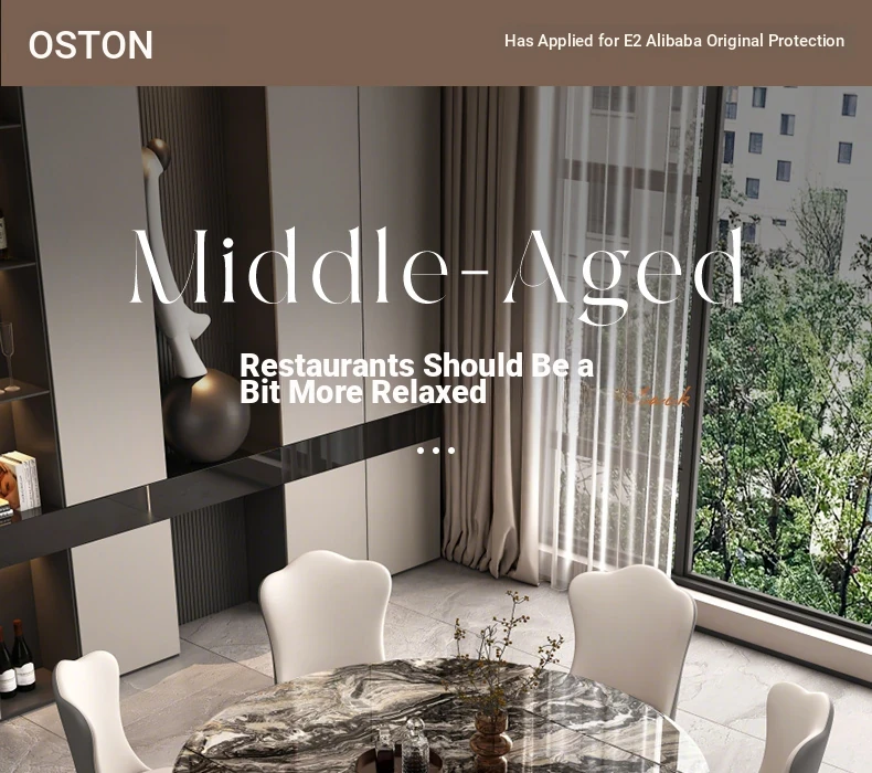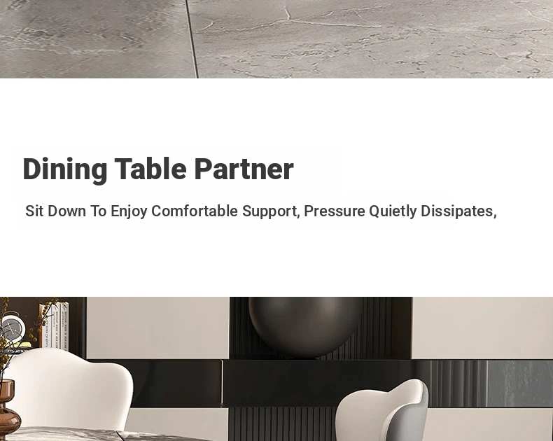 Rotatable dining table (natural marble) + cat scratch leather dining chair * 6