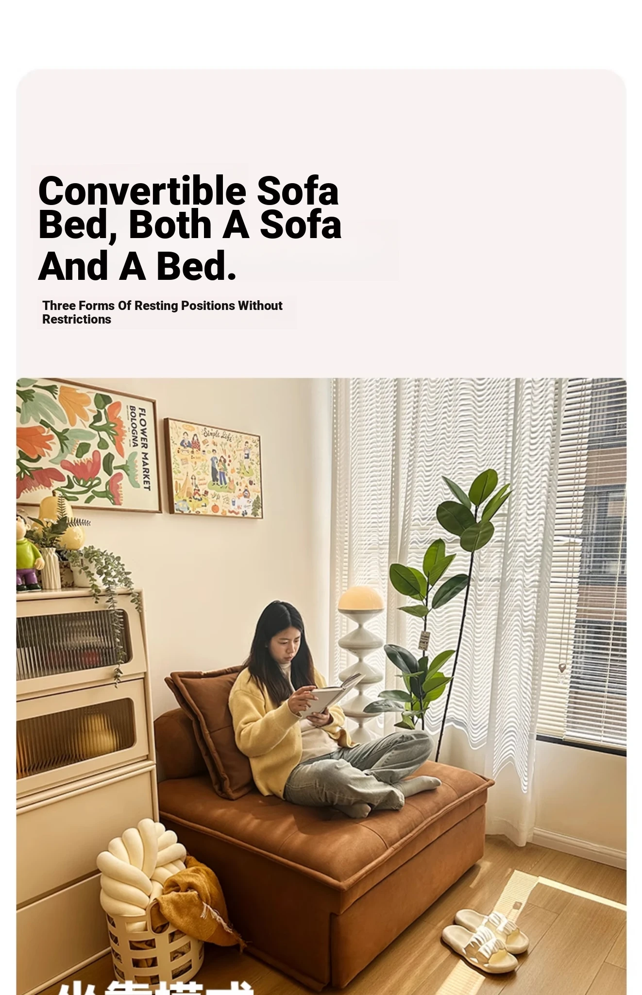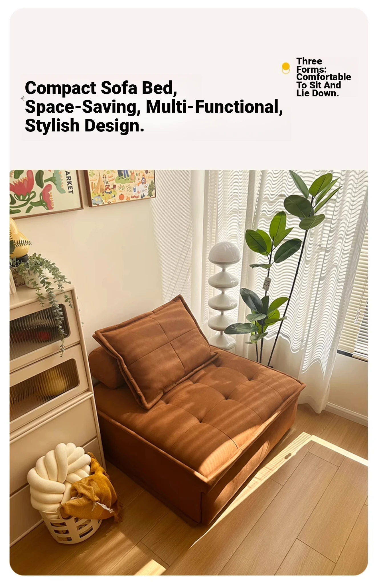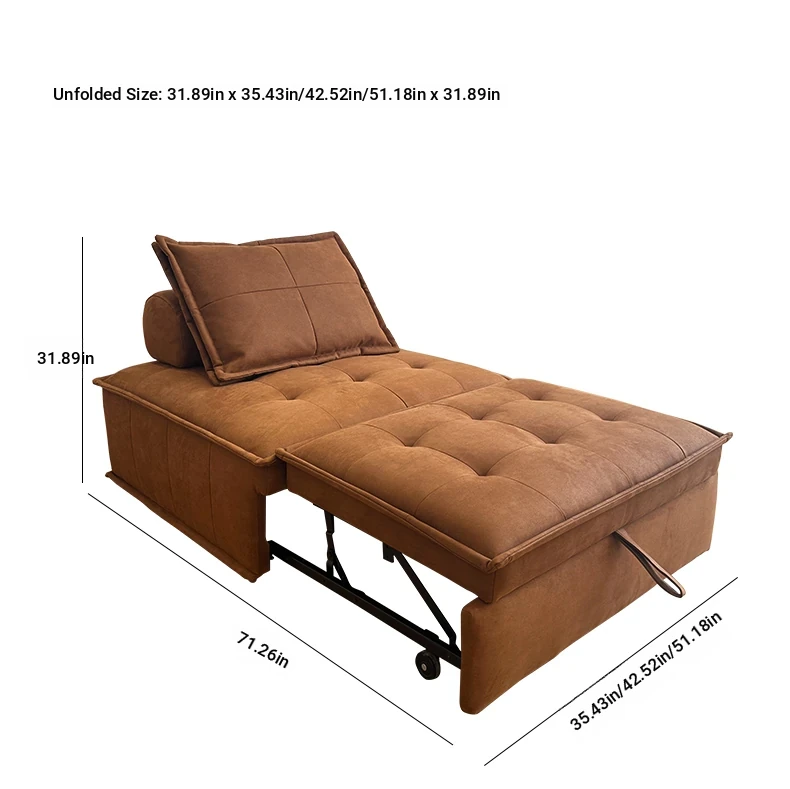 Retro Multifunctional Folding Sofa Bed - Space-Saving Compact Design for Small Apartments, Stylish Vintage Single Bedroom Convertable Bed - Model 612