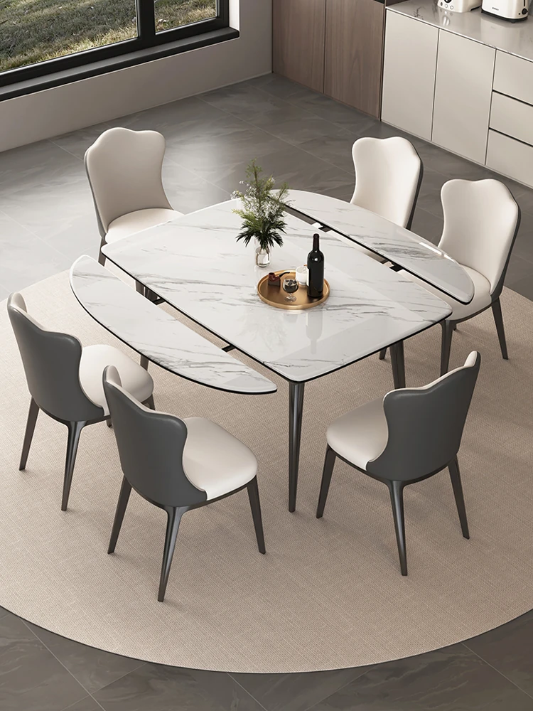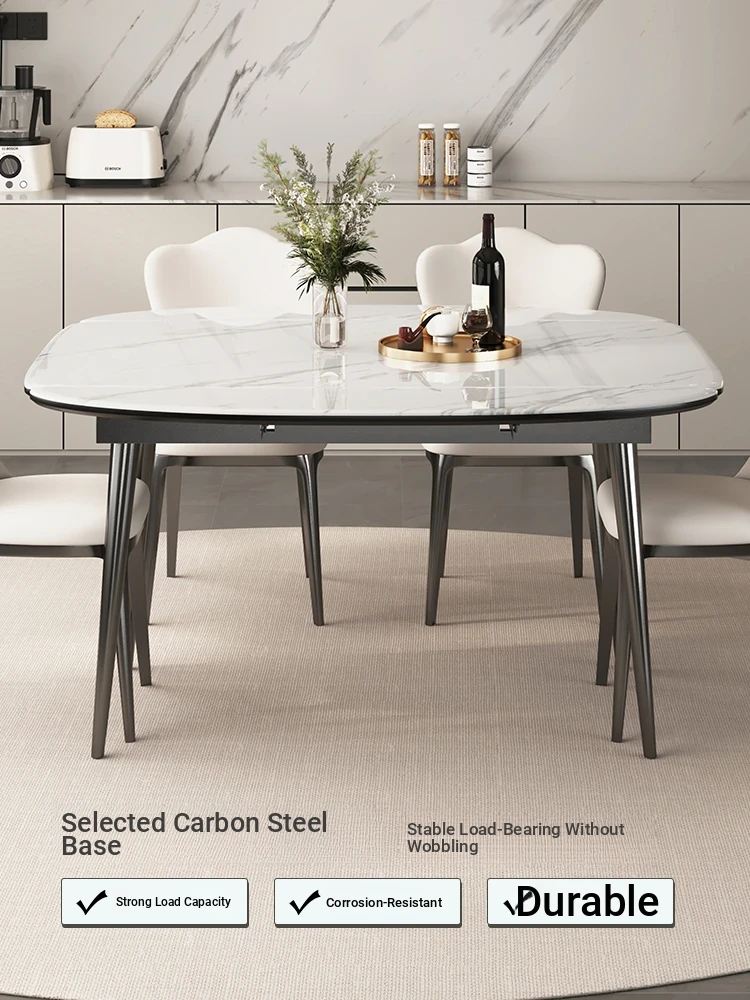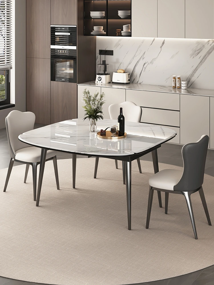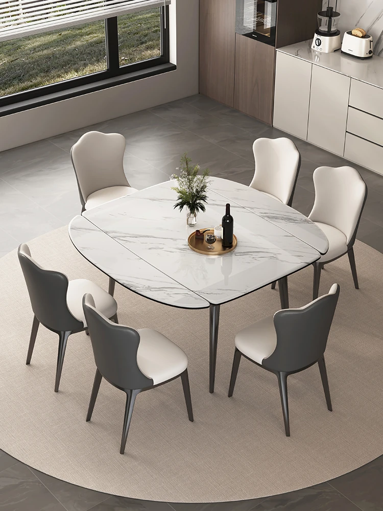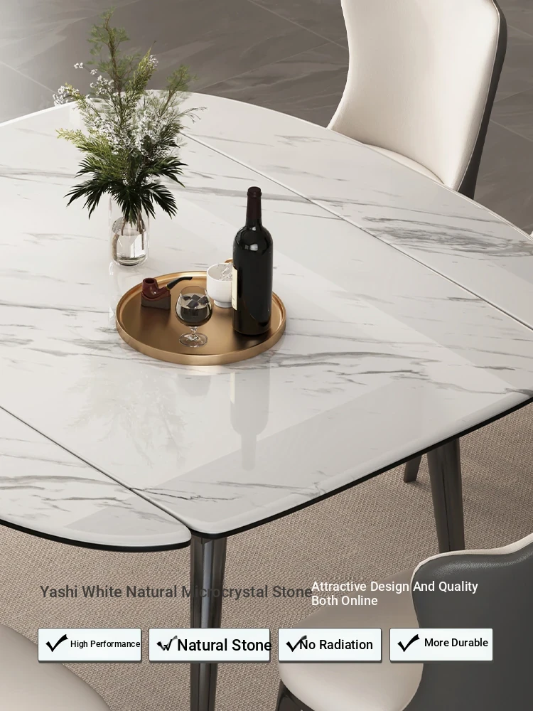 Stylish Expandable Dining Table Set with Natural Microcrystalline Stone – Perfect for Small Spaces, Modern Minimalist Design, Versatile Round or Square Shape, Ideal for Home Use.