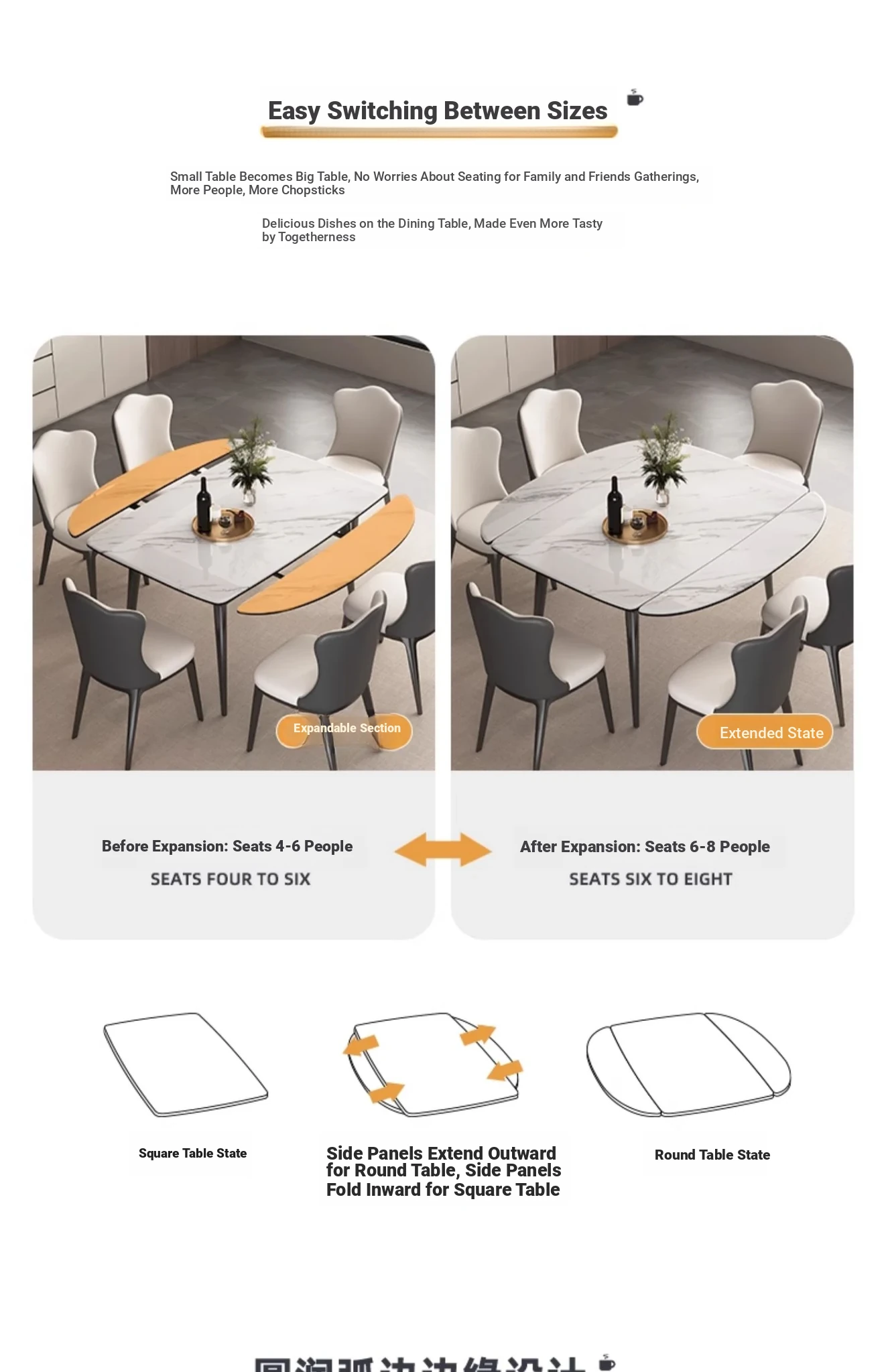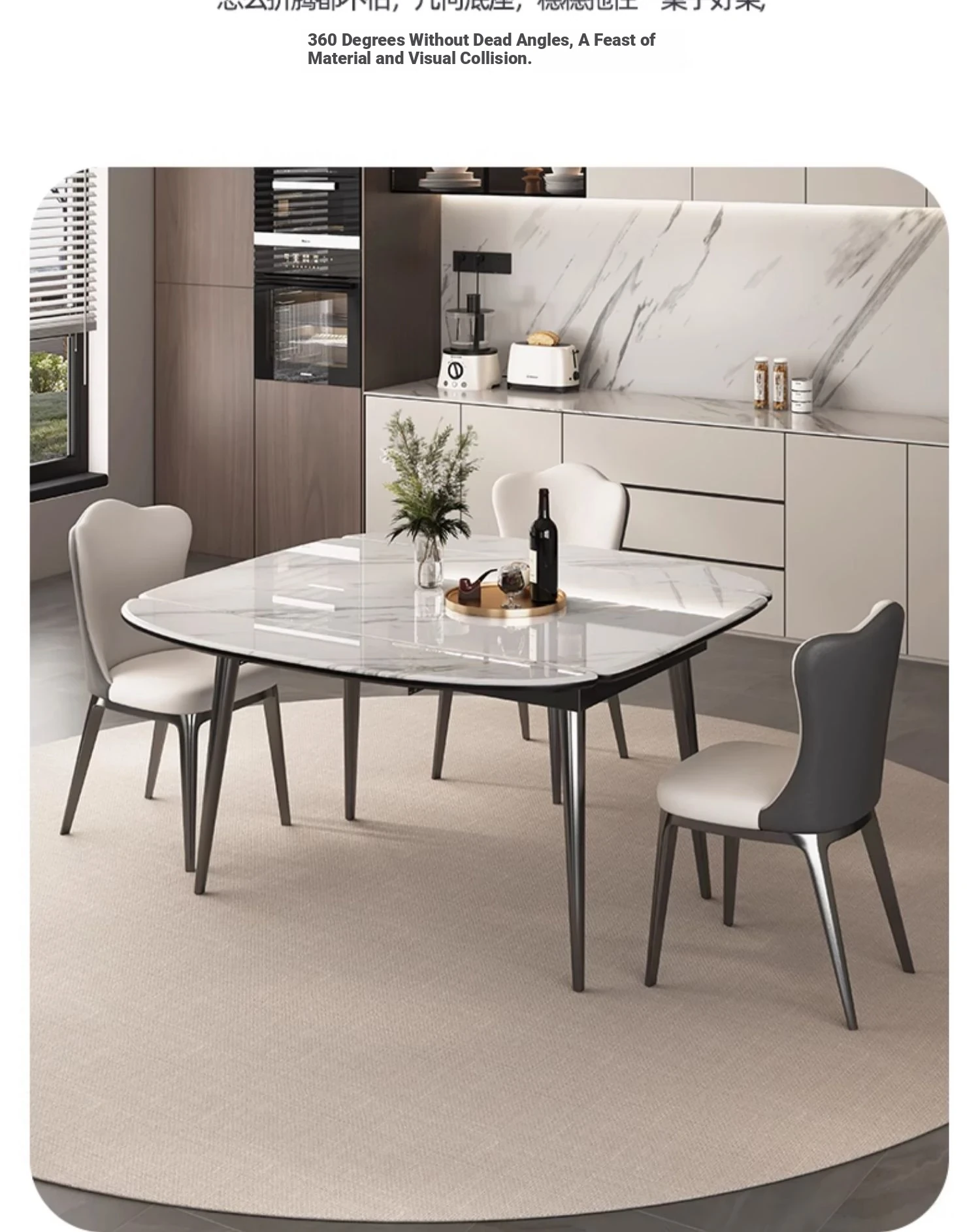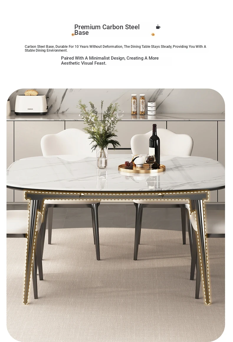 Stylish Expandable Dining Table Set with Natural Microcrystalline Stone – Perfect for Small Spaces, Modern Minimalist Design, Versatile Round or Square Shape, Ideal for Home Use.