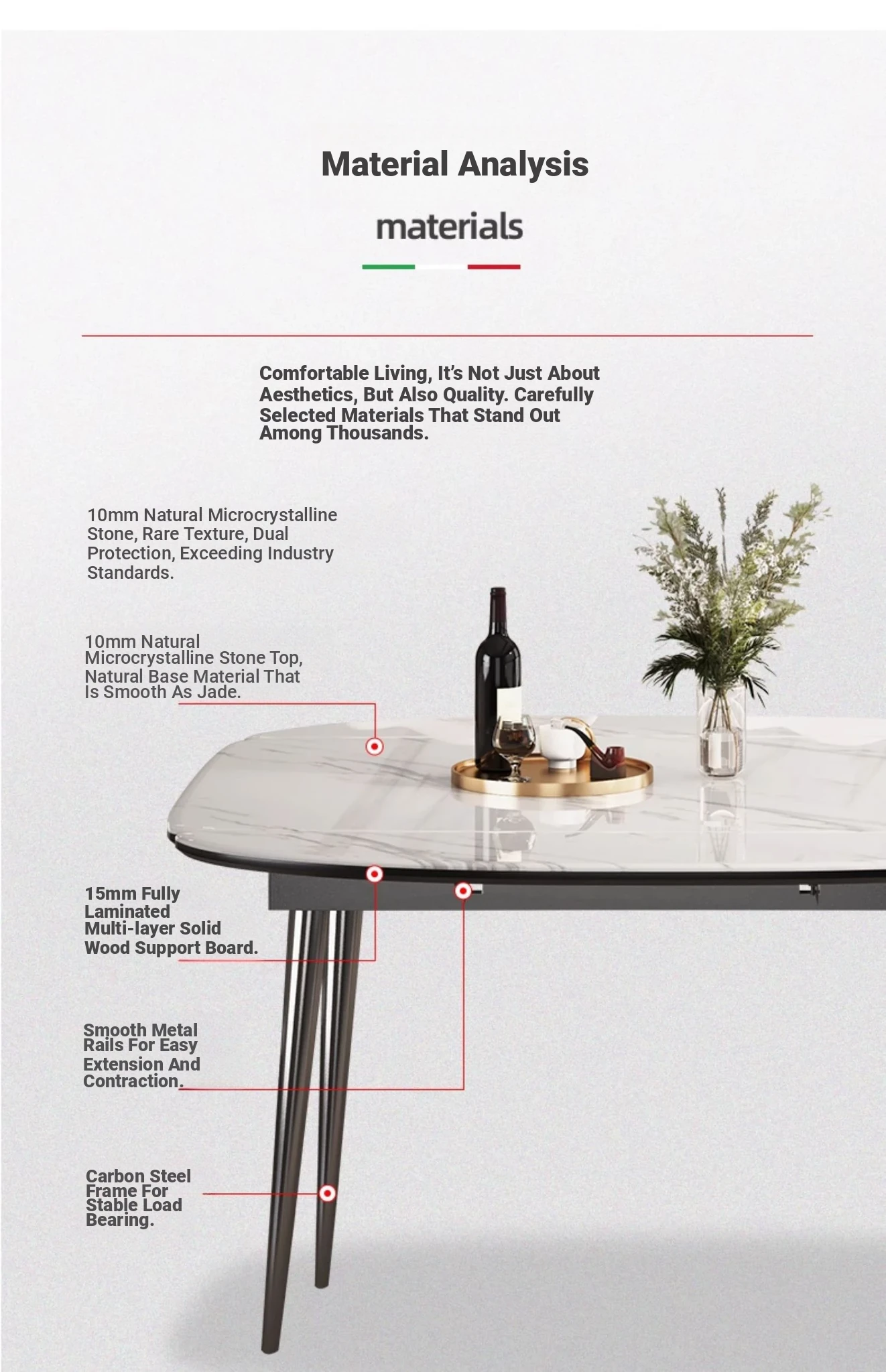 1.3 telescopic table + natural microcrystalline Stone (composite wooden support)