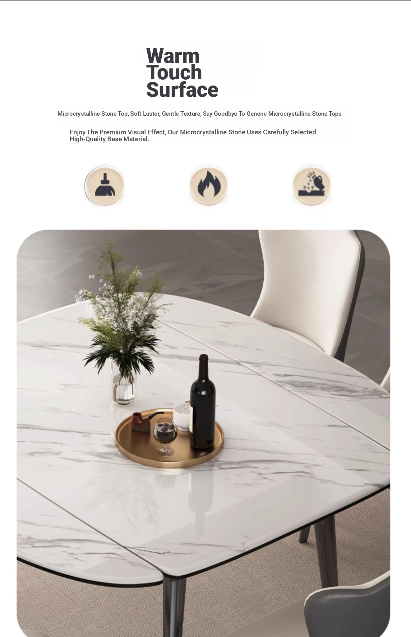 1.4 Natural microcrystalline stone telescopic table (composite wooden support) +6 chairs