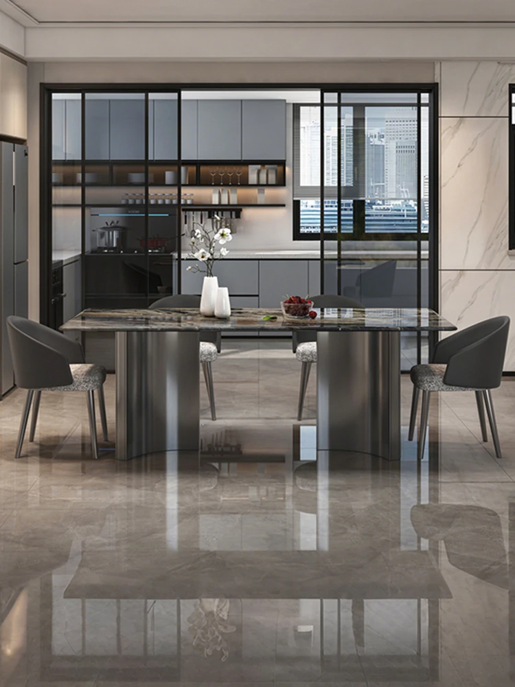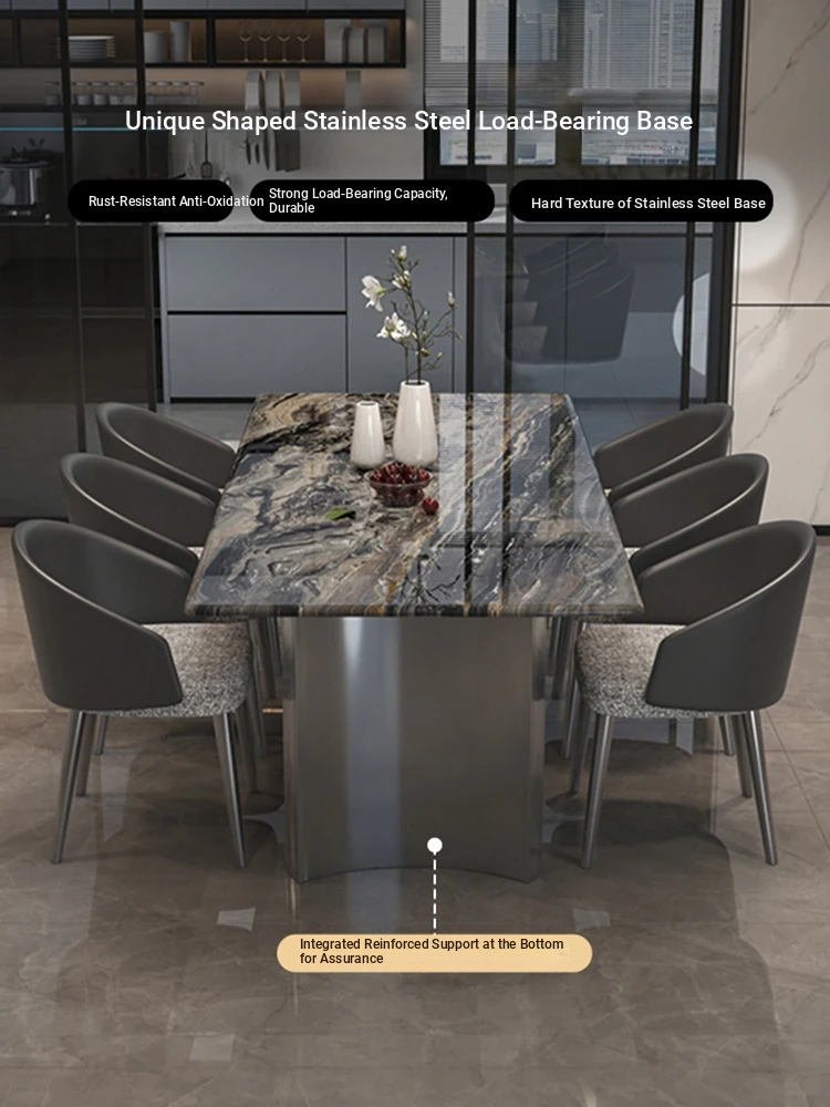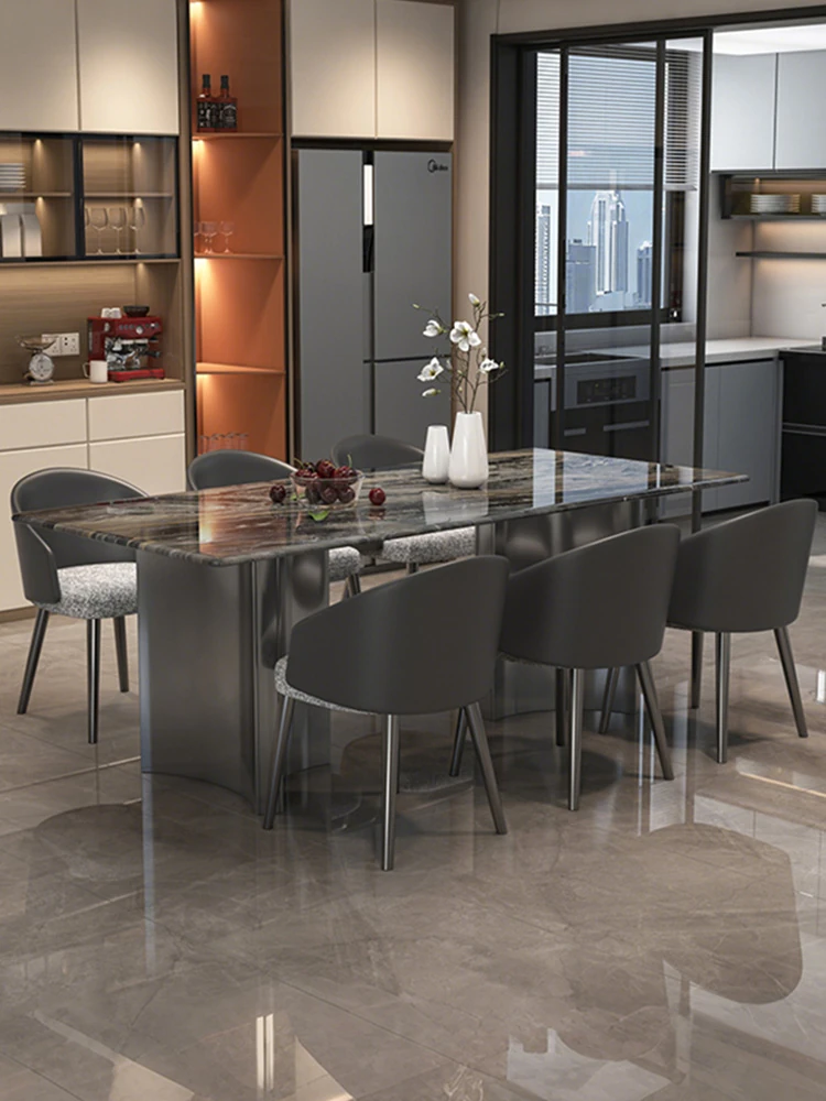 Venice Brown Natural Marble Dining Table 2025 New Luxury Design - Elegant Rectangular Table and Chair Set for Upscale Home Dining Experience