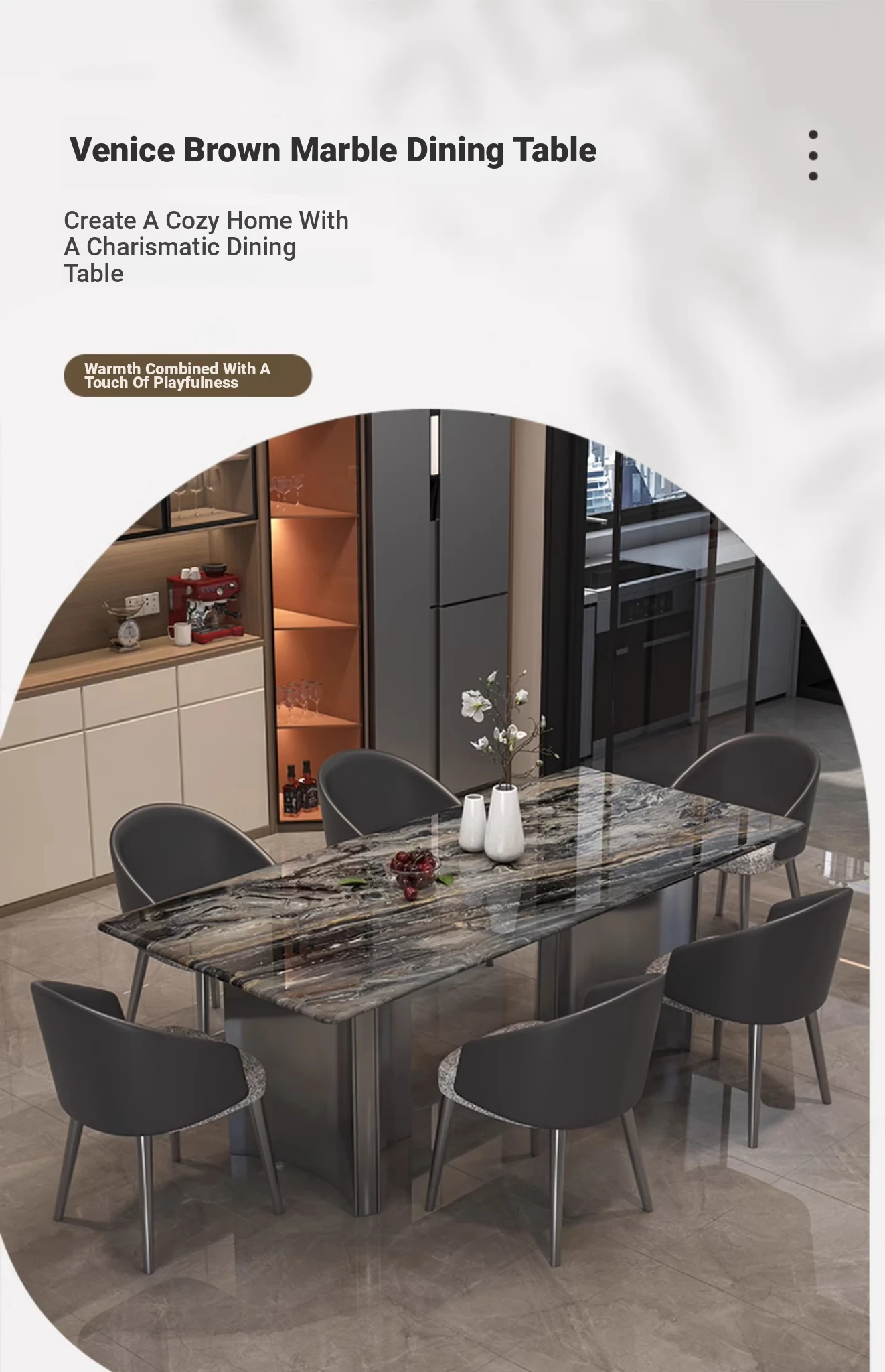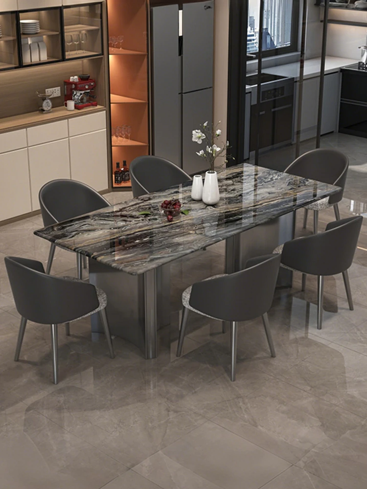 55.12in*31.50in Venice Brown Natural Luxury Stone Dining Table + Clouds Leather Chair * 6