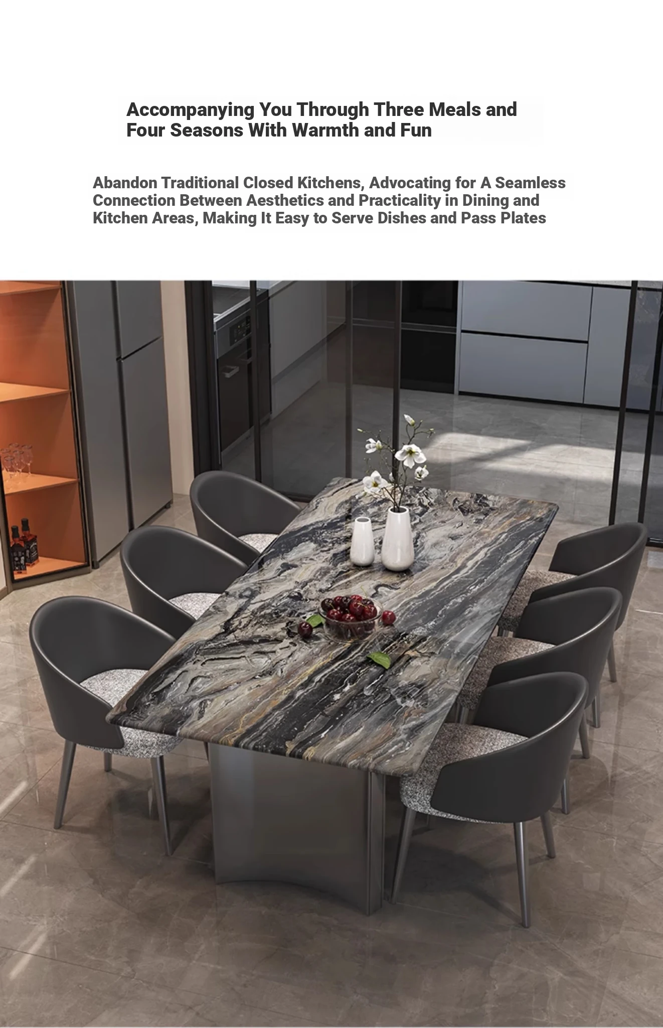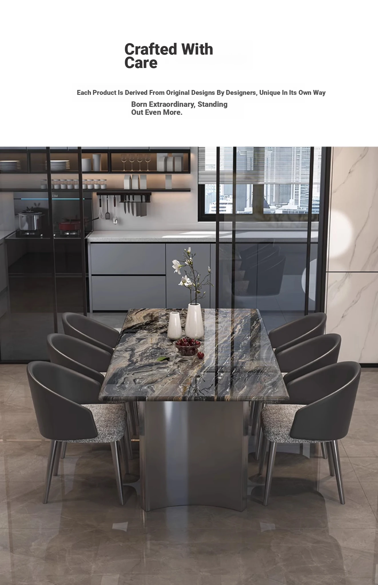 62.99in*31.50in Venice Brown Natural Luxury Stone Dining Table + Clouds Leather Chair * 6