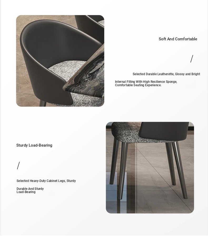 51.18in Venice brown marble dining table + cat scratch leather dining chair * 4
