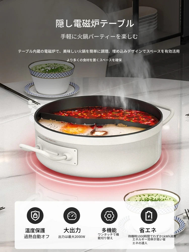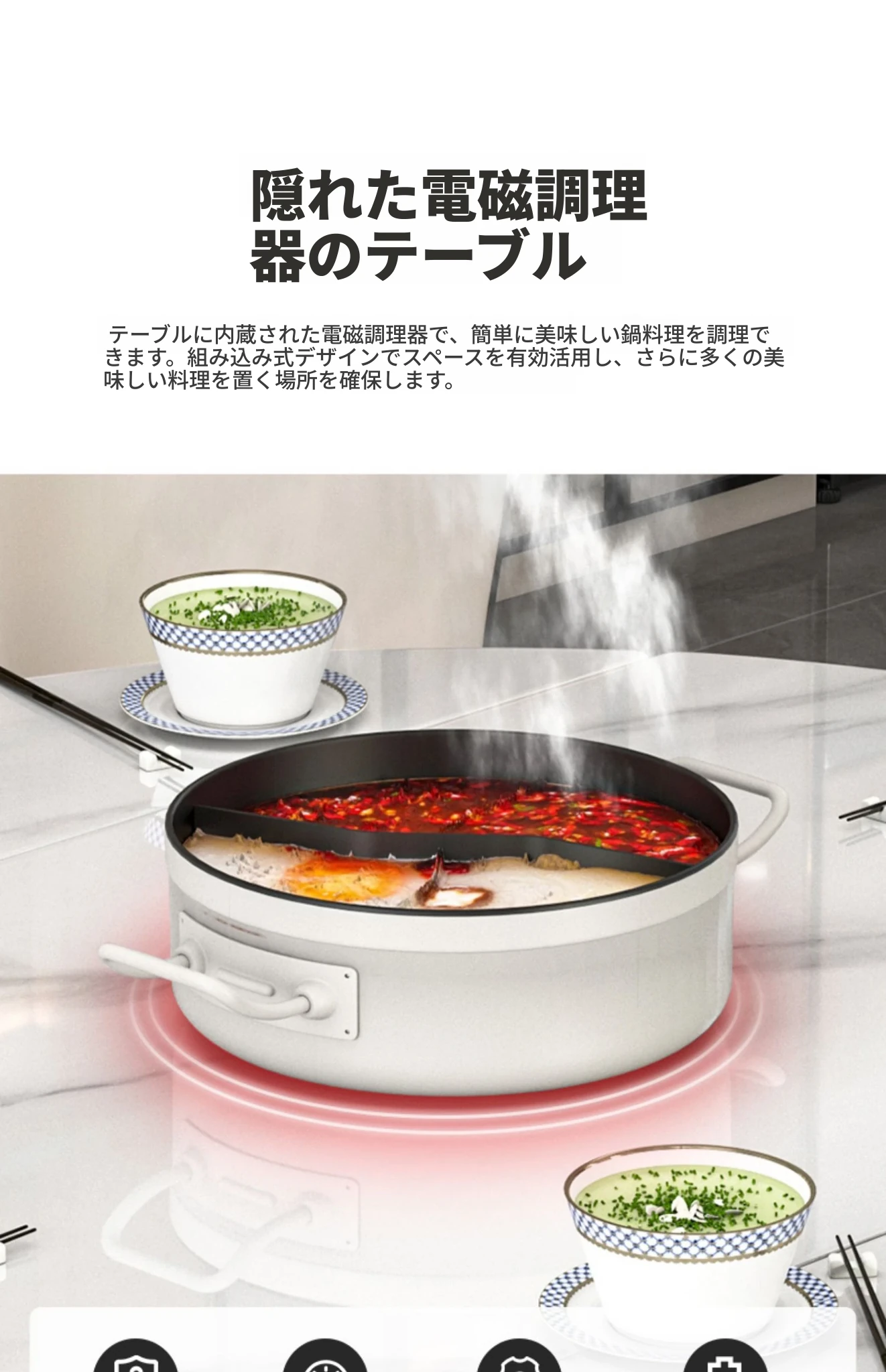 1.4M伸縮式ダイニングテーブル 電磁調理器付き【2200W出力 3C認証】