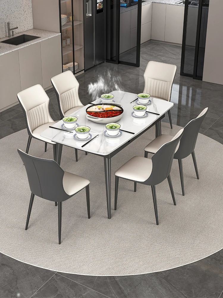 1.4Mダイニングテーブル 伸縮式 電磁調理器付き + キャットスクラッチレザー椅子*6