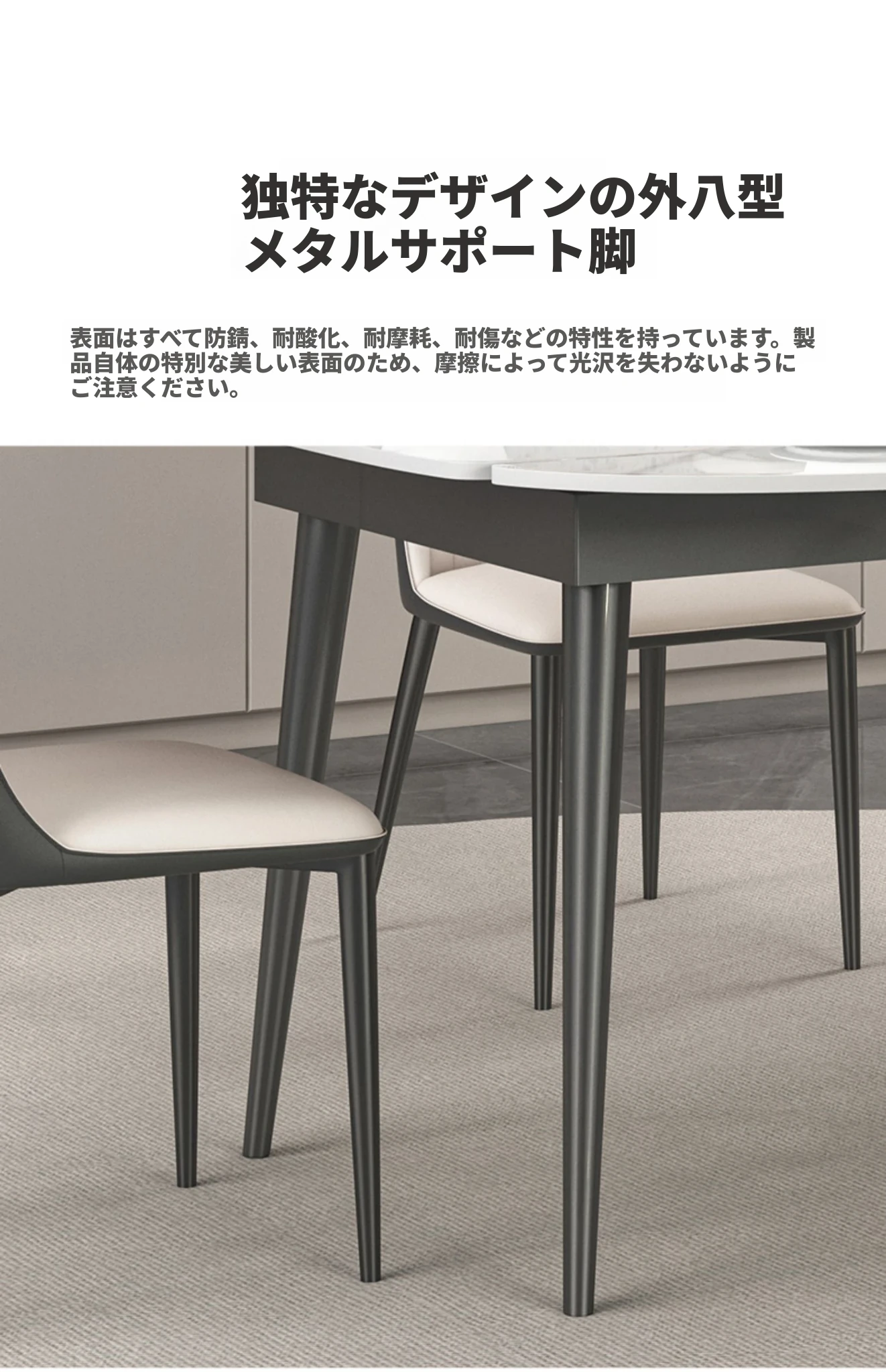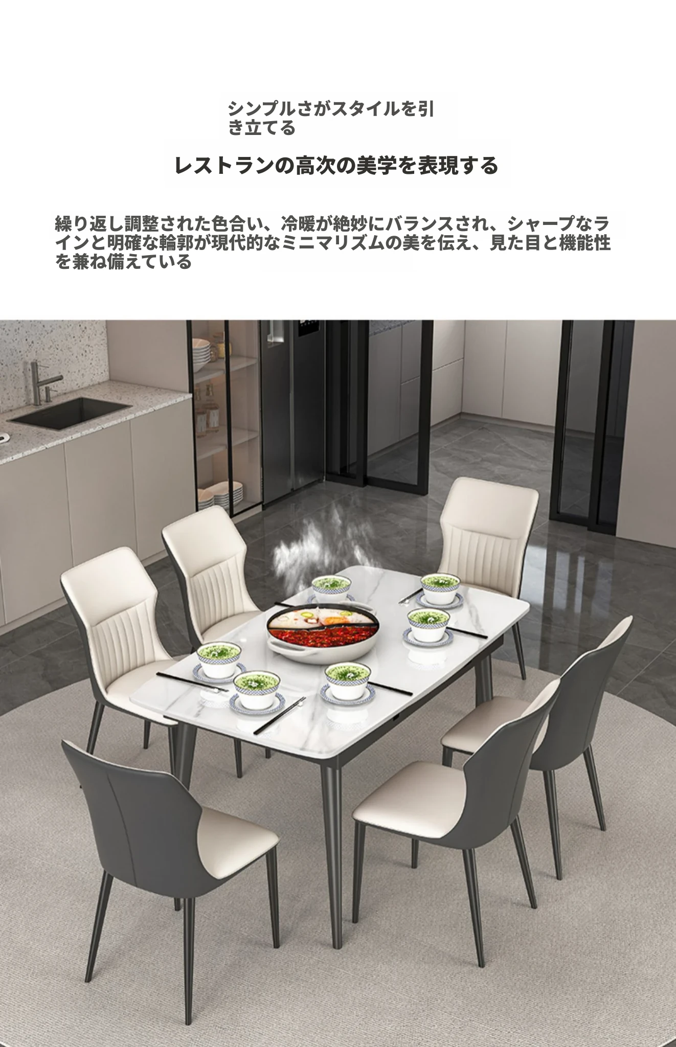 1.3Mダイニングテーブル 伸縮式 電磁調理器付き + キャットスクラッチレザー椅子*6