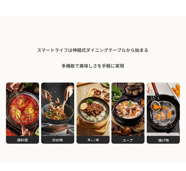1.3M伸縮式ダイニングテーブル 電磁調理器付き【2200W出力 3C認証】