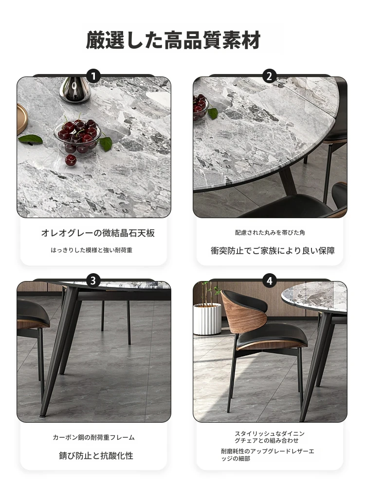 1.2M伸縮微晶石ダイニングテーブル+猫の爪研ぎ皮製ダイニングチェア*4