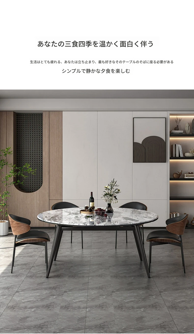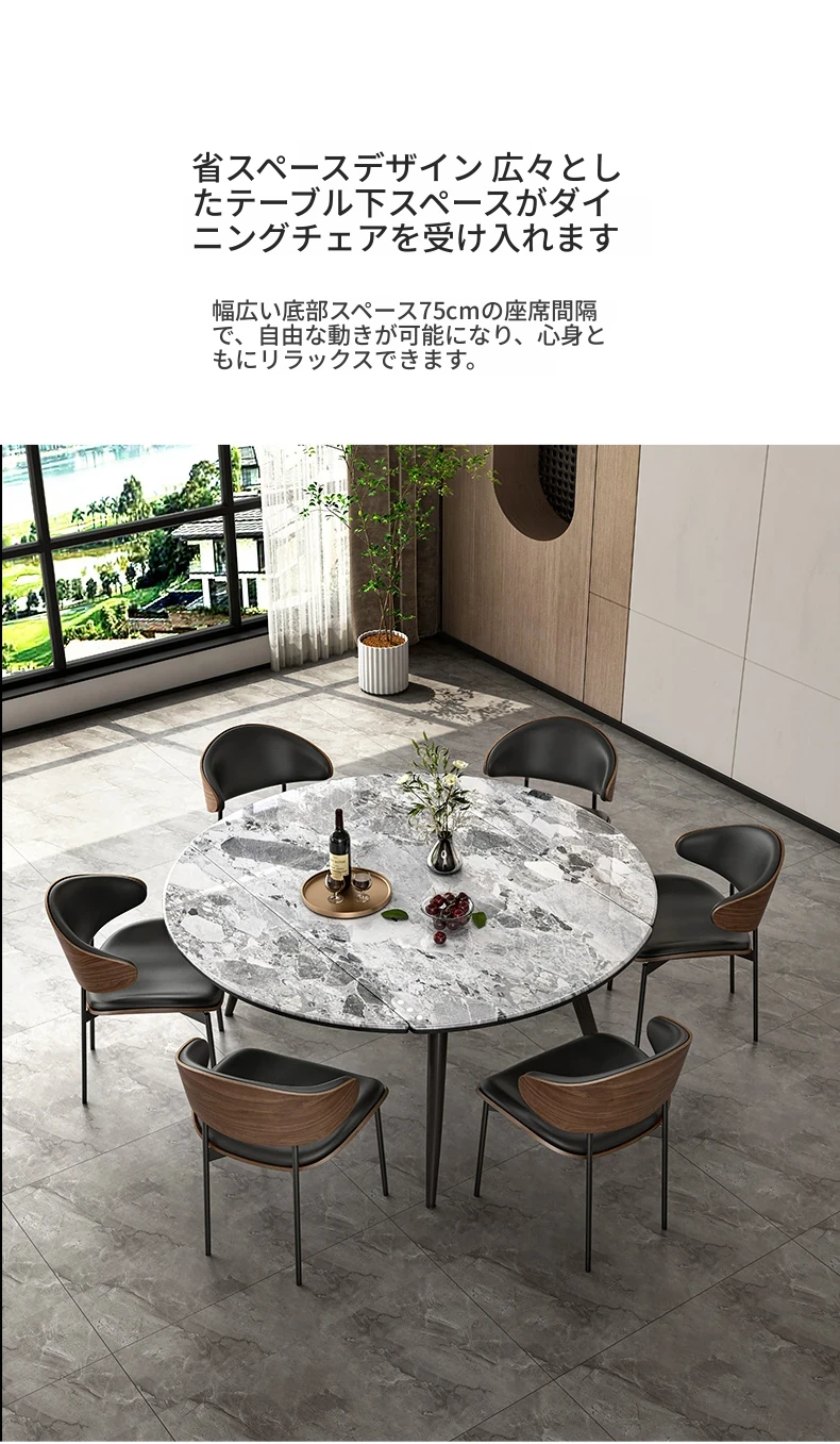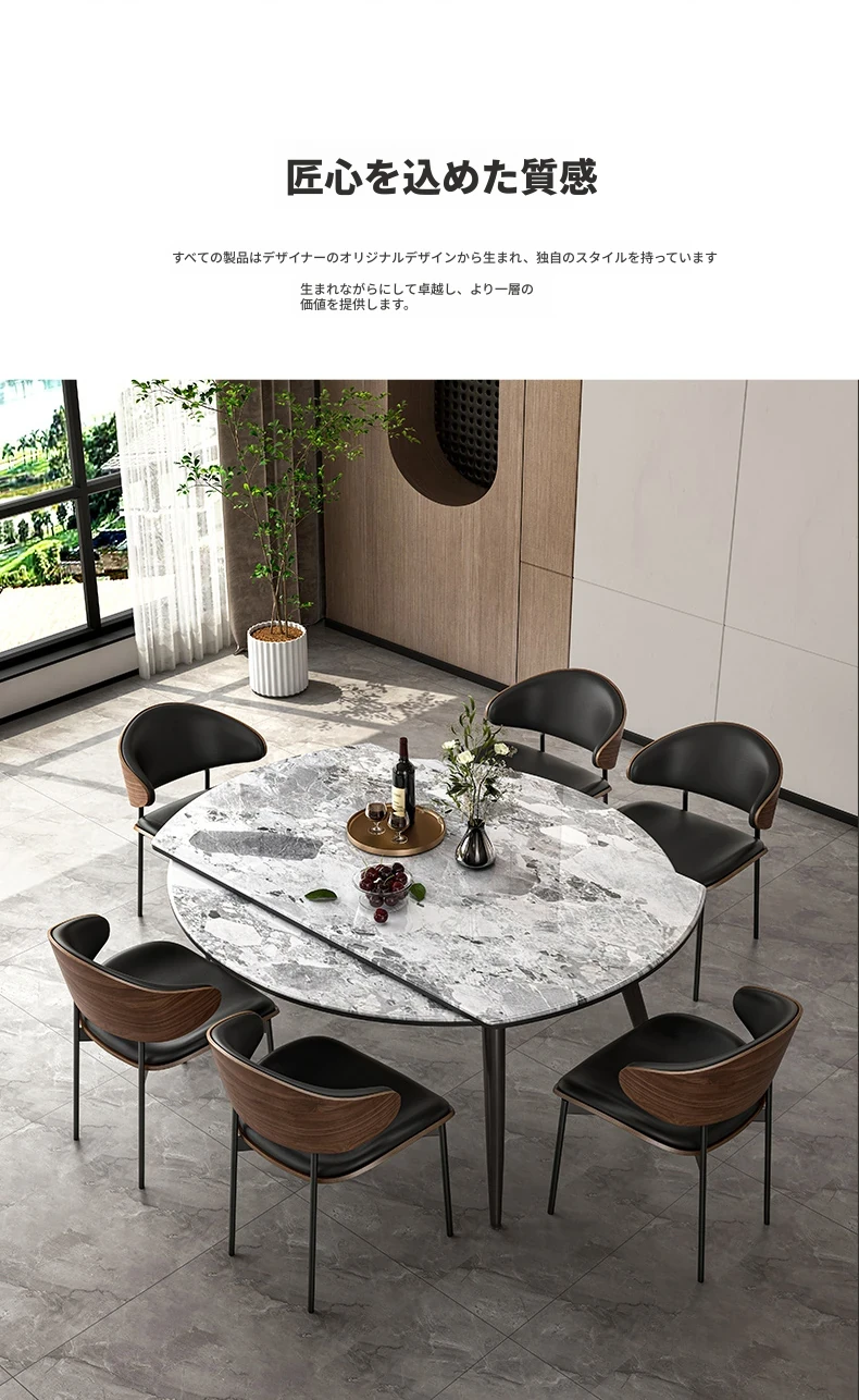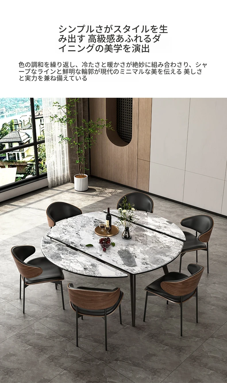 1.2M伸縮微晶石ダイニングテーブル+猫の爪研ぎ皮製ダイニングチェア*6