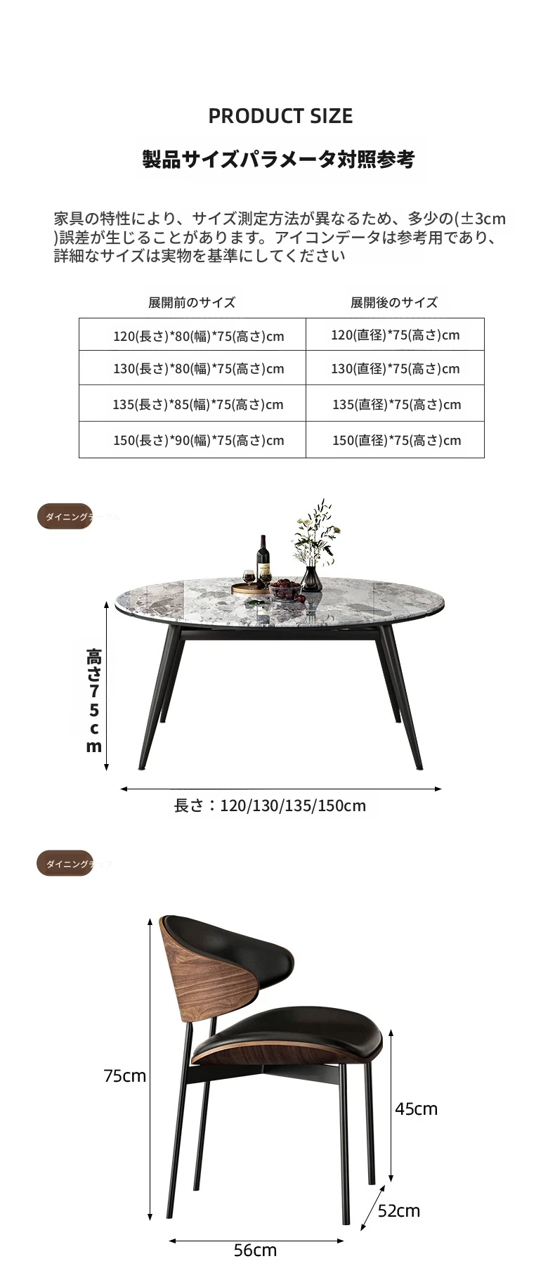 1.35M伸縮微晶石ダイニングテーブル+猫の爪研ぎ皮製ダイニングチェア*6