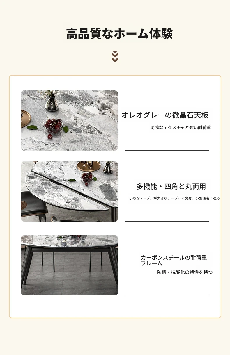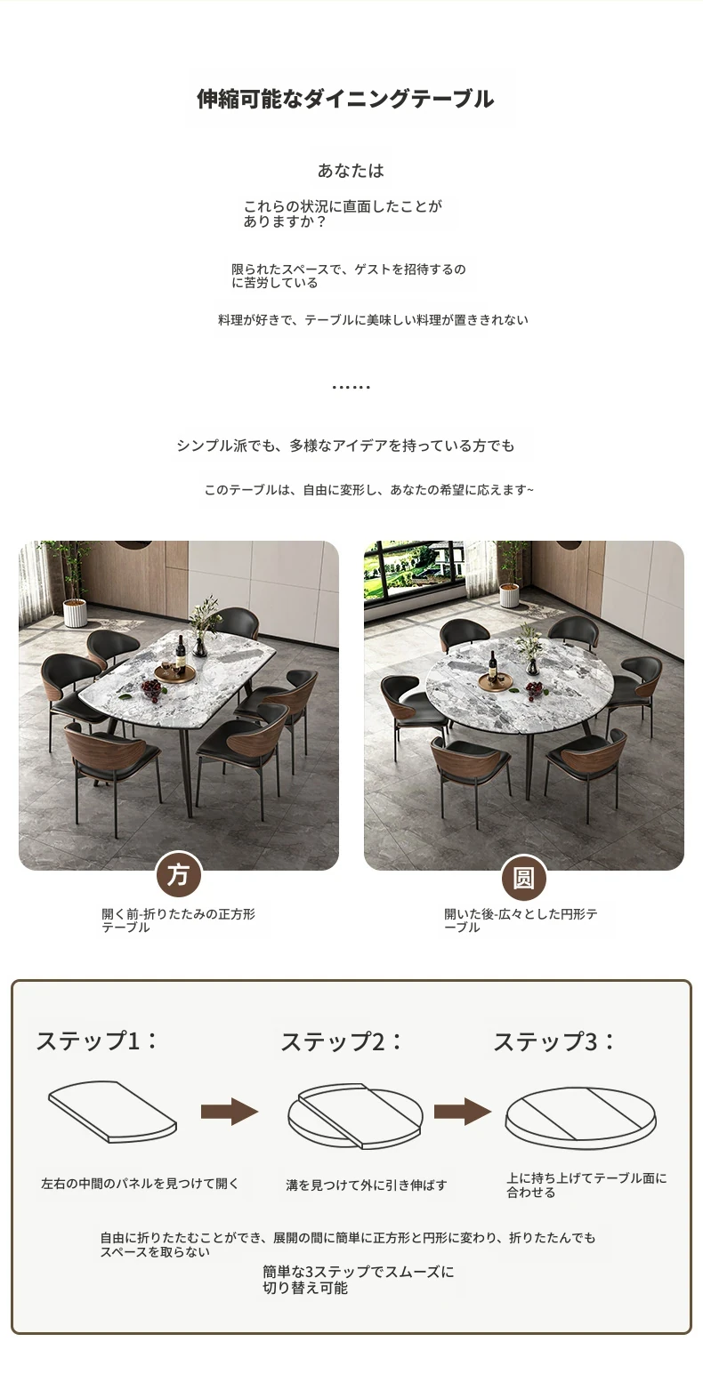 1.3M伸縮微晶石ダイニングテーブル