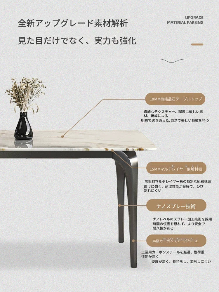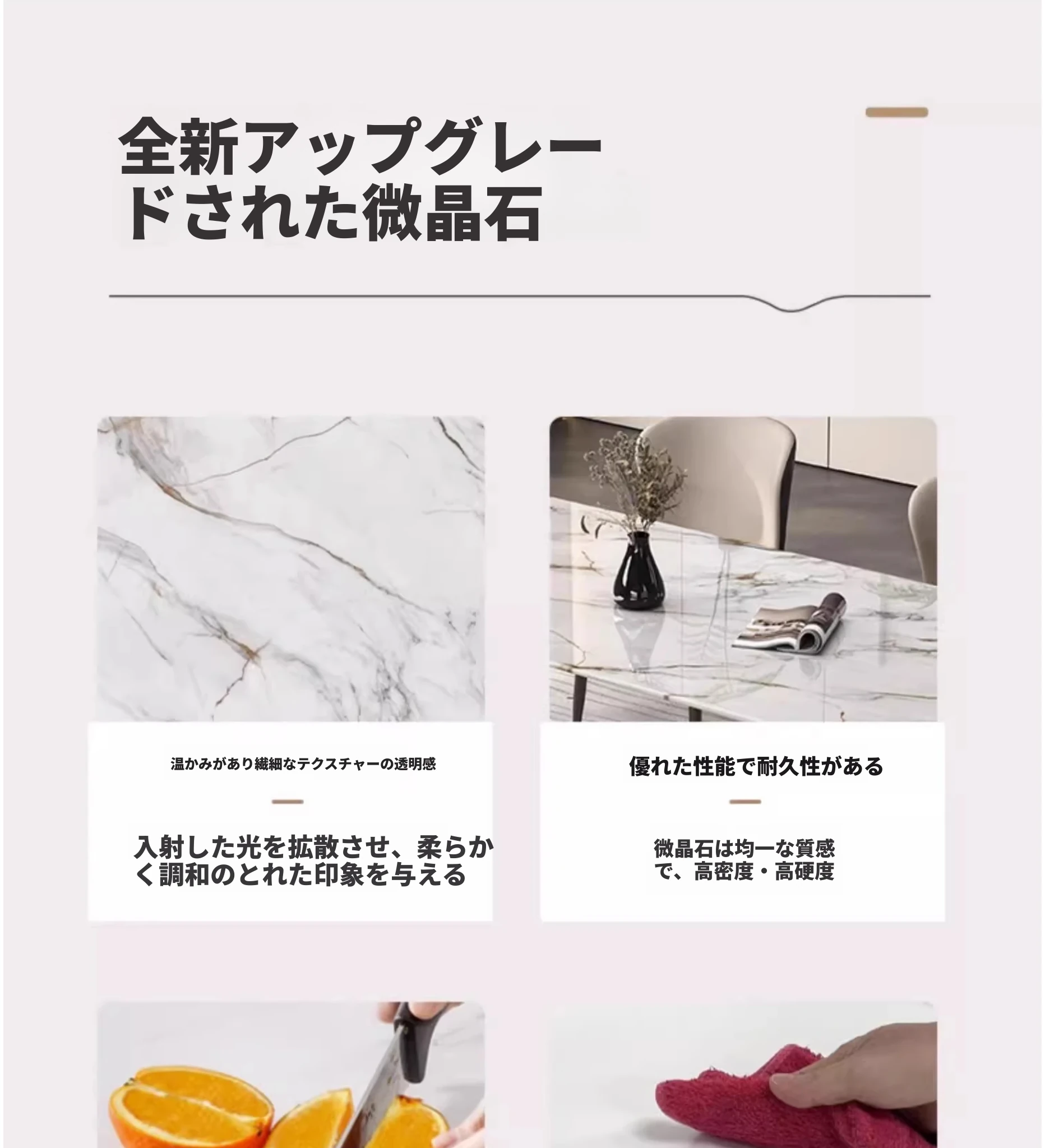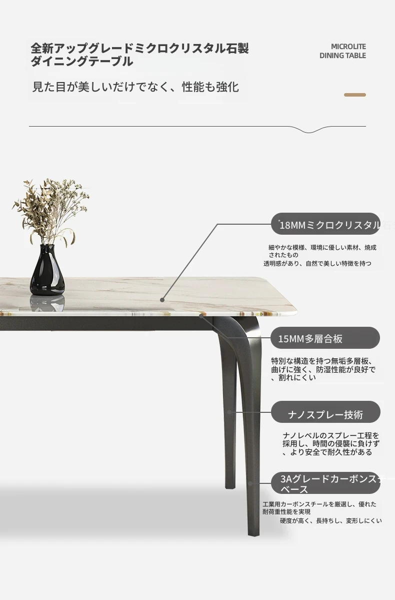 1.8M天然ミクロ結晶石ダイニングテーブル【厚さ18MMミクロ結晶石】