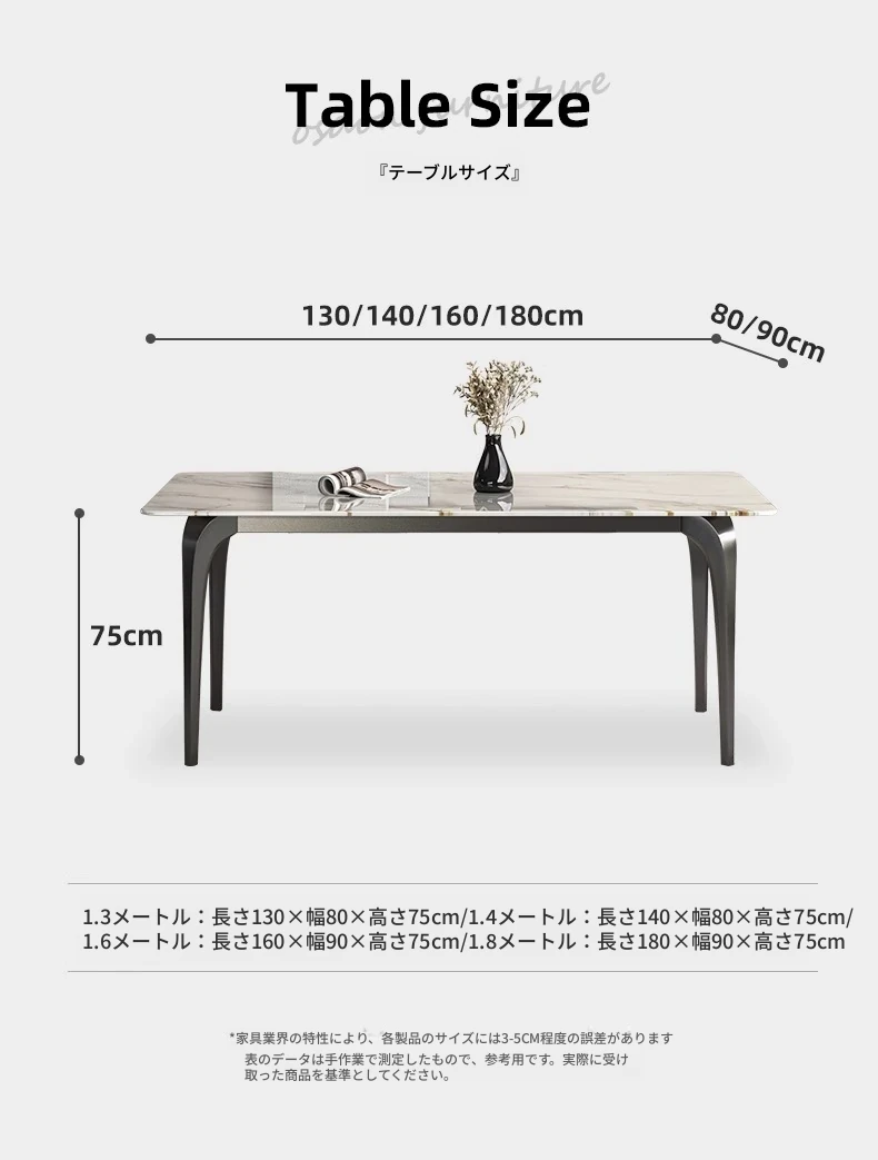 1.3M天然ミクロ結晶石ダイニングテーブル【厚さ18MMミクロ結晶石】