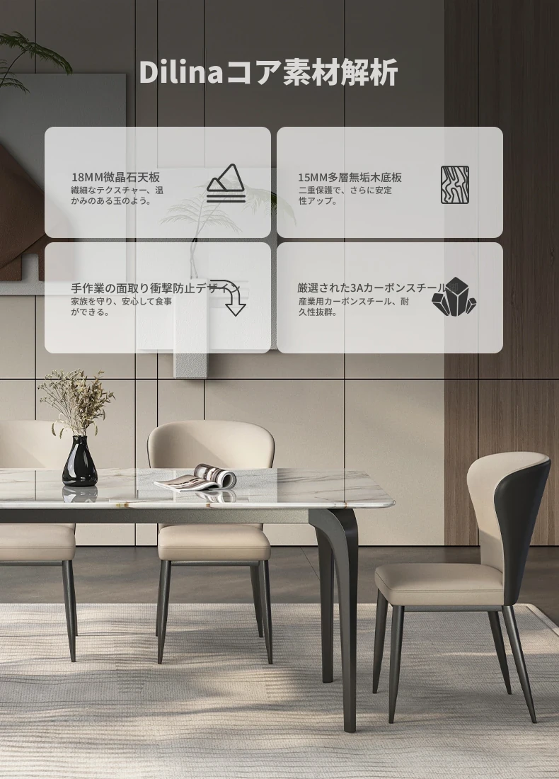 1.8M天然ミクロ結晶石ダイニングテーブル+猫爪皮製ダイニングチェア*4