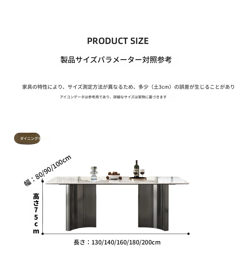 1.3Mイタリアン大理石ダイニングテーブル+高級ダイニングチェア*6