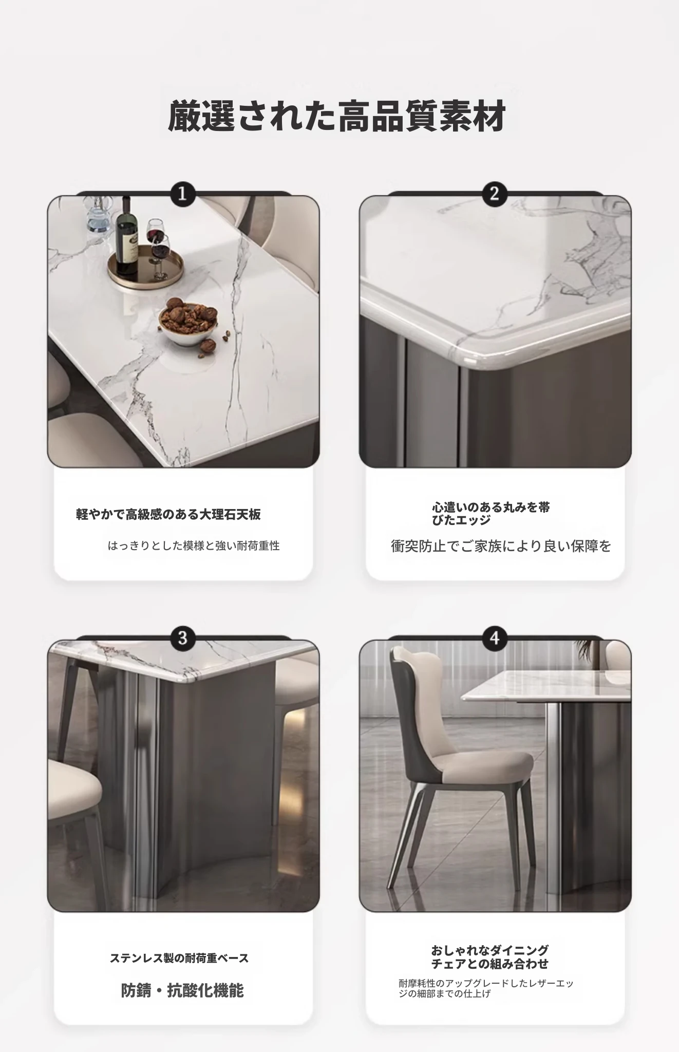 1.8Mイタリアン大理石ダイニングテーブル+高級ダイニングチェア*4