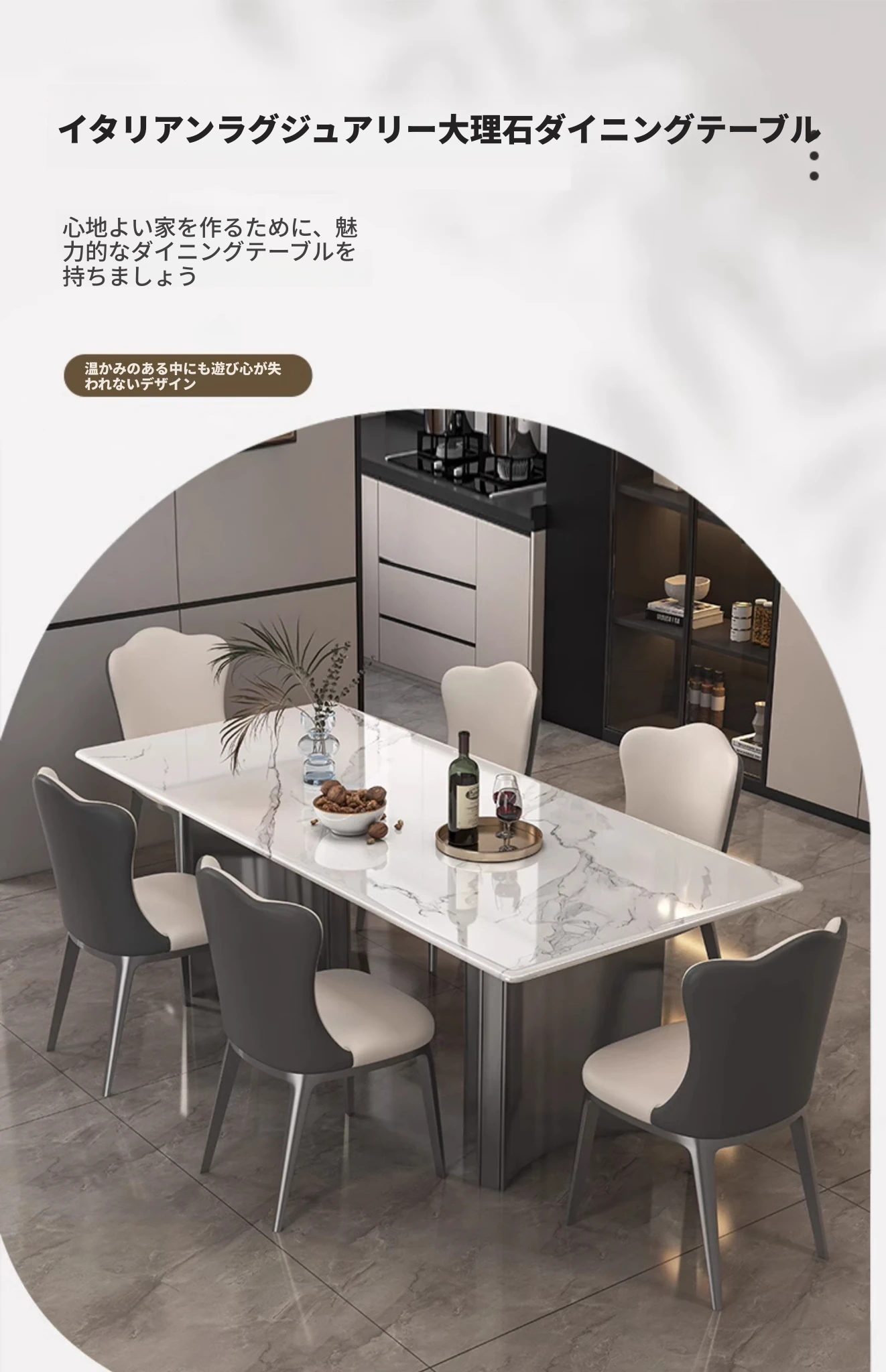 1.8Mイタリアン大理石ダイニングテーブル+高級ダイニングチェア*6