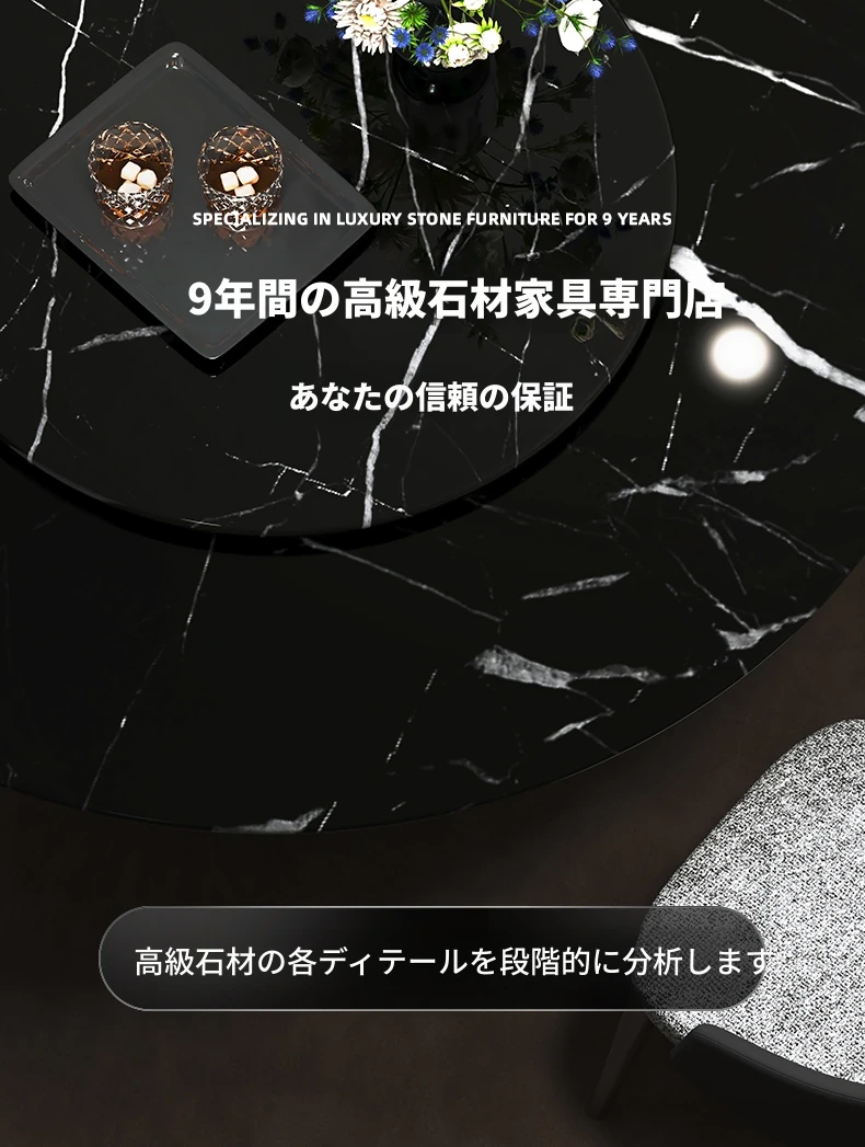 2025年新作!天然素材の贅沢石製イタリアンスタイル高級ダイニングテーブルセット - 輝く大理石のラウンドテーブルと椅子のコンビネーションで、あなたの食卓を華やかに演出します。