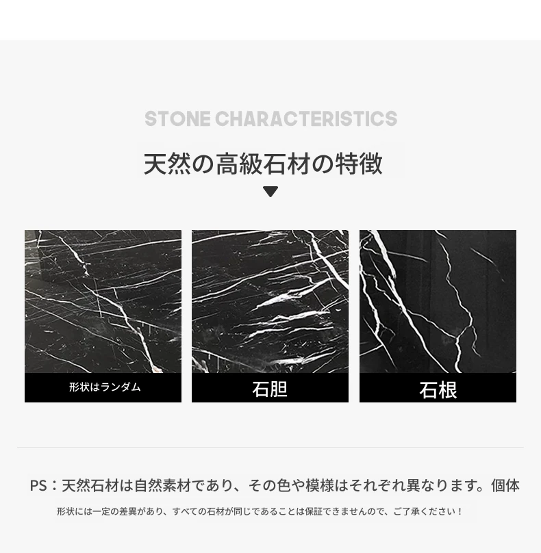 天然のブラックホワイトルート高級石製ダイニングテーブル+高級レザー布製ダイニングチェア*4