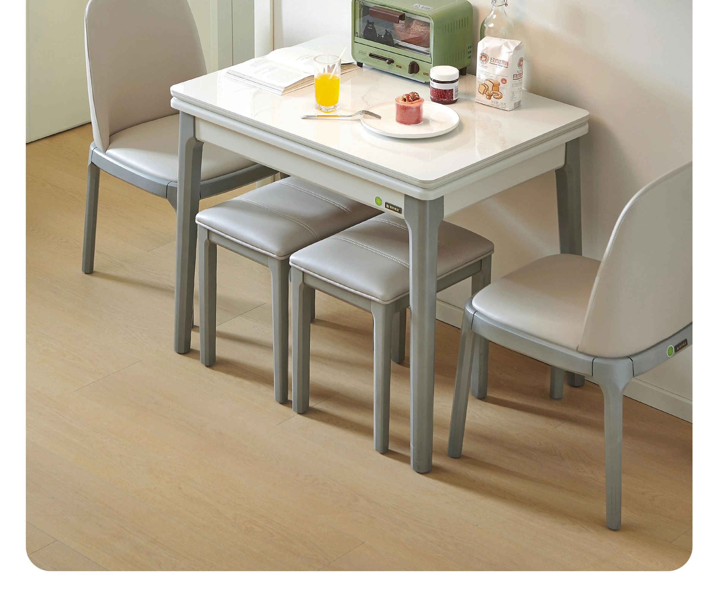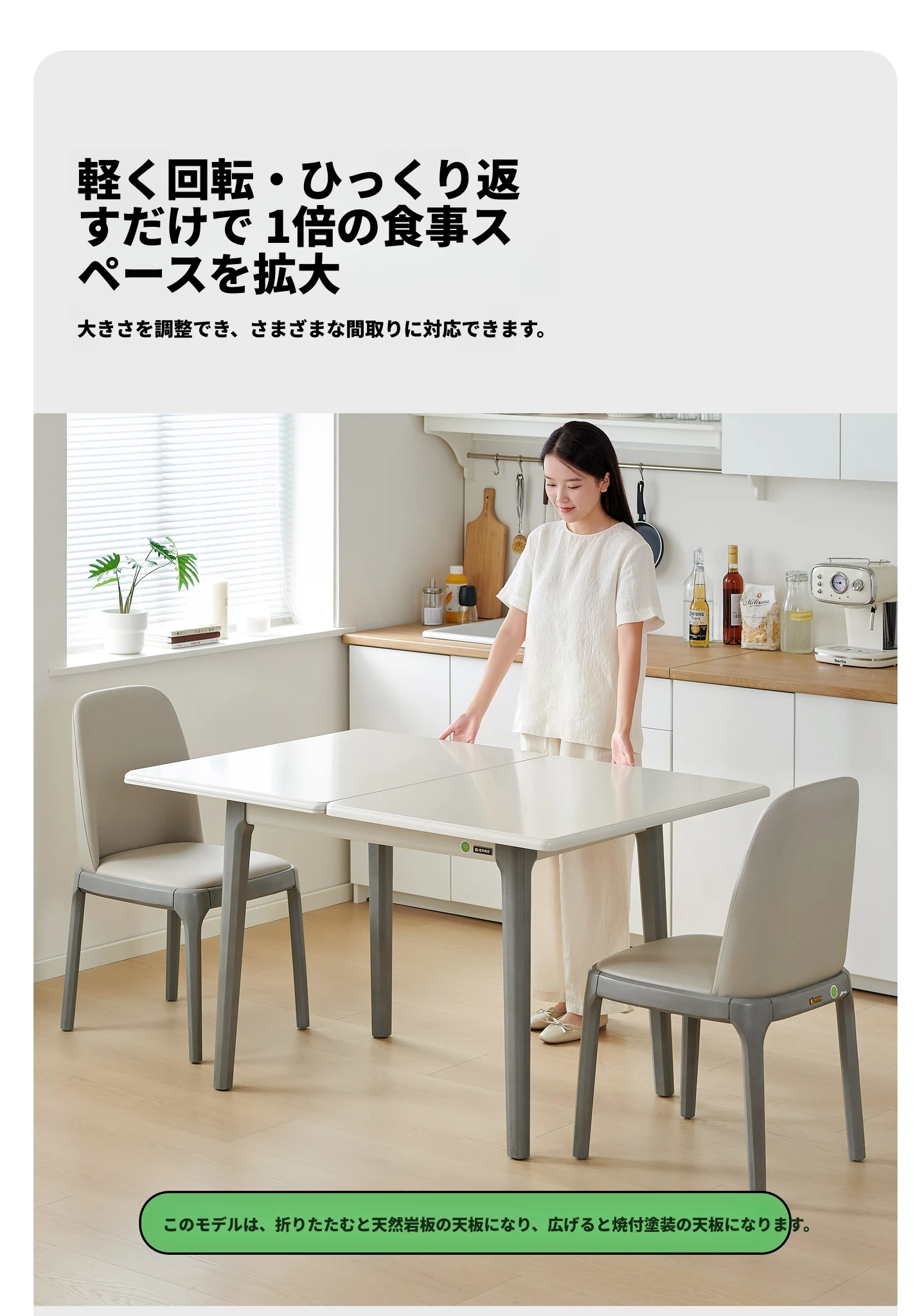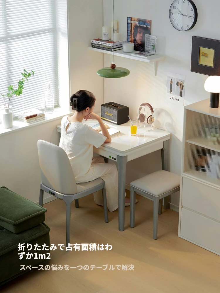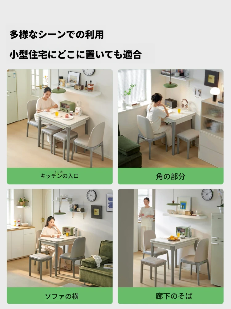 折りたたみ式ダイニングテーブル 小型住宅向け 岩板使用 伸縮可能な多機能長方形テーブル モダンでシンプルな2025年新作 食卓に最適!限られたスペースでもおしゃれに使える!