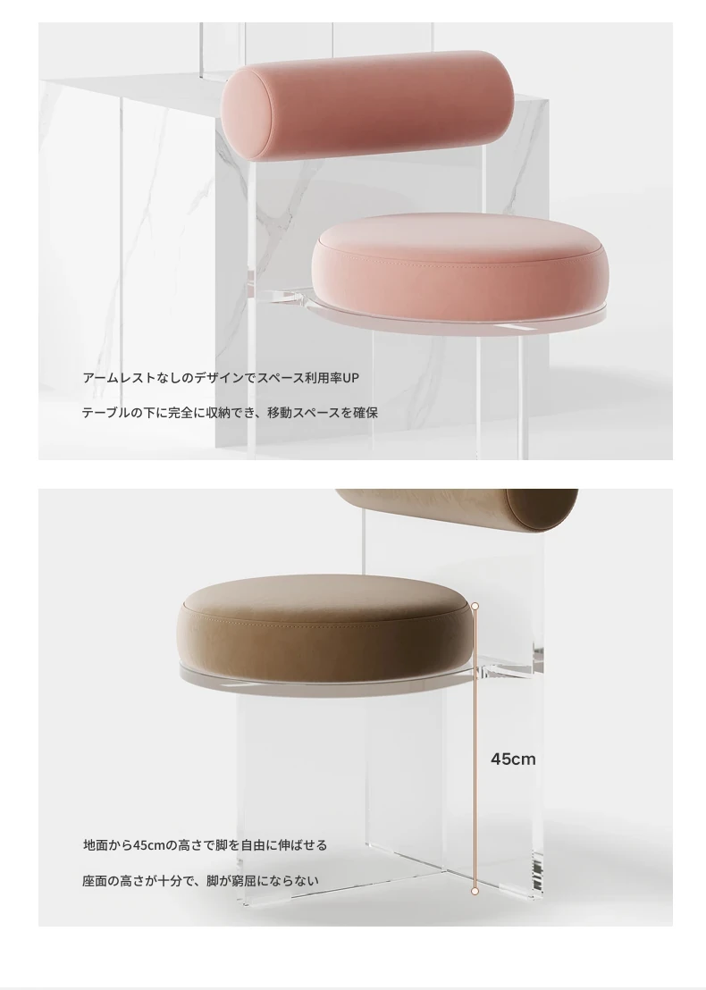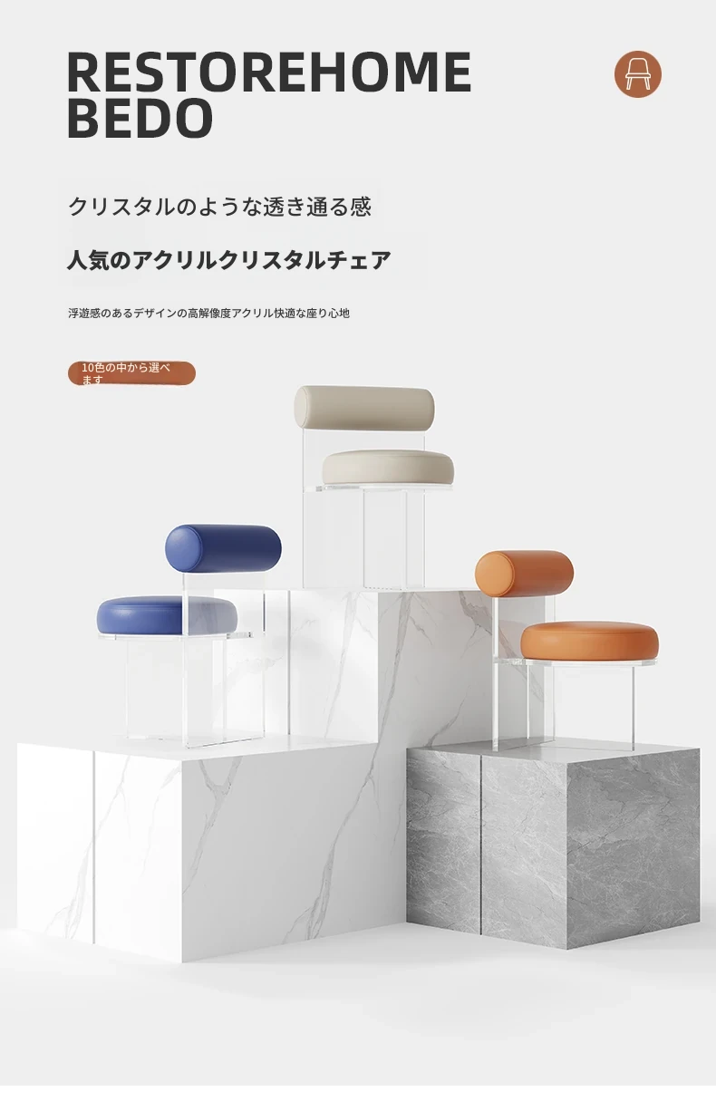 アクリル浮遊ダイニングチェア 小型住宅用メイクアップチェア 人気のクリスタル透明スツール 軽やかなラグジュアリー ダイニングテーブルチェアセット