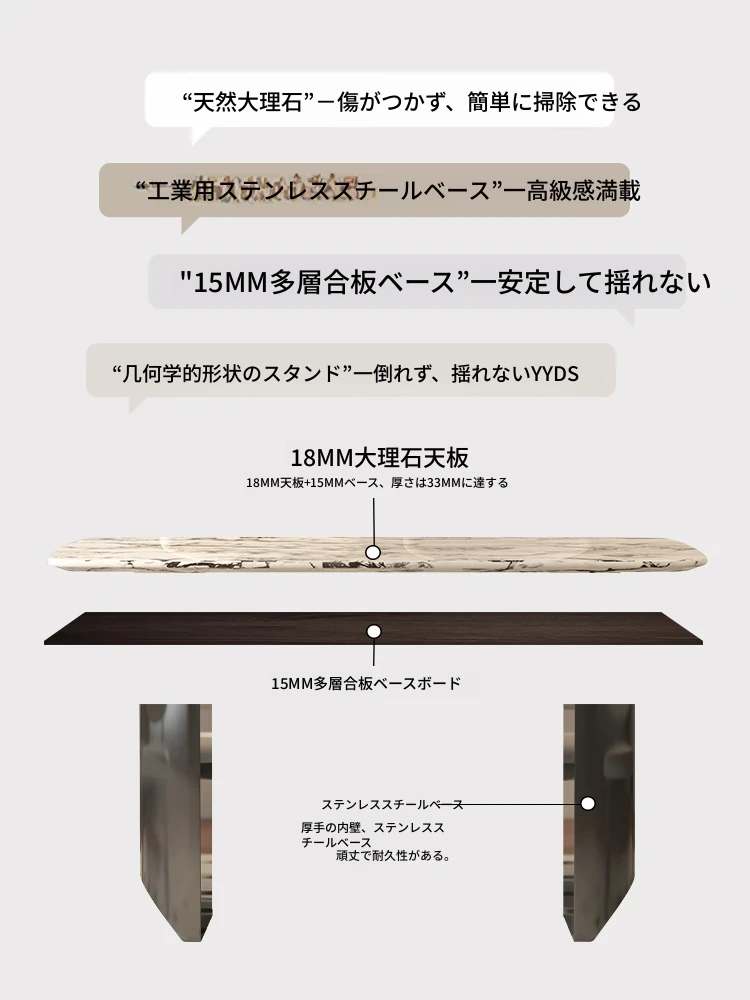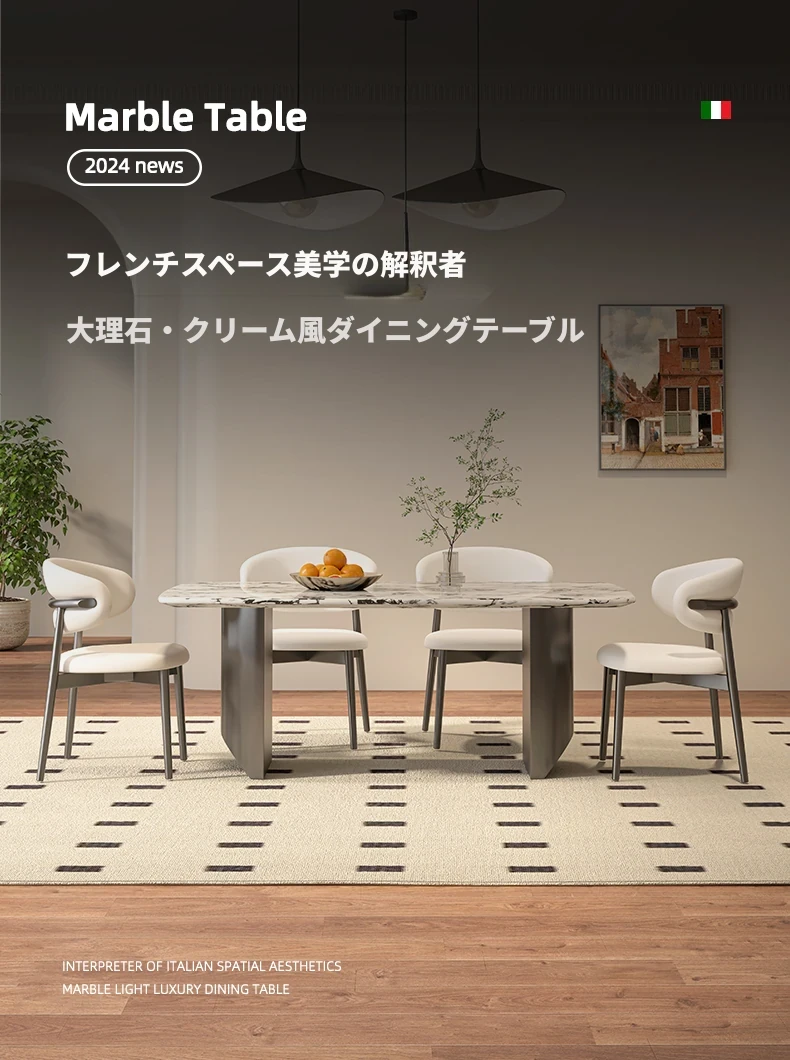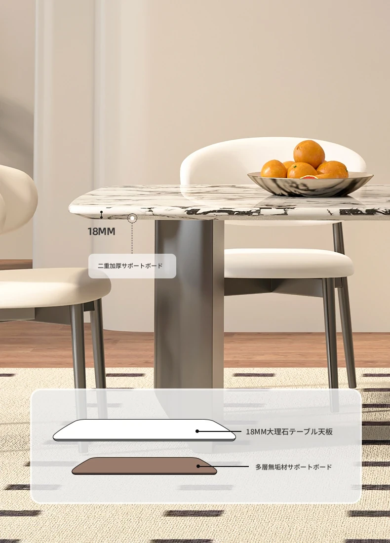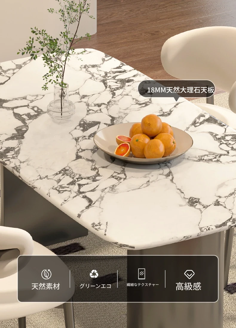 1.8メートル天然大理石ダイニングテーブル【無料アップグレード複合全托】