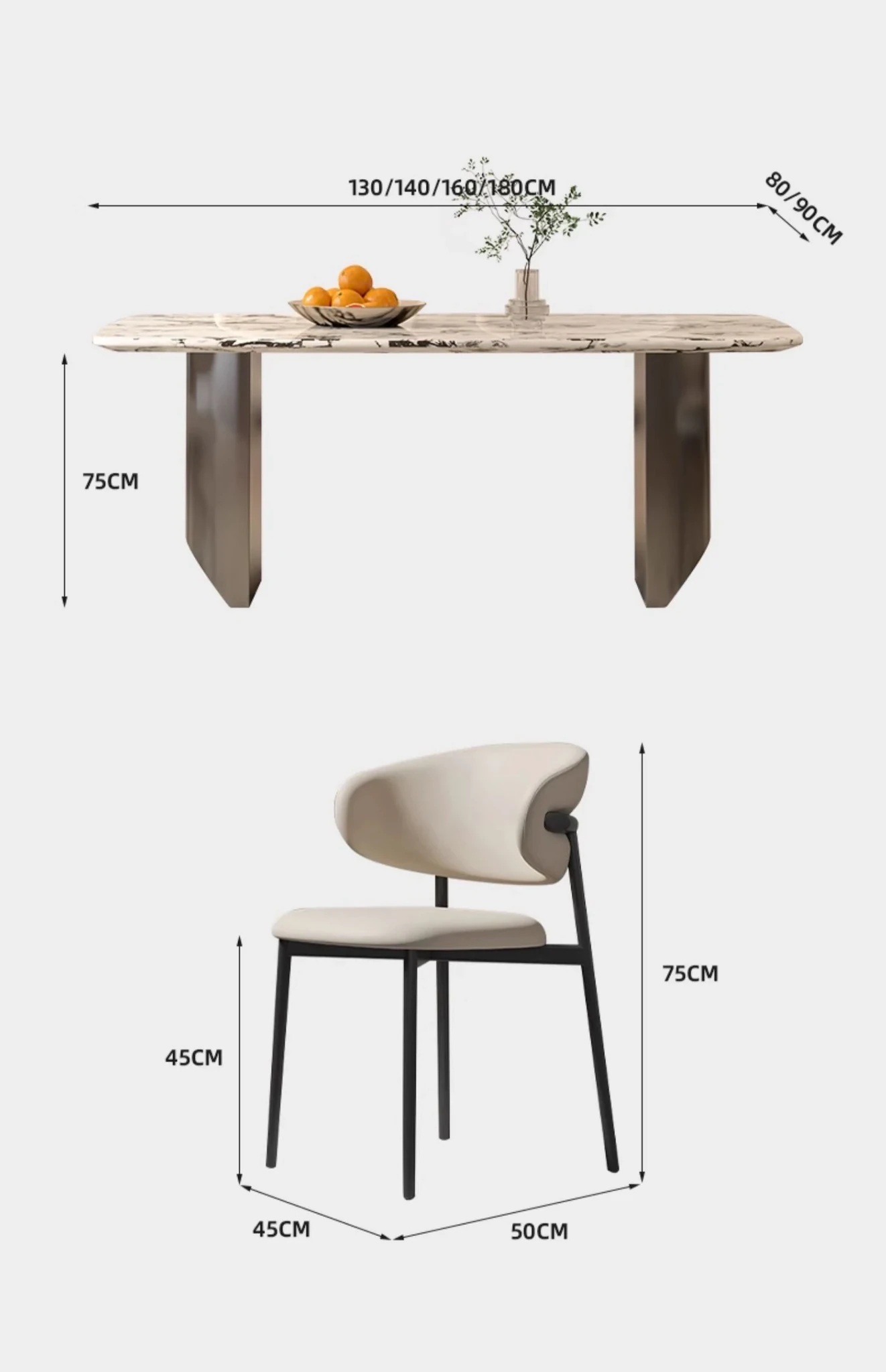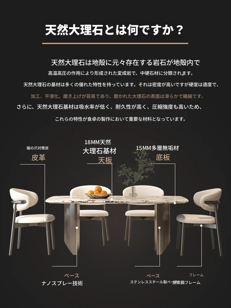 1.8メートル天然大理石ダイニングテーブル+高級ダイニングチェア4脚