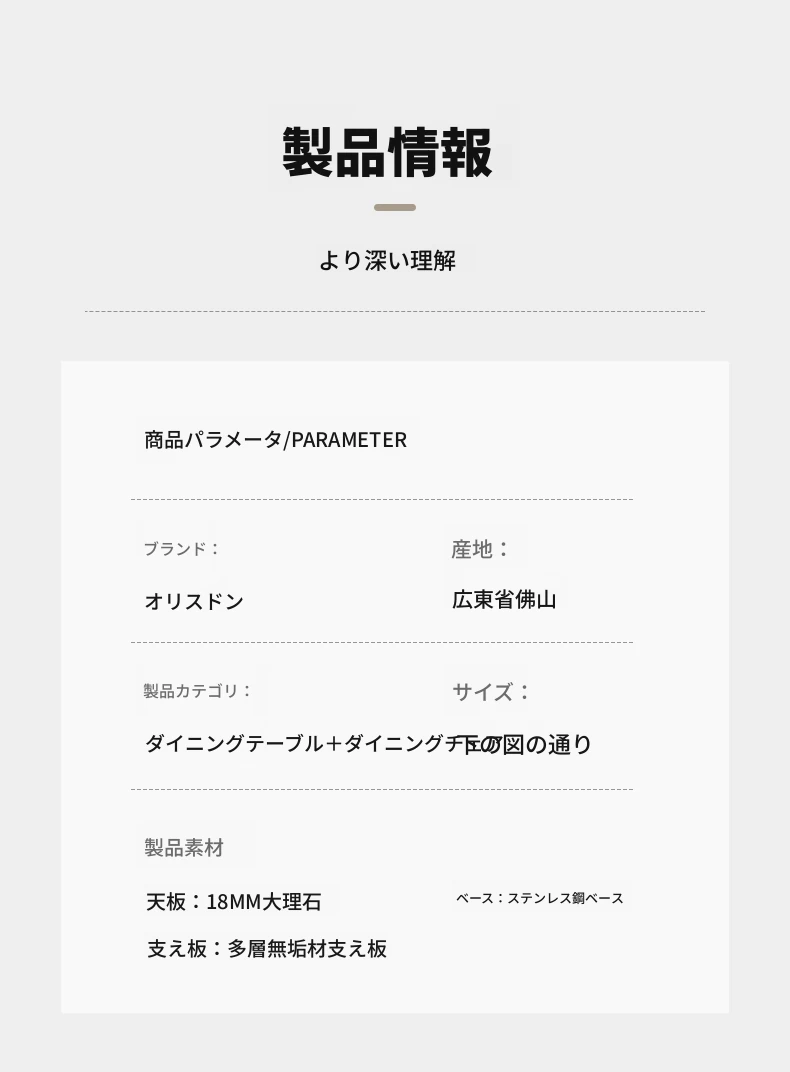 1.3メートル天然大理石ダイニングテーブル【無料アップグレード複合全托】