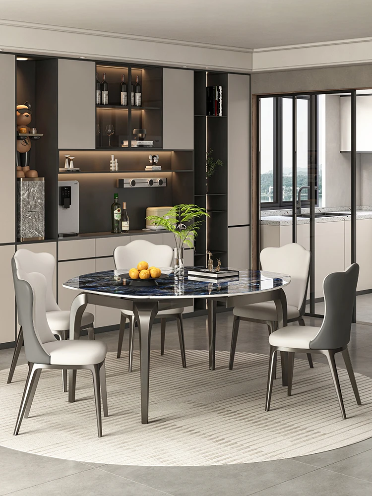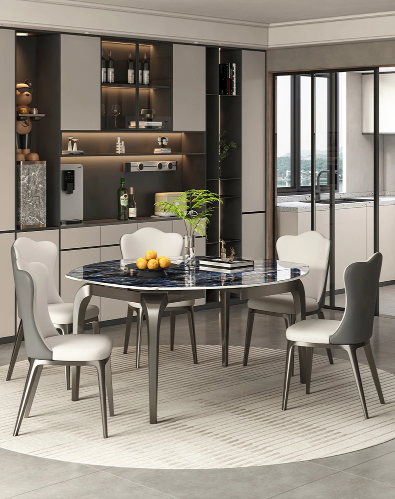 1.3Mラグジュアリー石板伸縮ダイニングテーブル+猫爪皮製ダイニングチェア*4