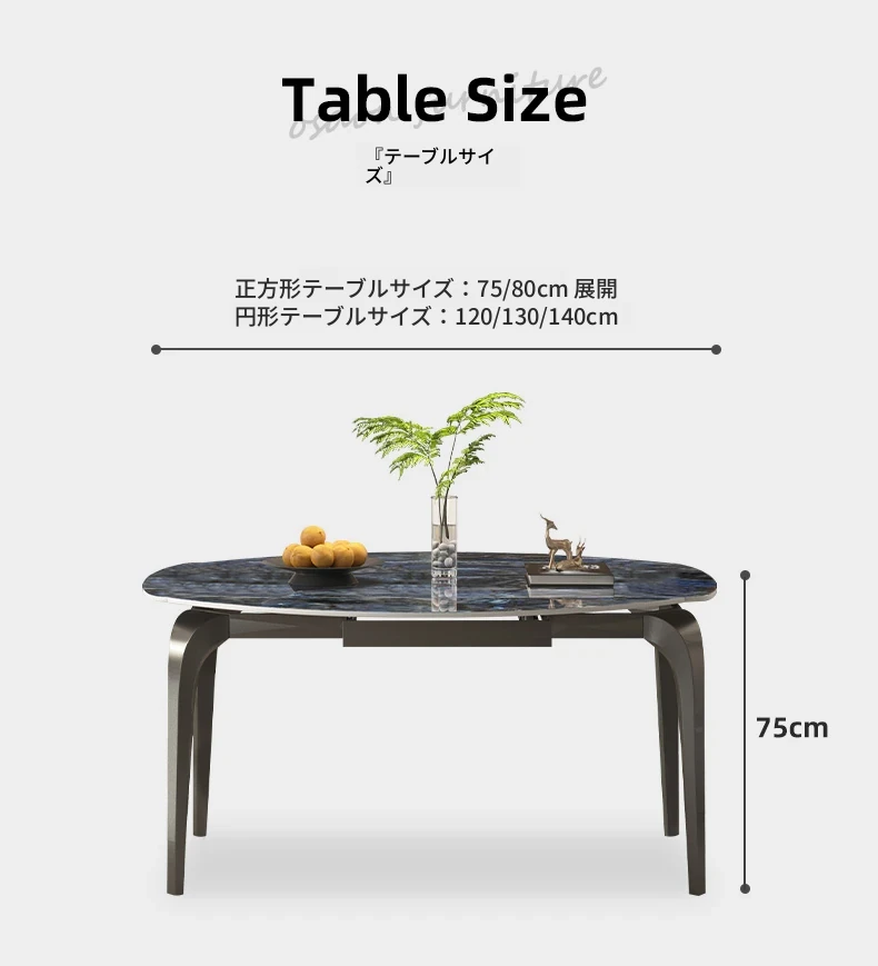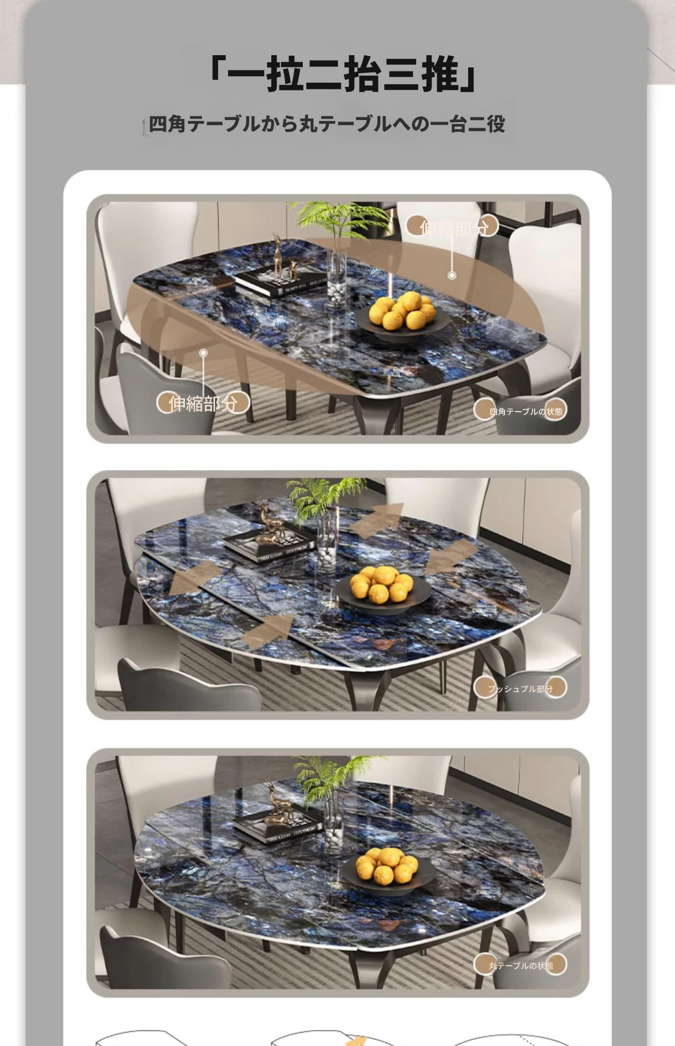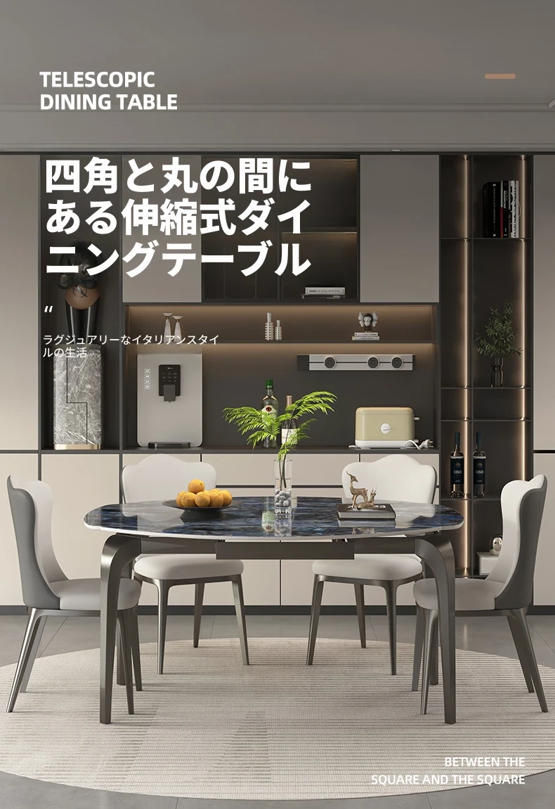 小スペースに最適!伸縮可能な高級石材製ダイニングテーブル - 現代的なシンプルデザイン、折りたたみ式で丸型と四角型の2WAY使用可能!新しいライフスタイルを実現する、あなたの家にぴったりのテーブルです。
