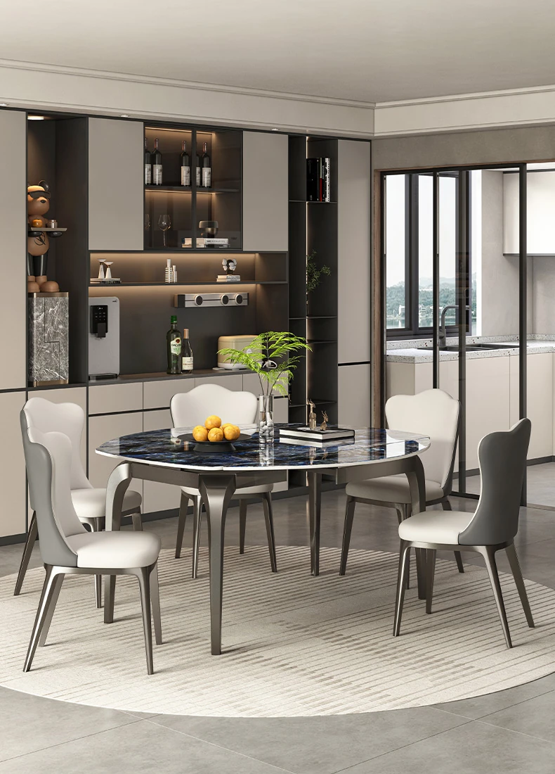 1.3Mラグジュアリー石板伸縮ダイニングテーブル+猫爪皮製ダイニングチェア*6
